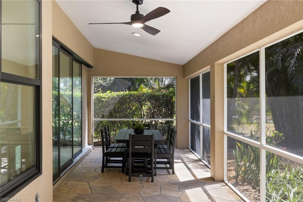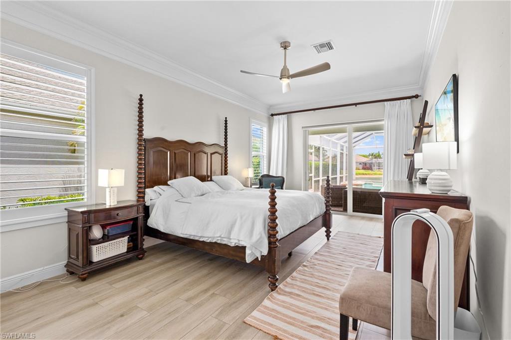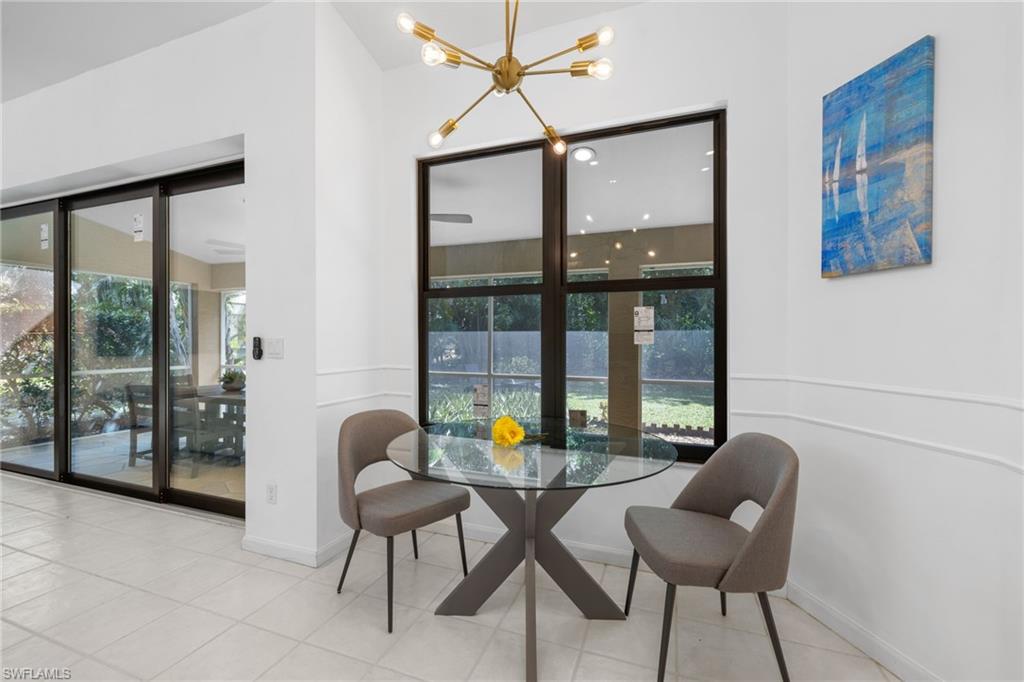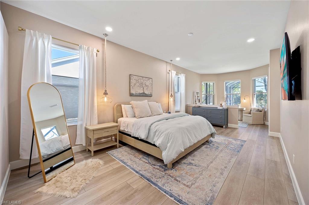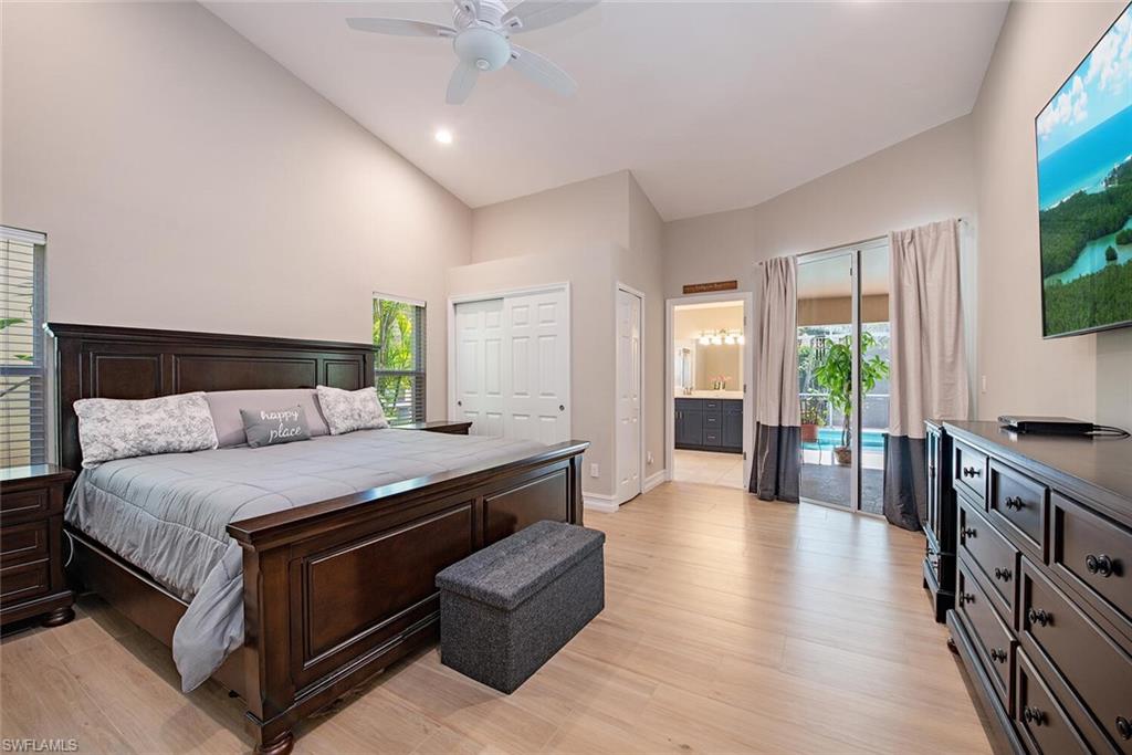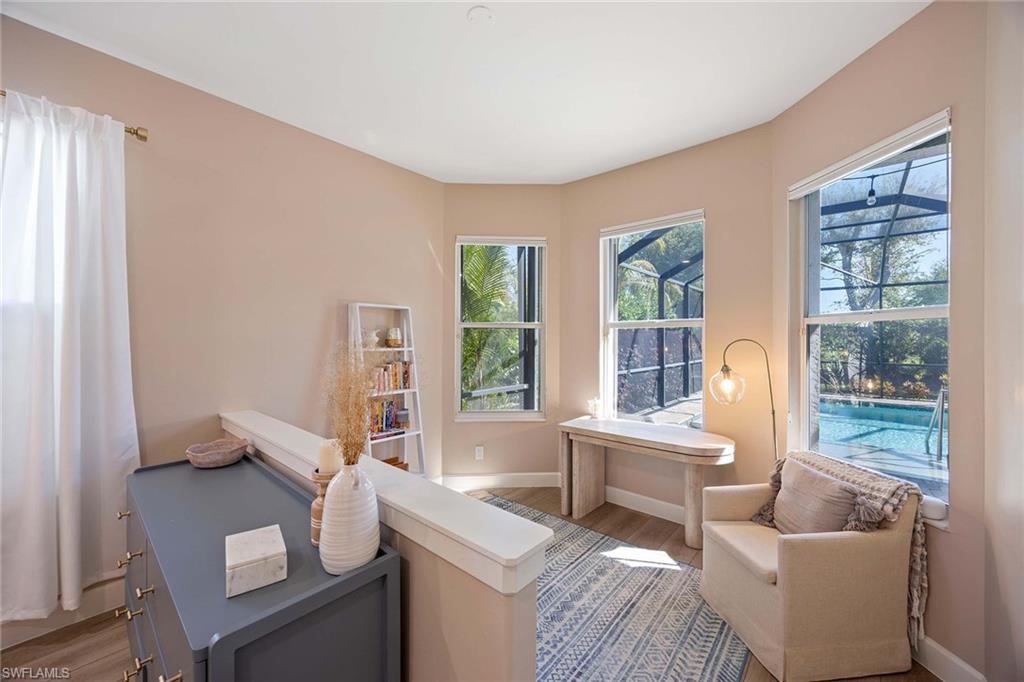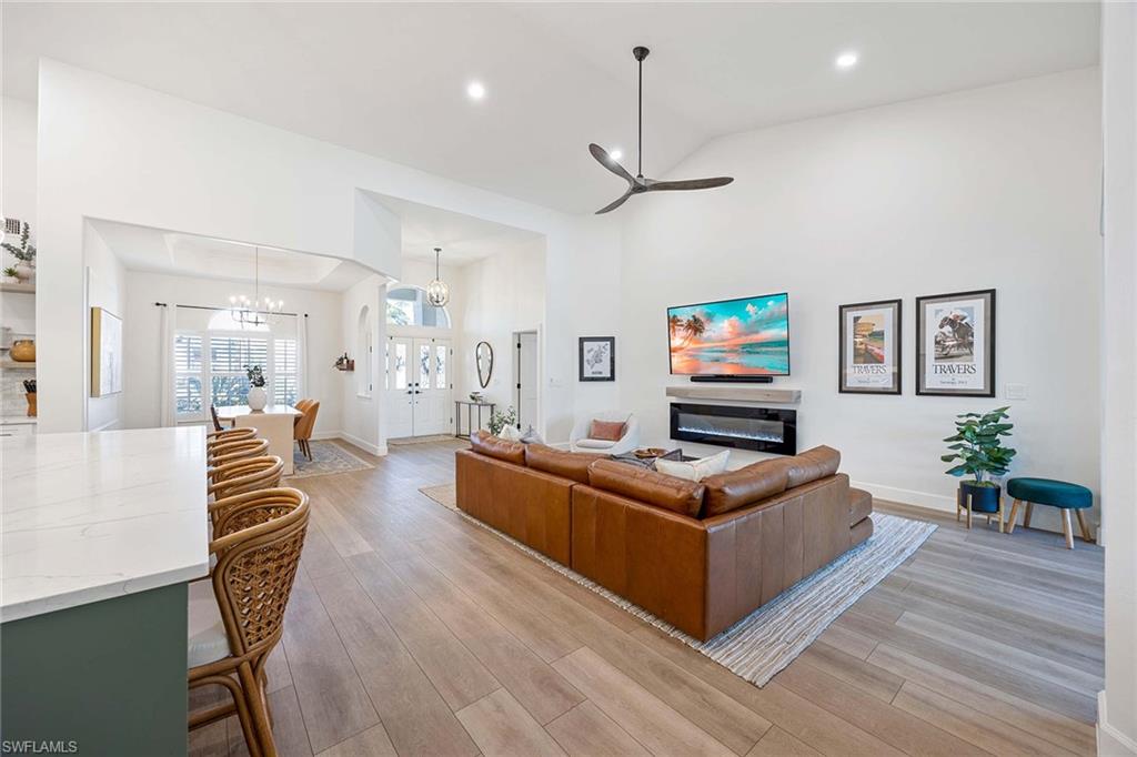 A rare opportunity to own a beautifully upgraded 4+ den / 3-bath lakefront home in the highly sought-after 34109 ZIP code. This spacious 2,626 sq. ft. residence underwent a complete remodeling in 2019, adding 450 sq.feet of living area, including a reconfigured new metal roof, an additional custom-built room and extensive interior and exterior enhancements. 3rd bathroom added in place of the laundry room, washer and dryer moved to the garage. What used to be a dining room is now an office, but can also be used as additional room or home gym or yoga studio. Enjoy unobstructed lake views through premium custom impact windows installed throughout the home, paired with impact-rated front and garage doors for full hurricane protection. A new AC system with completely redesigned ductwork ensures clean, efficient airflow year-round. Luxurious wood-look tile flooring creates a seamless, tranquil aesthetic across the entire home. The 2019 renovation also included a $400k+ custom addition by a renowned contractor, expanding the living space, and transforming the 800 sq. ft. lanai with a fully renovated pool, picture screen pool cage and cypress wood ceiling—an ideal setting for relaxing or entertaining. The main living area features soaring cathedral ceilings and elegant crown molding throughout. The spacious kitchen and all three bathrooms have been fully updated, complemented by designer lighting, wood plantation shutters, custom closets, and numerous additional custom upgrades. Ideally situated within the Orchards community and just 3 miles from Vanderbilt Beach and Mercato, minutes from top-rated North Naples public and private schools, this home offers the perfect combination of luxury living, convenience, and the highly desirable North Naples lifestyle. The Orchards neighborhood features 2 community pools with hot tubs, a clubhouse, tennis, pickle-ball and basketball courts, kids playground and an established community where you would be welcomed. Don’t miss your chance to own this lakefront paradise!