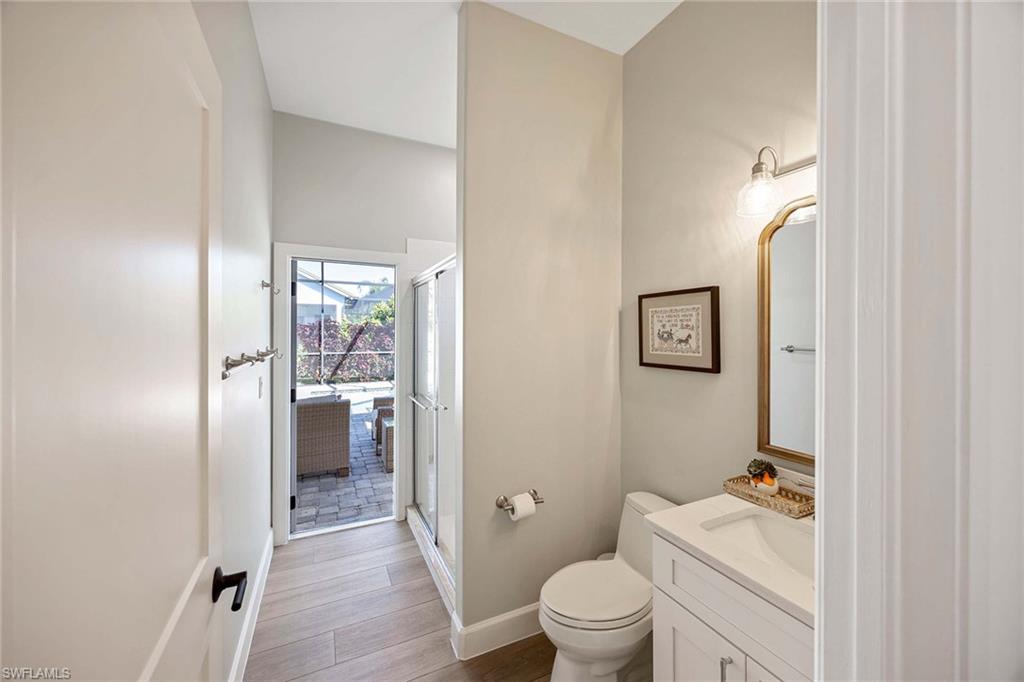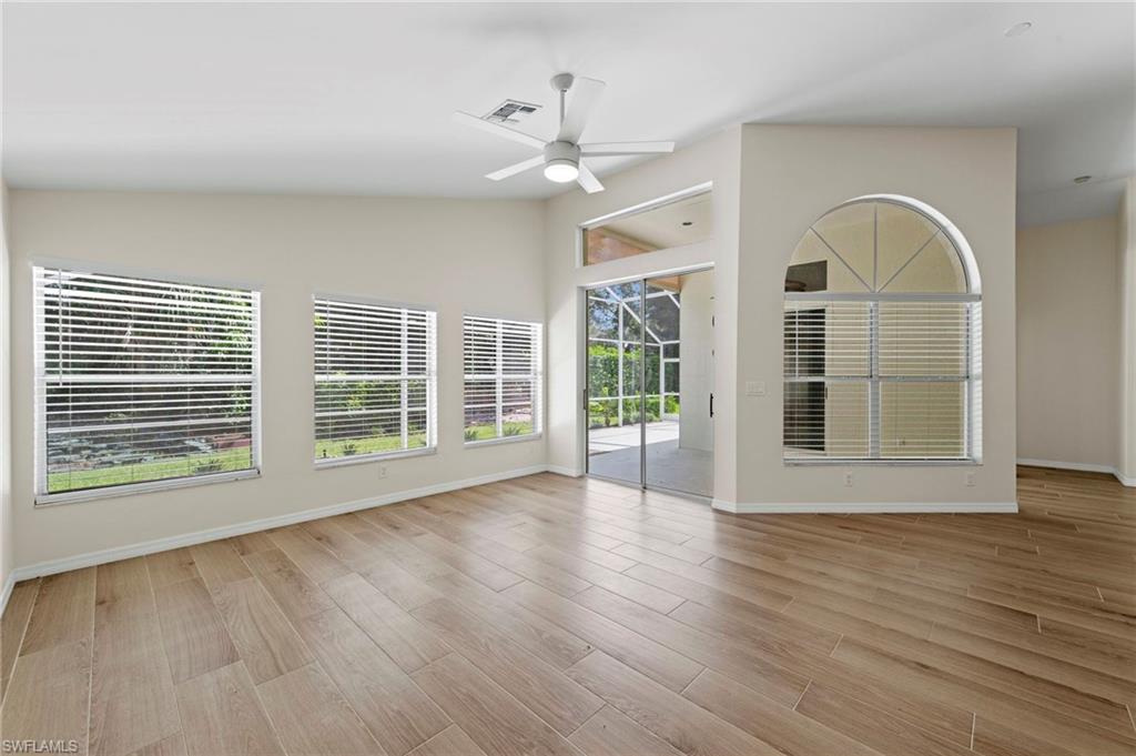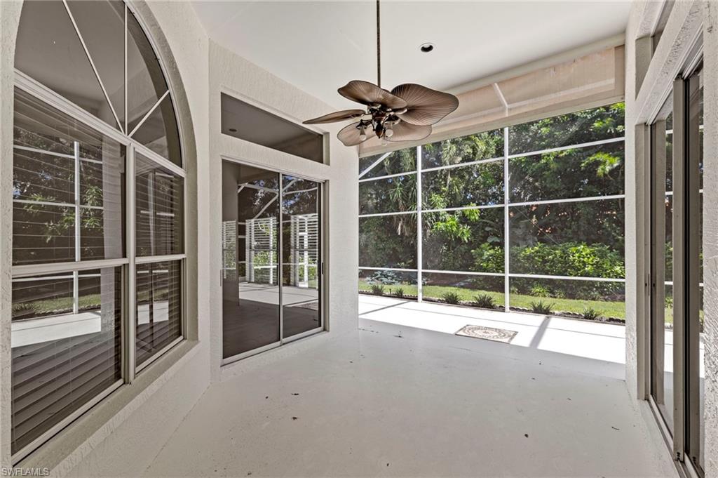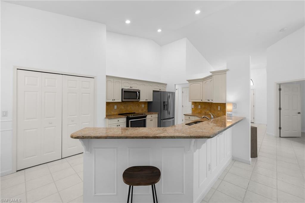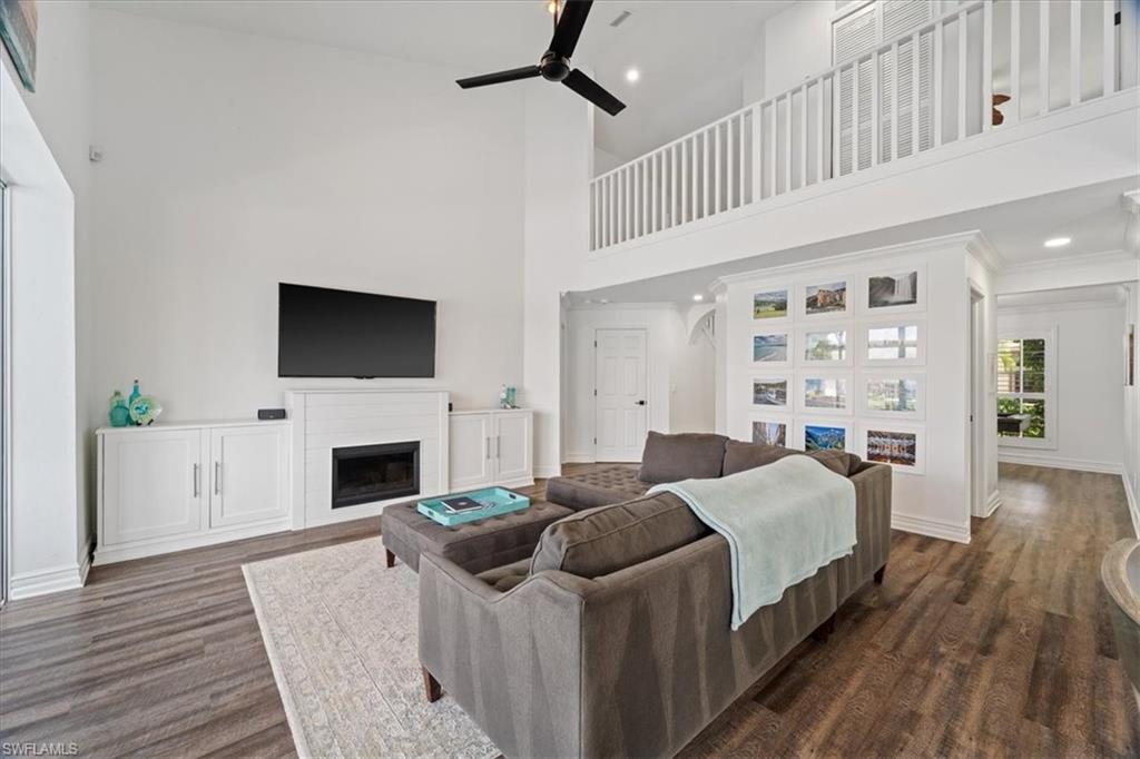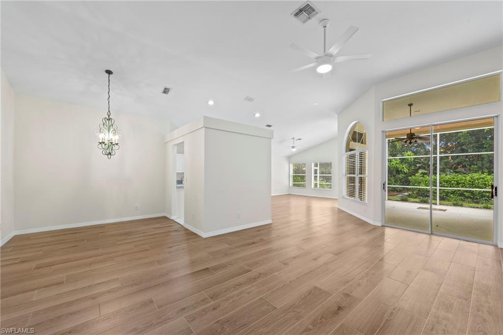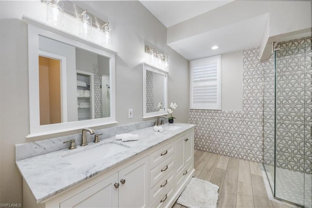 A rare opportunity to own a beautifully upgraded 4+ den / 3-bath lakefront home in the highly sought-after 34109 ZIP code. This spacious 2,626 sq. ft. residence underwent a complete remodeling in 2019, adding 450 sq.feet of living area, including a reconfigured new metal roof, an additional custom-built room and extensive interior and exterior enhancements. 3rd bathroom added in place of the laundry room, washer and dryer moved to the garage. What used to be a dining room is now an office, but can also be used as additional room or home gym or yoga studio. Enjoy unobstructed lake views through premium custom impact windows installed throughout the home, paired with impact-rated front and garage doors for full hurricane protection. A new AC system with completely redesigned ductwork ensures clean, efficient airflow year-round. Luxurious wood-look tile flooring creates a seamless, tranquil aesthetic across the entire home. The 2019 renovation also included a $400k+ custom addition by a renowned contractor, expanding the living space, and transforming the 800 sq. ft. lanai with a fully renovated pool, picture screen pool cage and cypress wood ceiling—an ideal setting for relaxing or entertaining. The main living area features soaring cathedral ceilings and elegant crown molding throughout. The spacious kitchen and all three bathrooms have been fully updated, complemented by designer lighting, wood plantation shutters, custom closets, and numerous additional custom upgrades. Ideally situated within the Orchards community and just 3 miles from Vanderbilt Beach and Mercato, minutes from top-rated North Naples public and private schools, this home offers the perfect combination of luxury living, convenience, and the highly desirable North Naples lifestyle. The Orchards neighborhood features 2 community pools with hot tubs, a clubhouse, tennis, pickle-ball and basketball courts, kids playground and an established community where you would be welcomed. Don’t miss your chance to own this lakefront paradise!