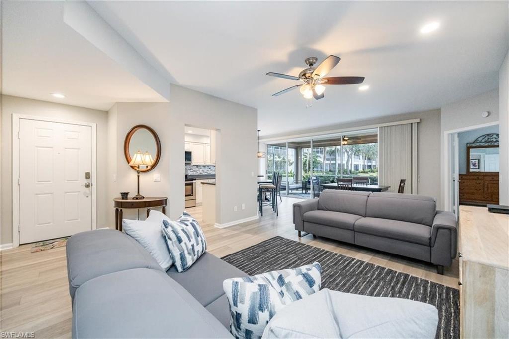"Live Life Beautifully In Southwest Florida" in this Elegantly Updated Lakeview Condo in The Orchards – Central Naples. This beautifully updated 3-bedroom, 2-bathroom condo in the highly desirable Orchards community offers comfort, style, and an unbeatable location in the heart of Naples. Featuring brand-new wood flooring throughout, a fully renovated kitchen with new cabinets, tile backsplash, and stainless steel appliances, this home is both move-in ready and turnkey furnished — most furnishings are brand new and never used. The freshly painted interior boasts modernized bathrooms with quartz countertops, stylish tile work, and contemporary light fixtures. Enjoy tranquil mornings with stunning eastern lake views from your private screened lanai. Additional upgrades include plantation shutters on nearly every window and electric hurricane screens for peace of mind. The home includes a 1-car attached garage, an extended driveway, and guest parking conveniently located just across the street. All of this just one block from the community clubhouse, where residents enjoy a resort-style pool, fitness center, playground, tennis and pickleball courts. The Orchards is a gated community ideally located just: 3 miles to Vanderbilt Beach & The Ritz-Carlton Beach Resort Across from Tiburón & The Ritz-Carlton Golf Resort Less than 10 minutes to Mercato, 15 minutes to Downtown Naples & 25 minutes to Southwest Florida International Airport. Don’t miss this opportunity to own a stylish, low-maintenance home in one of Naples’ most central and convenient locations!