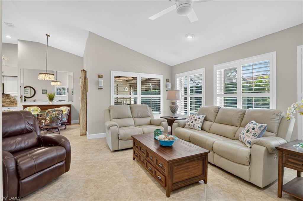 Welcome to this charming and meticulously maintained home with brand new impact windows nestled in the desirable Orchards community, perfectly situated for convenience and enjoyment. With plentiful shopping and dining nearby, and only a short three-mile drive to the pristine sands of Vanderbilt Beach, this location is ideal for both families and those seeking an attractive rental investment opportunity. The residence boasts a thoughtful split floor plan, ensuring privacy and comfort for all family members or guests. Vaulted ceilings create an open and airy ambiance, filled with natural light. The home is fully tiled, providing easy maintenance, and is equipped with a central vacuum system for added convenience. Peace of mind comes with all impact-rated windows and doors, offering enhanced storm protection and energy efficiency. The heart of the home is the open-concept kitchen, seamlessly connecting to the breakfast/dining area and the great room, forming a spacious living area perfect for gatherings. The kitchen features elegant granite countertops, a large pantry, modern stainless-steel appliances, and a double sink, catering to the needs of any home chef. Step outside to the expanded lanai with its stylish stamped concrete flooring, offering seamless access from both the great room and the primary bedroom. This outdoor space overlooks a private backyard adorned with lush landscaping, creating a serene retreat for relaxation. Enjoy the community's amenities right nearby, with one of the two sparkling pools just down the block. The clubhouse is equipped with a well-appointed exercise room, a large pool, spa, and a kiddie pool. For sports enthusiasts, adjacent facilities include tennis and pickleball courts, bocce, and basketball. Entertainment and dining options abound, with the vibrant Mercato and the luxurious Ritz Carlton at Tiburon just a five-minute drive away. Additionally, the stunning beachside Ritz is also in close proximity. This home offers a remarkable value for families and investors alike, providing a high-demand rental location and a comfortable, stylish living environment. Discover the perfect balance of convenience and tranquility in this exquisite Orchards community residence.