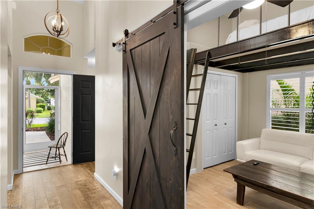 The Orchards is a desirable North Naples Gated Community. This 3-bedroom, 2-bath single-family home is located off Vanderbilt Beach Road, West of Livingston Road. Close to shops, restaurants, and beaches. Easy access to I-75. Many upgrades throughout the home, Wood Plank Tile Floors throughout, updated bathrooms, High End Plantation Shutters throughout, and barn doors. The guest bedroom has an amazing loft for extra sleeping area. Low HOA fees. The backyard Oasis boasts a 6-man jacuzzi hot tub, brick pavers. Enjoy entertaining in this backyard retreat. The home features a bright living room with a casual eat-in kitchen. The Orchards offers many amenities.