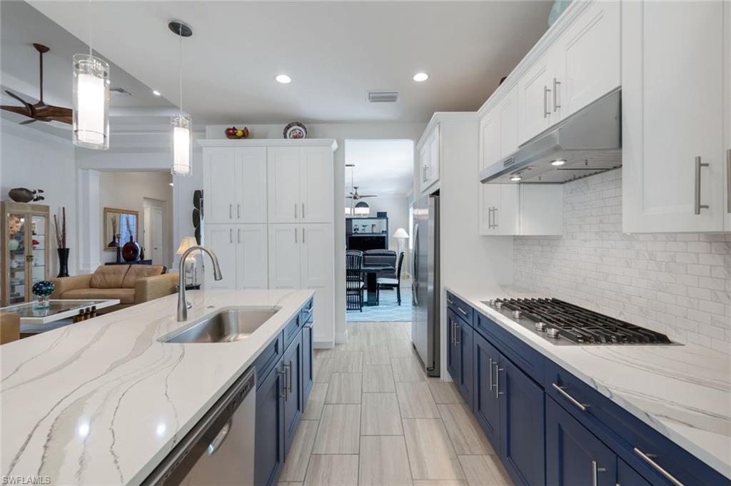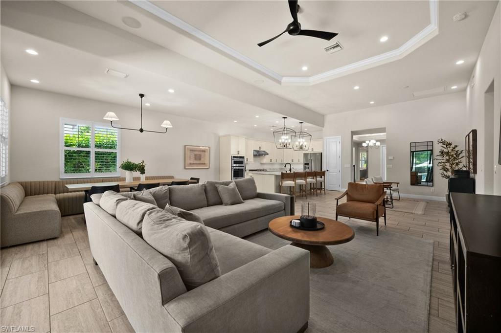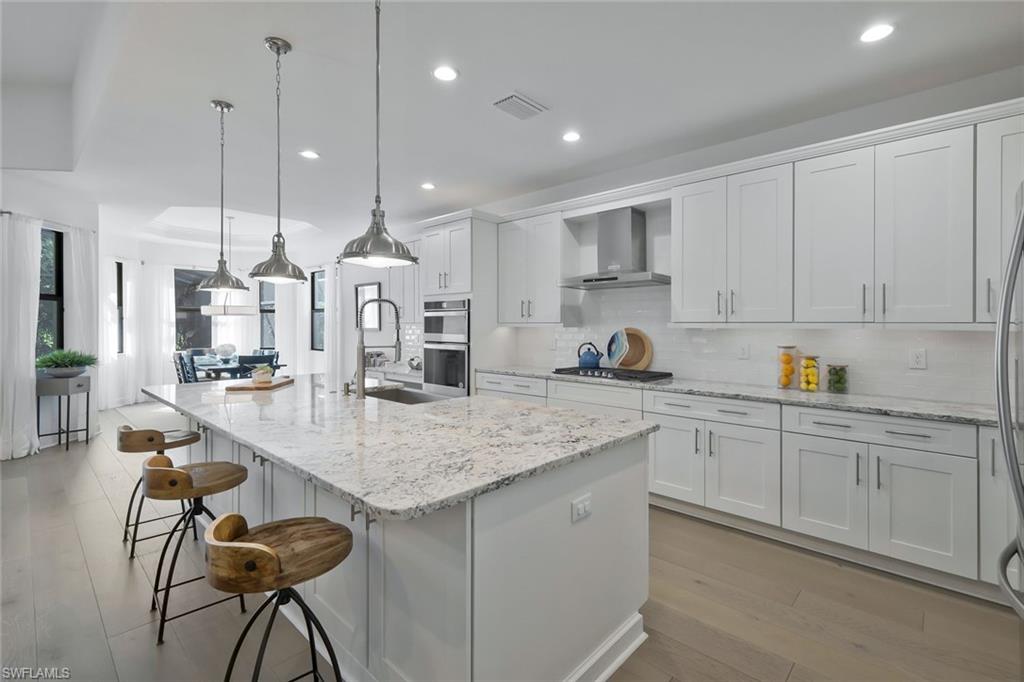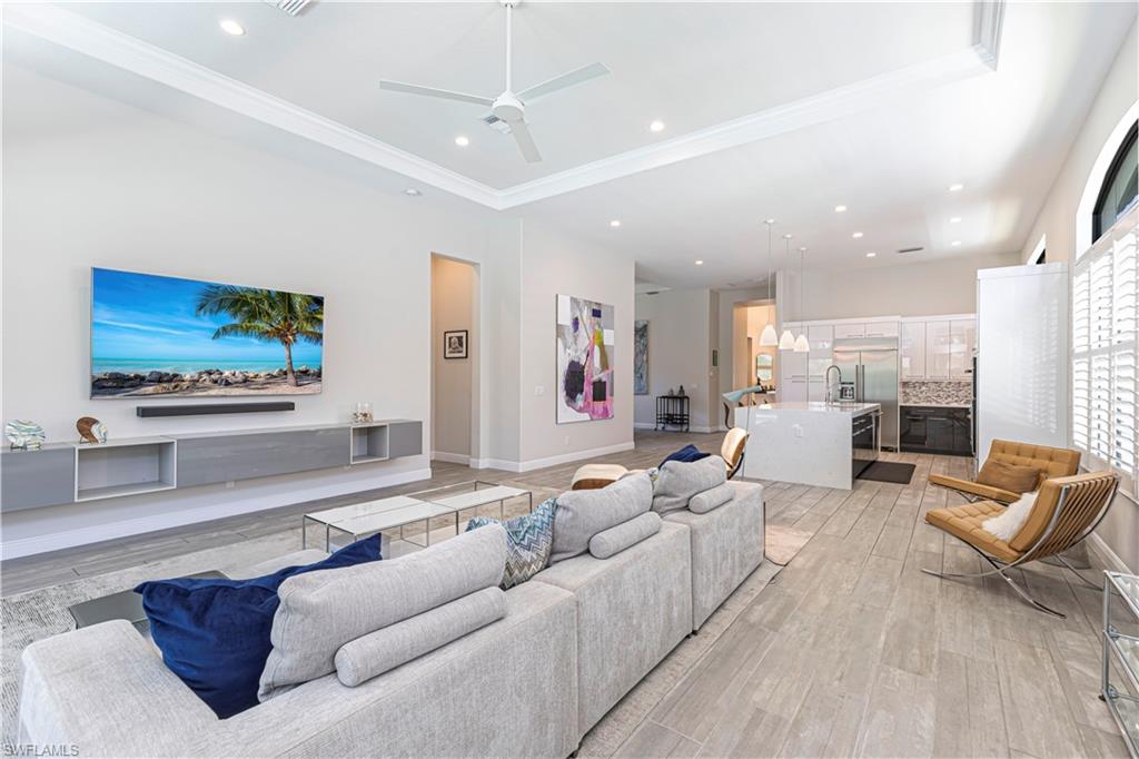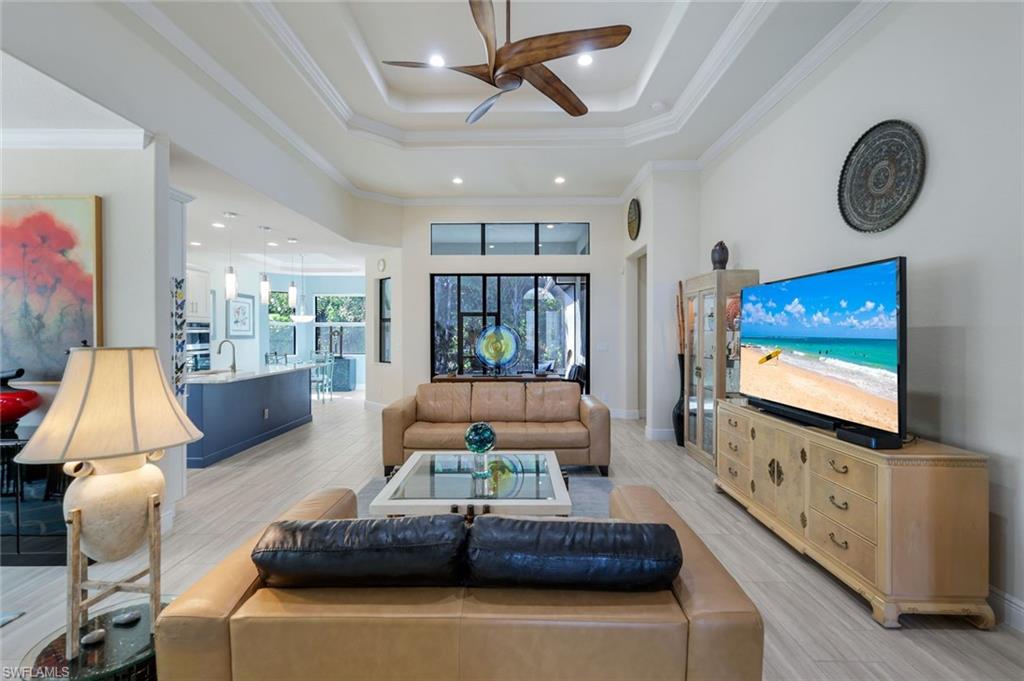 Opportunity awaits at 10046 Florence Circle, where sophistication meets comfort in the coveted gated community of Palazzo. This exquisite El Paso floor plan offers nearly 2,600 square feet of luxurious living, a rare 3-car garage, and sits proudly on an oversized lot—delivering the space and features discerning buyers’ demand. From the moment you enter, the attention to detail is unmistakable. Custom light fixtures, crown molding, designer wall coverings, and remote-control Hunter Douglas shades set a tone of understated elegance. At the heart of the home, the expansive great room flows effortlessly into the brand-new chef’s kitchen, showcasing 42” cabinetry, gleaming quartz countertops, Thermador appliances, and thoughtfully curated finishes. Every element has been professionally designed and executed to perfection. The primary suite serves as a private sanctuary, featuring dual vanities, custom walk-in closets, and an oversized shower that elevates the spa-like ambiance. Each secondary bedroom and bath have been designed with equal care, ensuring both comfort and style. Outdoors, the screened lanai invites year-round enjoyment, overlooking a custom saltwater pool with a tranquil water feature—perfect for unwinding or entertaining. Palazzo residents enjoy low HOA fees, natural gas, and no CDD costs, with optional golf, tennis, and social memberships nearby. Ideally located close to shopping, dining, and the pristine Gulf beaches, this property combines convenience, community, and craftsmanship. Come experience the elegance of 10046 Florence Circle—a home where every detail has been carefully considered and every comfort thoughtfully provided.