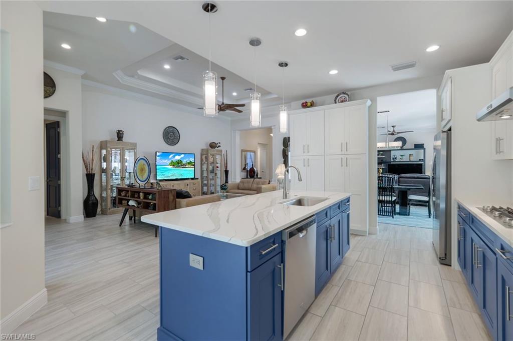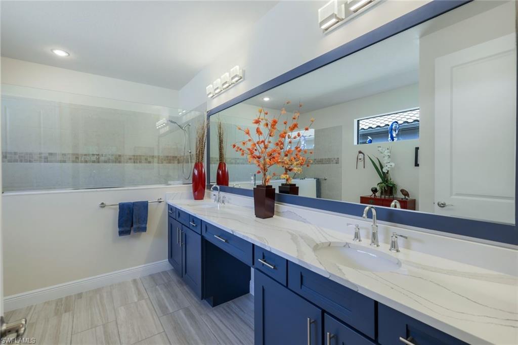 Just reduced, seller is very motivated! Your dream home awaits in this prime location of North Naples. Conveniently located east of I-75 and Immokalee Rd. Palazzo at Naples is a gated boutique community built by Toll Brothers. This 3 bed plus den space, 2.5 bath home was built in 2019. It boasts beautiful quartz countertops, a huge island for entertaining, 42 inch white and navy cabinets and gorgeous tile throughout. The primary bathroom has dual vanities an 11 foot walk in shower and a transit window adding extra light. The two car garage has a five foot extension giving you extra space for storage or a golf cart. Membership opportunities are available at neighboring Quail Creek and Longshore Lake. This natural gas community also features NO CDD, low HOA fees and not in a flood zone ( Flood Zone X) adding to its appeal. Located just 6 miles to pristine beaches, 20 minutes to RSW airport, downtown 5th Ave's world class dining and shopping are just 25 minutes away. Don't wait too long to call this one home!