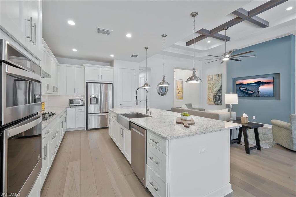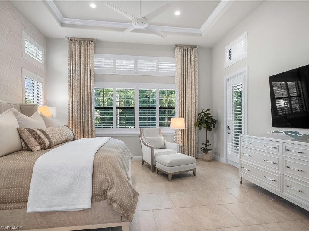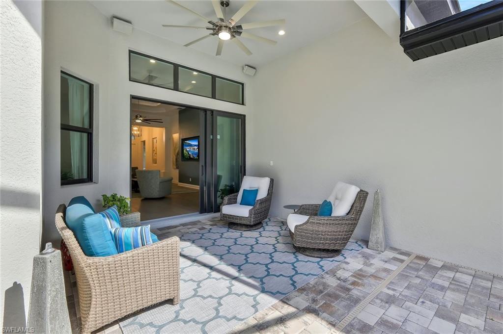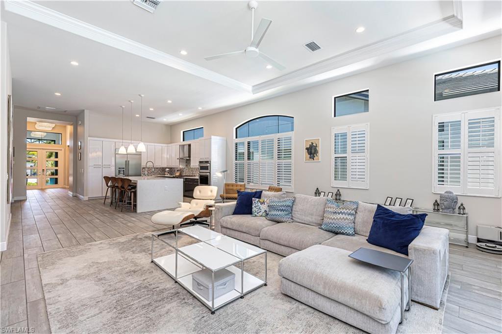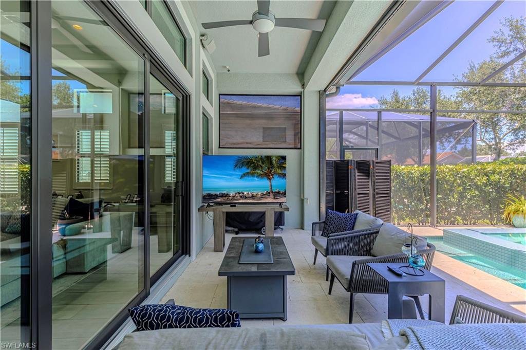 Tucked inside one of Naples’ most exclusive enclaves, this distinguished residence stands out as one of the most extensively upgraded homes ever available in Palazzo at Naples. The beautifully customized Toll Brothers property, built in 2018, welcomes you with impeccable curb appeal, top of the line finishes and fixtures, and impact glass doors and windows. The open concept Serino floorplan features exceptionally high ceilings, a columned entry, and a natural flow between indoor and outdoor living. The private lanai setting is an absolute dream with a saltwater pool, calming water features, an outdoor kitchen fit for a grill master, and covered lanai space complemented by a one of a kind firepit. Palazzo is one of the few communities in the area with natural gas, which fuels this home’s full house Generac generator, an invaluable feature for year round peace of mind. Style and luxury combine to make the perfect owner’s suite complete with dual walk in closets, built ins, floor to ceiling shower tile, gorgeous coffered ceiling work, and upgraded lighting accents. Even more enhancements include (1) a brand new A/C system installed in August 2025, (2) a new 2024 gas pool heater, (3) custom built interior plantation shutters, (4) Delta Heat outdoor appliances, (5) a Sonos indoor/outdoor speaker system, and (6) a new super sized washer and dryer. With no CDD and low HOA fees that cover all landscaping and common area maintenance, this stunning home provides both convenience and accessibility to beaches, shopping, dining, I-75, and top clubs Quail Creek Country Club, Quail Village Golf Club, and the Longshore Lake Club.