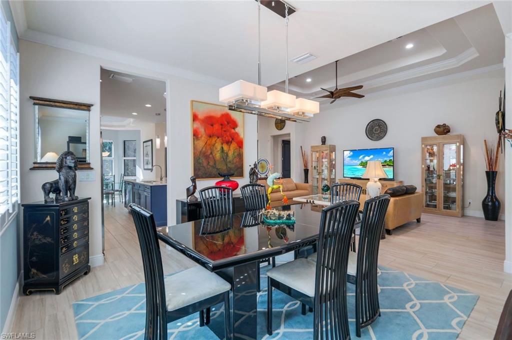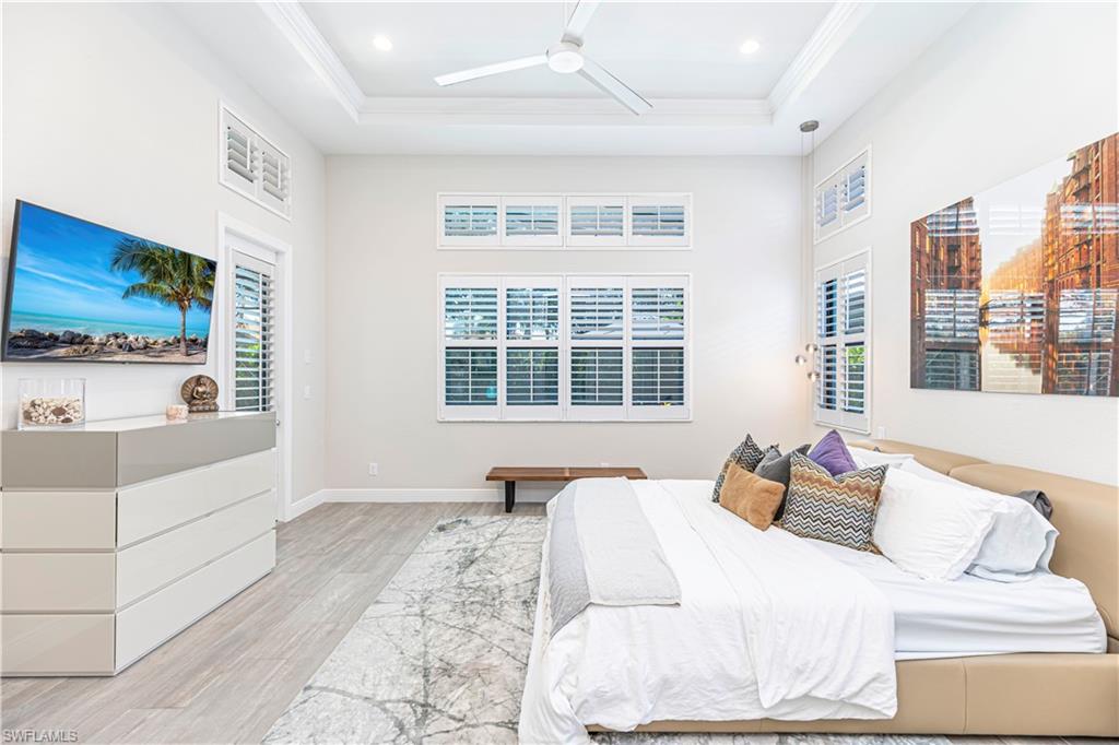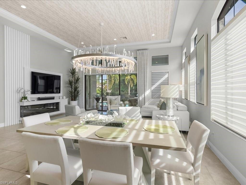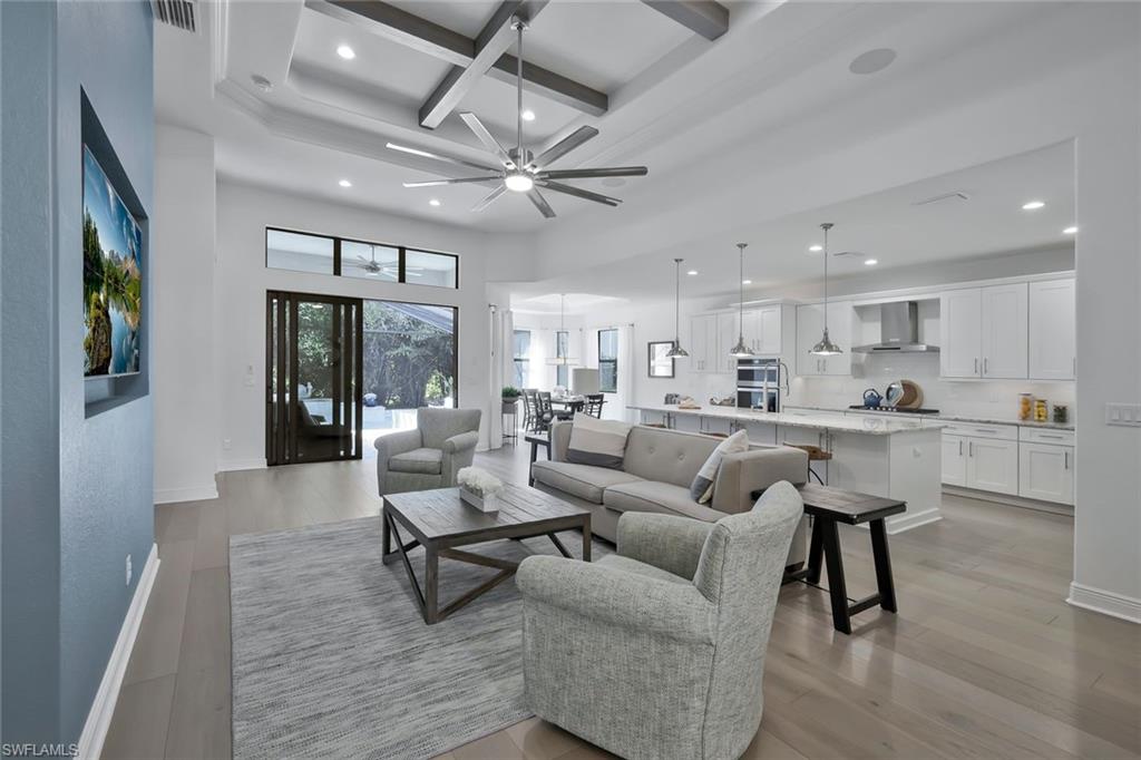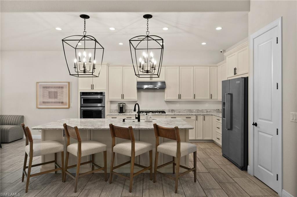Tucked inside one of Naples’ most exclusive enclaves, this distinguished residence stands out as one of the most extensively upgraded homes ever available in Palazzo at Naples. The beautifully customized Toll Brothers property, built in 2018, welcomes you with impeccable curb appeal, top of the line finishes and fixtures, and impact glass doors and windows. The open concept Serino floorplan features exceptionally high ceilings, a columned entry, and a natural flow between indoor and outdoor living. The private lanai setting is an absolute dream with a saltwater pool, calming water features, an outdoor kitchen fit for a grill master, and covered lanai space complemented by a one of a kind firepit. Palazzo is one of the few communities in the area with natural gas, which fuels this home’s full house Generac generator, an invaluable feature for year round peace of mind. Style and luxury combine to make the perfect owner’s suite complete with dual walk in closets, built ins, floor to ceiling shower tile, gorgeous coffered ceiling work, and upgraded lighting accents. Even more enhancements include (1) a brand new A/C system installed in August 2025, (2) a new 2024 gas pool heater, (3) custom built interior plantation shutters, (4) Delta Heat outdoor appliances, (5) a Sonos indoor/outdoor speaker system, and (6) a new super sized washer and dryer. With no CDD and low HOA fees that cover all landscaping and common area maintenance, this stunning home provides both convenience and accessibility to beaches, shopping, dining, I-75, and top clubs Quail Creek Country Club, Quail Village Golf Club, and the Longshore Lake Club.