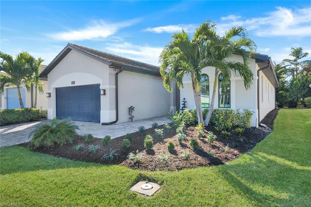 Imagine coming home to a place where golden light pours through every window, where evenings unfold beside a sun-drenched pool as the sky turns coral and gold. Built by Toll Brothers in 2018, this modern residence captures the essence of relaxed Naples living—stylish, private, and perfectly designed for the way you live today. Tucked on a corner lot with western exposure, the home offers a rare sense of openness and calm. The spacious backyard and side yard invite morning coffee in the sun, playtime with pets, or quiet weekends spent lounging by the pool while the gentle floating fountain adds a touch of tranquility. Step inside and you’ll feel the thoughtful flow of the open-concept design—where the great room and gourmet kitchen connect seamlessly for both daily living and effortless entertaining. The kitchen features white shaker cabinetry, granite countertops, a large island, and stainless-steel appliances including a gas cooktop and wall oven—every detail tailored for comfort and function. Glass sliders draw you outdoors to a screened lanai surrounded by lush, low-maintenance turf—perfect for al fresco dinners, sunset gatherings, or peaceful afternoons by the pool. The owner’s suite feels like a private retreat, where tray ceilings and bay windows create an airy, sunlit atmosphere. Two custom walk-in closets offer generous storage, and the spa-inspired bath features a walk-in shower with bench and dual vanities topped with granite. Two guest bedrooms provide inviting accommodations, while the flexible den adapts effortlessly—ideal for a home office, media room, or even a fourth bedroom when guests arrive. Every detail—impact-resistant windows, tile roof, epoxy garage floor, and central vacuum system—speaks to quality and care. Located within the gated community of Palazzo at Naples, this home places you minutes from Mercato, Coconut Point, and the pristine Gulf beaches, with downtown Naples and Bonita Springs just a short drive away. Whether you’re seeking quiet mornings by the pool, sunset cocktails under the lanai, or spontaneous trips to the beach, this home offers the perfect balance of luxury, privacy, and coastal ease—all with low HOA fees. Residents have the option to join nearby Quail Creek and Longshore Lake, offering access to premier golf, dining, and lifestyle amenities. The property is located in a low-risk X-500 flood zone.