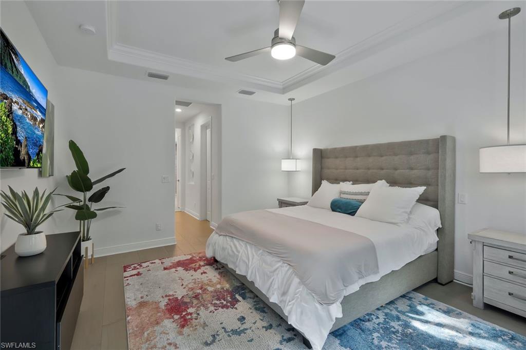 Discover refined living in this stunning two-story home located in the gated community of Palazzo. This spacious residence offers 5 bedrooms + den, 4 full baths, and a 2-car garage, with the primary suite, guest bedroom, and office on the main level—an ideal layout for comfort and convenience. This home welcomes you with soaring ceilings, creating a bright and open feel. The chef’s kitchen features a large island with seating, granite countertops, and premium stainless-steel appliances. Additional highlights include two main-level suites, a mahogany staircase, crown molding, surround sound throughout, and a new HVAC system. Upstairs, you will find three additional bedrooms and a versatile den. The screened lanai with a sparkling pool provides a private outdoor retreat perfect for relaxation or entertaining. Ideal North Naples located near Naples’ beaches, shopping, dining, and cultural attractions, this home offers timeless design paired with modern comfort.