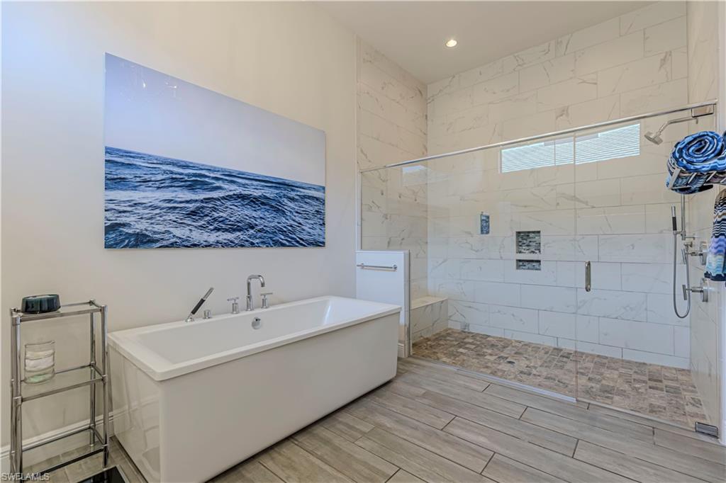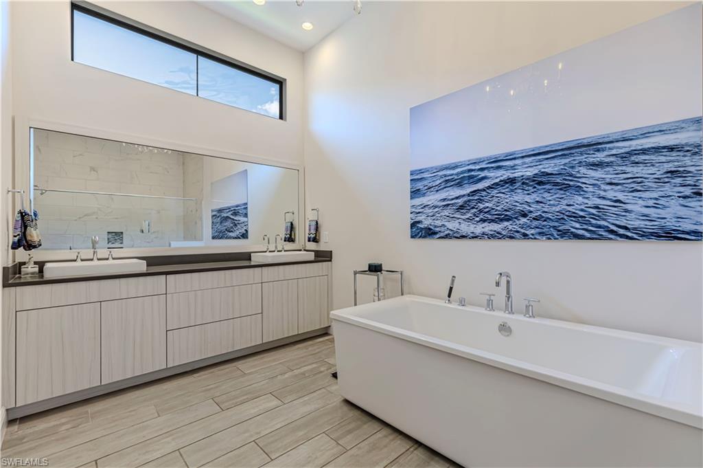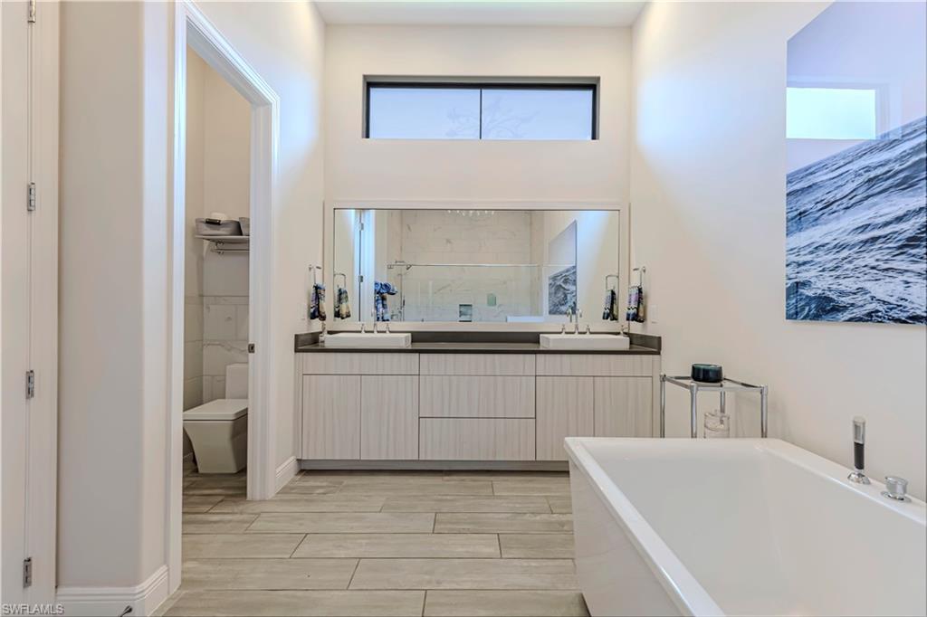 This stunning 3 bedroom plus den Serino model home built by Toll Brothers awaits in the prime location of North Naples. Conveniently located east of I-75 and Immokalee Rd. Palazzo at Naples is a gated boutique community with only 85 homes. This home features a columned entry ceiling with matching beams in the extended great room and hardwood floors throughout. The gourmet kitchen is a chef's dream with 42" cabinets topped with crown molding. It boasts an oversized island with cabinets on both sides, making for extra storage. A gorgeous farm style sink with a high quality faucet perfect for entertaining. Stainless steel appliances including a 36" gas cook top. The primary bath is a sanctuary of relaxation with a free standing tub, massive walk through shower, dual shower heads and exquisite tile. Enjoy the private outdoor area finished with a saltwater pool and spa. This home has so many great features including a drop zone in the laundry room and hurricane doors and windows throughout to name a few. Membership opportunities are available at neighboring Quail Creek and Longshore Lake. This natural gas community also features NO CDD ,low HOA fees and not in a flood zone ( Flood Zone X) adding to its appeal. Located just 6 miles to pristine beaches, 20 minutes to RSW airport, downtown 5th Ave's world class dining and shopping are just 25 minutes away. Don't miss the chance to call this one home!