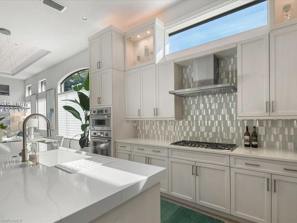 Do not miss this opportunity - this home shows like a model with nearly every builder upgrade! Luxury and charm are combined with world-class craftsmanship to deliver this showcase Toll Brothers built home in the exclusive gated natural gas community of Palazzo at Naples. Situated on a premium Western-facing .25-acre oversized lot, this one-owner home features 3 bedrooms plus den, 2 full bathrooms plus a powder bath and an oversized 2-car garage. As you enter the foyer, you are greeted by a dramatic wood planked barrel ceiling that leads to the open concept great room area with soaring dual-tray ceilings. A true focal point, the custom built-in entertainment console features a beautiful stone accent wall with an abundance of natural light provided by the optional transom windows. Over $270,000 in builder upgrades including impact windows and doors, mitered glass window in dining area, expanded bedrooms, expanded kitchen and dining room area, expanded master bathroom, 4’ garage extension and much more. The gourmet-inspired kitchen features upgraded cabinetry and appliance package, granite countertops with glass mosaic backsplash, upgraded upper cabinets with lighting, dry bar with built-in wine cooler, pantry with pull-out drawers and more. The master bedroom boasts two walk-in closets with built-in cabinets, upgraded wood flooring, tray ceiling and a luxurious master bathroom with free-standing tub, ceiling-mount tub filler, designer wallpaper, casement mirrors and upgraded shower with multiple heads. Glass inserted French doors lead you into the den/study, with upgraded wood flooring and a custom built-in desk that offers additional storage and organization. Enjoy the private outdoor area, finished with a large saltwater and gas heated custom pool with spa and water fountain, upgraded shell stone pavers, outdoor shower and rear privacy wall. Additional features include crown molding throughout the home, custom draperies and plantation shutters, epoxy garage flooring, built-in linen closets, masonry core foam insulation package and radiant barrier, roughed-in outdoor kitchen prep and designer light fixtures. A hidden gem nestled in the heart of North Naples, Palazzo at Naples offers its residents a low maintenance lifestyle and low HOA fees that include lawn care and dual gated entry ways. Palazzo residents also have access to join the Quail Creek Golf and Country Club, where they can choose between a social/sport or golf membership.