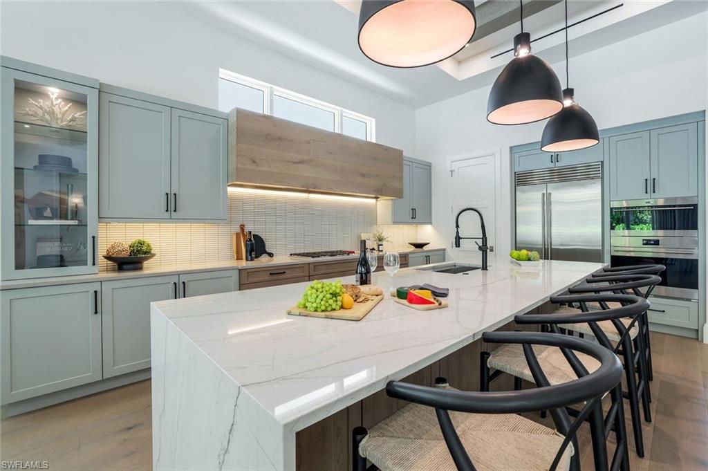 DESIGNER FURNISHED AND MOVE-IN READY HOME AVAILABLE NOW! Seagate Development Group and Theory Design present the professionally designed and furnished Laguna Model Custom Home in PALISADES, one of Seagate’s newest, gated communities in the heart of Naples. This custom home is a collaboration between Seagate Development Group and Theory Design with Architecture by JMDG Architecture, and custom landscape & hardscape design by Outside Productions. Enjoy a pacific modern design with steel gray and neutral tones with black accents, warm European White Oak floors, tray ceilings and textured wallcovering accents. This custom home features 3 bedrooms, study, 3 full and 2 half baths, and an oversized 3-car garage. The outdoor living area features electric roll down screens, tongue and groove stained ceiling, outdoor kitchen, stone fireplace, turf sun deck, pool bath, custom pool with water feature wall, spa and lush landscaping. The home has an open floor plan with tray ceilings throughout. The gourmet kitchen includes two tone cabinetry, glass upper cabinets with lighting, tile backsplash, custom hood, under cabinet lighting, island with 3” mitered waterfall countertop, paneled Sub Zero/Wolf appliance package, windows for natural lighting, and walk-in pantry with cabinetry and refrigerator. The great room includes a bar with an ice maker and undercounter beverage refrigerator. The master suite features a sitting area with sliding glass doors leading to the covered lanai. The master bathroom features honed marble floors and comes equipped with Kohler plumbing fixtures including a private water closet, soaking tub, spacious shower with 3 showerheads and a linen closet. Additional luxury features include 9.45” European White Oak wood floor throughout, custom built-in closets, 1 ¾” solid interior doors, Emtek door hardware, linear HVAC diffusers in common areas, level 5 drywall, double pane Andersen impact windows & doors, Control4 home automation system, sound system, spray foam insulation, custom iron front door, natural gas, lush landscaping, and interior designer selected custom light fixtures and furnishings. Palisades is an enclave of 25 custom homes situated in a premier Naples location with abundant amenities. Palisades is only minutes away from Mercato, Waterside Shops, 2 Ritz-Carltons, and other exceptional shopping, dining, and beachfront destinations. Seagate’s portfolio of companies specialize in custom homes, renovations, interior design, estate management, and land development. Together, bringing exceptional concierge levels of service to everything we do. SALES CENTER OPEN DAILY.