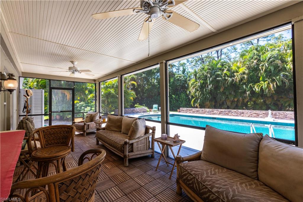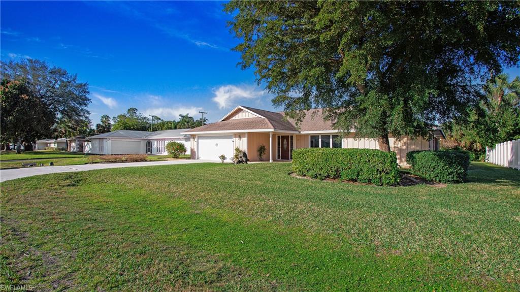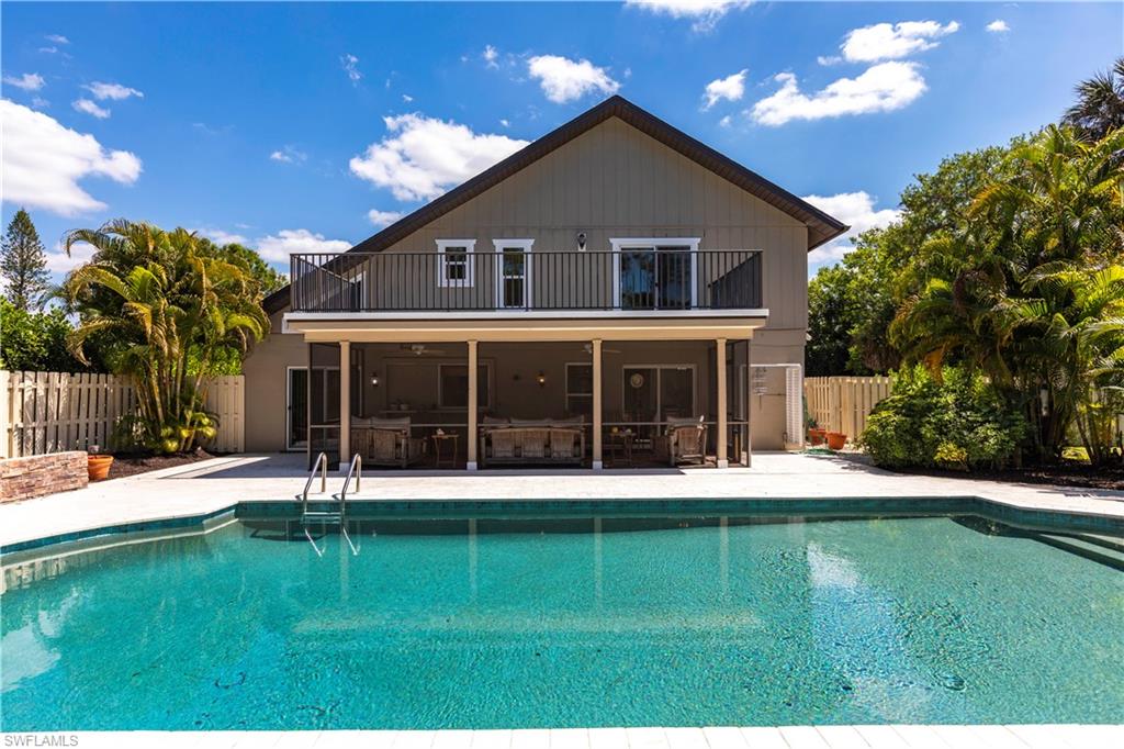 Comfort and convenience are both realized in this spacious residence, tucked away in the established, friendly, HOA-free neighborhood of Palm River Estates. The expansive 14,374 square foot cul-de-sac lot features a well for irrigation and a private setting on the La Playa Golf Course. Inside, you'll find a beautifully maintained interior with a new 2022 roof, recently replaced AC, and fresh paint. The open floor plan provides four large bedrooms, three full baths (one guest bedroom provides en-suite), a large laundry room, and a screened lanai with a private heated pool. The home spans an impressive 2,682 square feet and has two living rooms providing ample space for entertaining, making it perfect for a variety of lifestyles and growing families. Easy access to Naples’ renowned beaches, medical care, Seed to Table market, parks, and Mercato for world-class entertainment come free with this location. With top-rated schools nearby, this home is ideal for families seeking a vibrant and welcoming community.