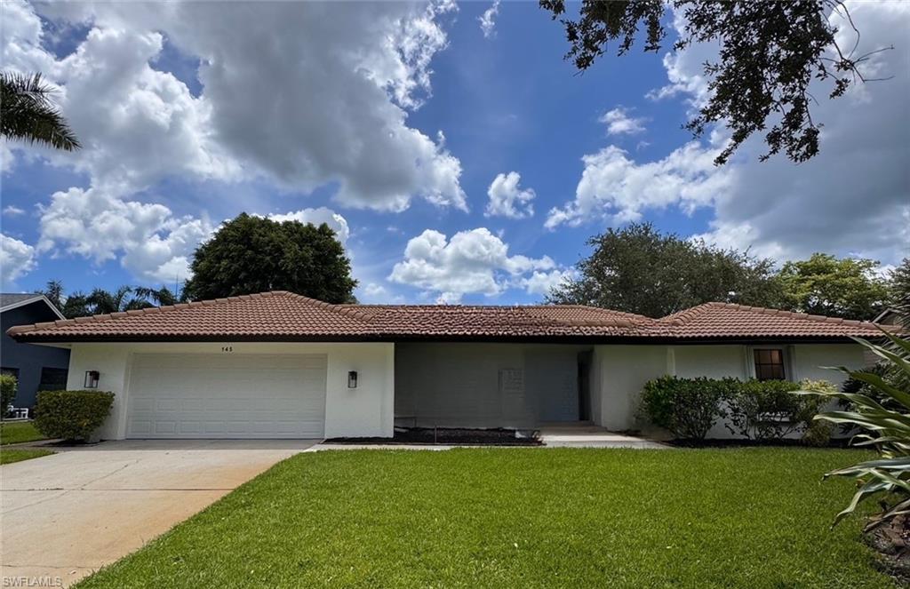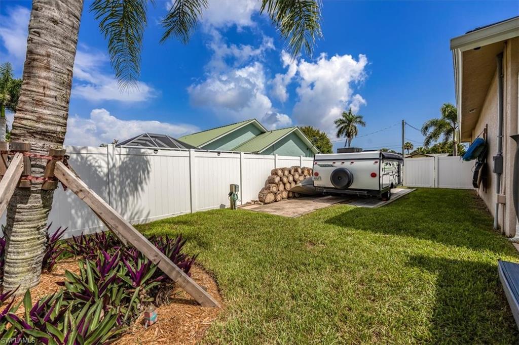 This Palm River home offers 2,001 square feet of indoor living space on a generous .27 acre lot featuring mature Mango & Key Lime trees in the heart of North Naples without any HOA restrictions or fees. With a blend of comfort and style, this home is perfect for those who love to entertain or simply relax in their own private paradise. The open floor plan is fresh and bright, with 14' tray ceilings, porcelain tile throughout, and a kitchen outfitted with cherry cabinets, quartz counters, and top of the line KitchenAid appliances (the refrigerator new in 2024). The split layout offers everyone privacy with the main bedroom and its deluxe en-suite bathroom complete with dual vanities, a jetted tub, water closet, and separate shower on the opposing side of the house from the 2 guest bedrooms. There is also a den with French doors that could easily be a home office, craft room, or zen retreat. The real heart of this home is the stunning backyard oasis featuring a custom solar-heated pool with a brand-new pump in a beautiful paver deck, surrounded by a 6' White PVC privacy fence so you can enjoy your outdoor space without any interruptions. Imagine unwinding in the hot tub or gathering around the fire pit for those memorable evenings with loved ones?! Plus, there's a parking pad with power that's perfect for your toys, whether it's an RV, boat, or something else. To top it off, a whole-house water filtration system ensures fresh, clean water throughout. With all these incredible features and its prime location, 151 Fairway Circle isn't just a home — it's your personal retreat. Don’t miss the chance to make it yours!