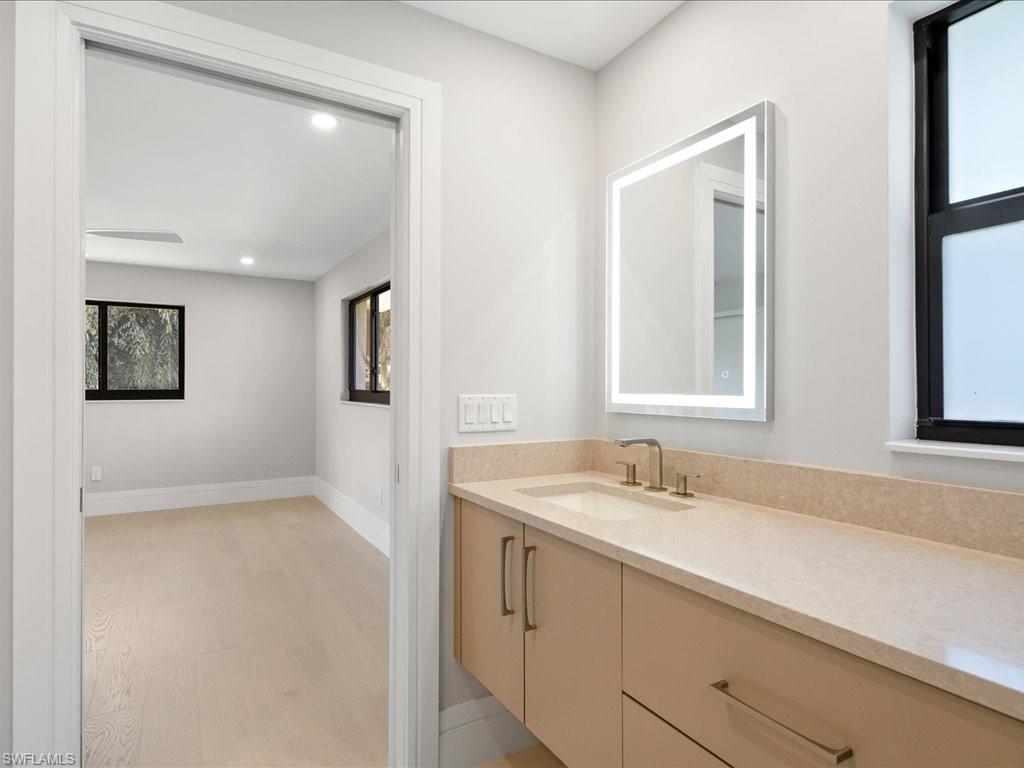 Stunning Palm River Estates Pool Home, Fully Renovated Modern Oasis. Welcome to this beautifully renovated 4-bedroom, 3-bathroom pool home situated on a spacious, south-facing lot within the desirable Palm River Estates in North Naples. This contemporary residence offers a luxurious living experience defined by thoughtful design, superior craftsmanship, and modern conveniences. Step inside to discover a fully renovated interior featuring gorgeous hardwood floors and an open-concept layout ideal for entertaining and comfortable family living. The gourmet kitchen showcases custom-designed wood cabinetry, top-of-the-line Bosch appliances, and an expansive center island seamlessly flowing into the great room. Every detail was carefully considered, with no expense spared, impact windows and doors, new electrical and plumbing systems, and a brand-new HVAC system and water heater, epoxy coating on the garage floor. Enjoy the convenience of a bespoke laundry room within the air-conditioned living space, complemented by a spacious pantry designed for ample storage. The versatile floor plan effortlessly accommodates family life, guests, and the modern work-from-home lifestyle. Step outside onto your aesthetically contemporary tiled pool lanai, perfect for relaxing, dining al fresco, or hosting gatherings. Located minutes away from premier shopping, dining, and pristine Naples beaches, this home perfectly combines contemporary luxury with an exceptional location. With a roof replaced in 2017, this property ensures both style and peace of mind for years to come. Don’t miss the opportunity to own this extraordinary residence in Palm River Estates, your perfect Naples retreat awaits!