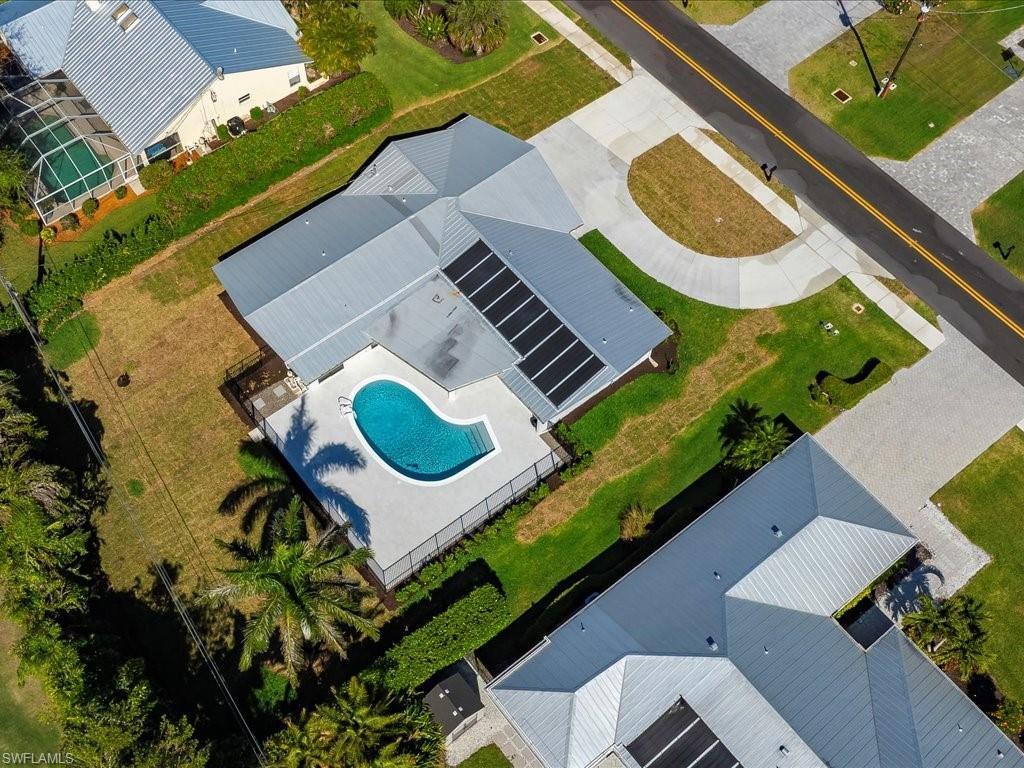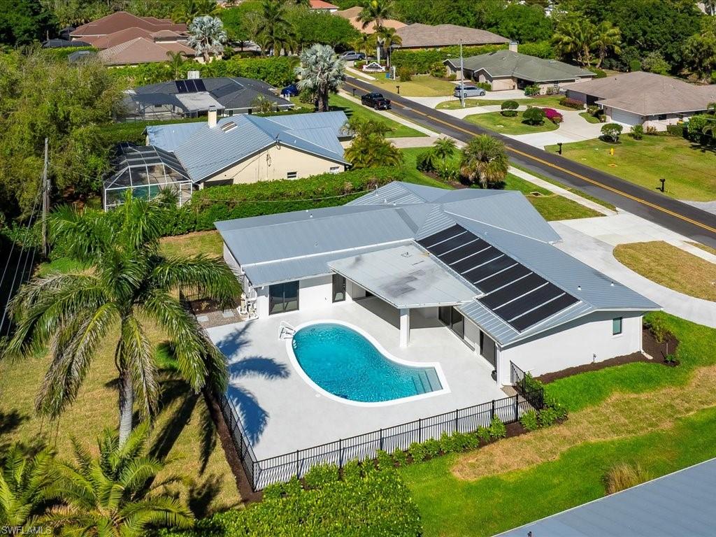 Welcome to 409 Cypress Way East, an exquisite custom home in sought after Palm River Estates, Naples, FL, masterfully remodeled by Latitude 26 Builders. Nestled in a central community with no mandatory HOA, this residence offers sunset golf course views and proximity to the beach, dining, and entertainment. This elegant 4-bedroom, 3-bathroom home spans 2,777 square feet and boasts contemporary finishes with modern updates. The open floor plan includes a separate office and features new plumbing, electrical wiring, and interior walls. Designer touches such as custom Lutron lighting, remote sunshades, and Italian Santa Margherita Grigio Nube Quartz countertops elevate the space. High-end appliances, an induction cooktop, and soft-close cabinets enhance the gourmet kitchen. Enjoy the luxury of impact windows, a new metal roof, and a high-efficiency GE washer/dryer. The Western exposure fills the home with natural light and stunning sunset views. The expansive 14,374-square-foot estate sized lot offers a private oasis with a new paver patio, electric pool heater, and lush St. Augustine sod. Relax by the private pool or explore nearby white sand beaches and vibrant Mercato for shopping and dining. This pet-suitable fully fenced haven includes an attached garage, central AC and heating, and ample parking. Experience the ultimate in privacy and elegance.