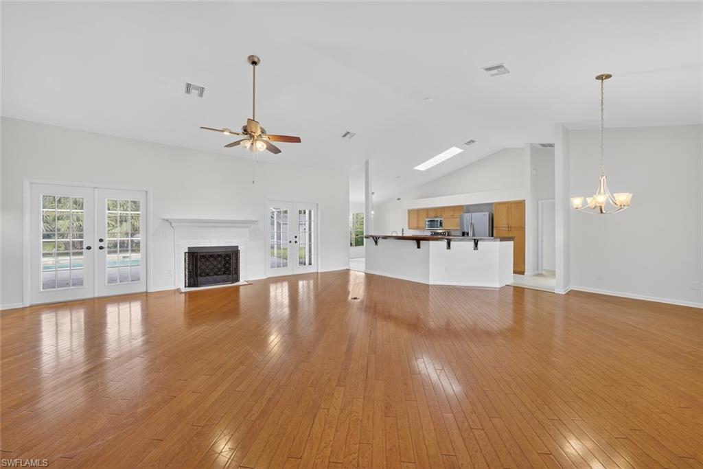 Situated in the desirable community of Palm River Estates, this beautifully maintained 3-bedroom, 2-bath pool home offers a rare combination of space, privacy, and convenience. Located on nearly half an acre in North Naples, this residence is just minutes from world-class beaches, golf, shopping, and dining. The interior boasts an open and bright floor plan with abundant natural light, new tile flooring throughout (excluding the great room), and fresh interior paint (2023). The kitchen features stainless steel appliances, and a cozy fireplace adds warmth and character to the main living area. Elegant French doors open to the outdoor living space, enhancing the home’s seamless indoor-outdoor flow. Enjoy peaceful afternoons in the screened-in pool area with a northwestern exposure, perfect for capturing stunning sunsets. The expansive fenced backyard provides both privacy and function, complete with a shed for additional storage. A covered front porch adds to the home’s welcoming curb appeal. Recent upgrades include a new pool pump, irrigation pump, and clock (2025), offering enhanced efficiency and reliability. This home represents a rare opportunity to own a spacious, well-appointed property in one of North Naples’ most established neighborhoods.