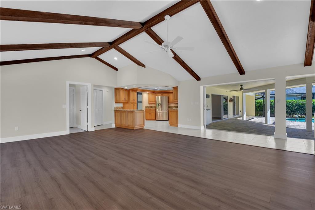 Boasting 3 bedrooms plus a den, 2.5 baths, and a 2-car garage, this captivating residence overlooks the immaculate greens of La Playa Golf Course. Inside, you’ll find abundant natural light and a warm, inviting atmosphere. The spacious kitchen features granite countertops, custom wood cabinetry, stainless steel appliances, and bar seating, flowing seamlessly into the open living and dining areas. From here, enjoy panoramic views of your private backyard oasis with a sparkling pool, creating the perfect blend of indoor-outdoor living. Architectural highlights include recessed lighting, charming wood beams in the living room, and a distinctive step-down design that adds character and depth. Custom sliding doors open to the den, enhancing the home’s flexible layout and upscale feel. Outdoors, relax on the patio with built-in cabinets and a wet bar, or entertain guests in your resort-style backyard while soaking in picturesque golf course views. Perfectly positioned near Mercato, pristine beaches, and top-rated A+ schools, this property offers access to the very best of Southwest Florida living. Whether as your full-time residence, seasonal retreat, or an outstanding income-producing rental, this home is an unparalleled opportunity. Don’t miss your chance to make it yours—schedule your private viewing today!