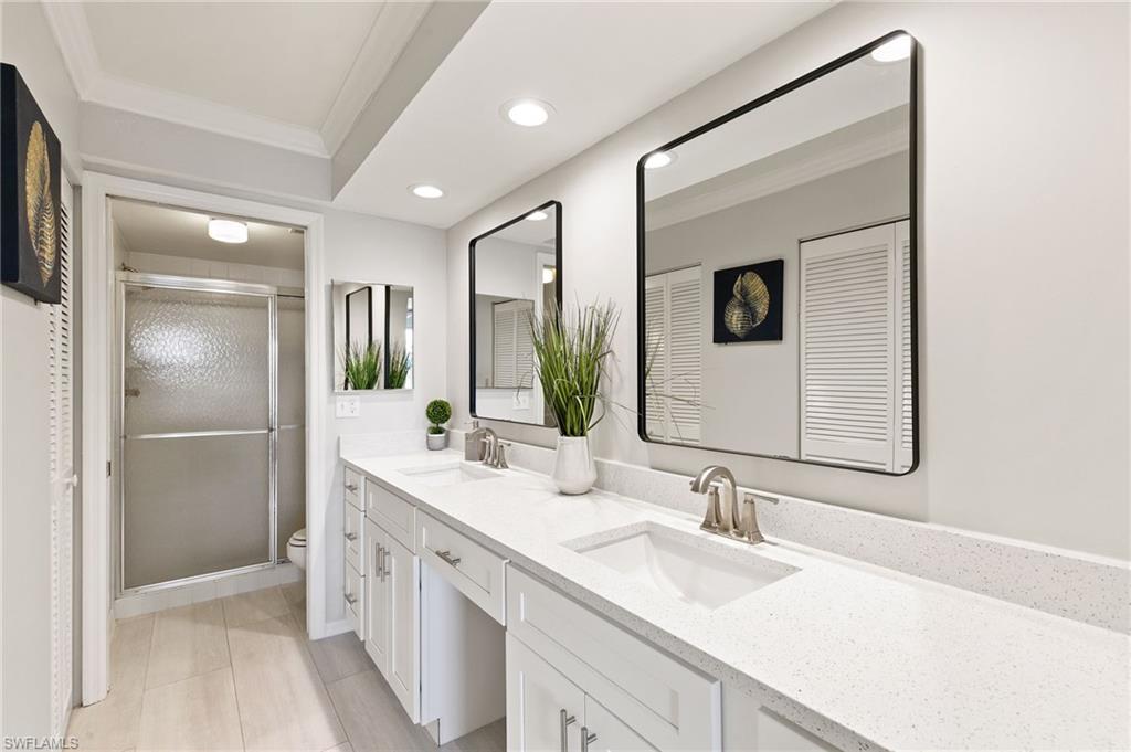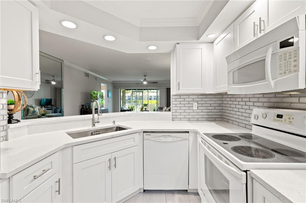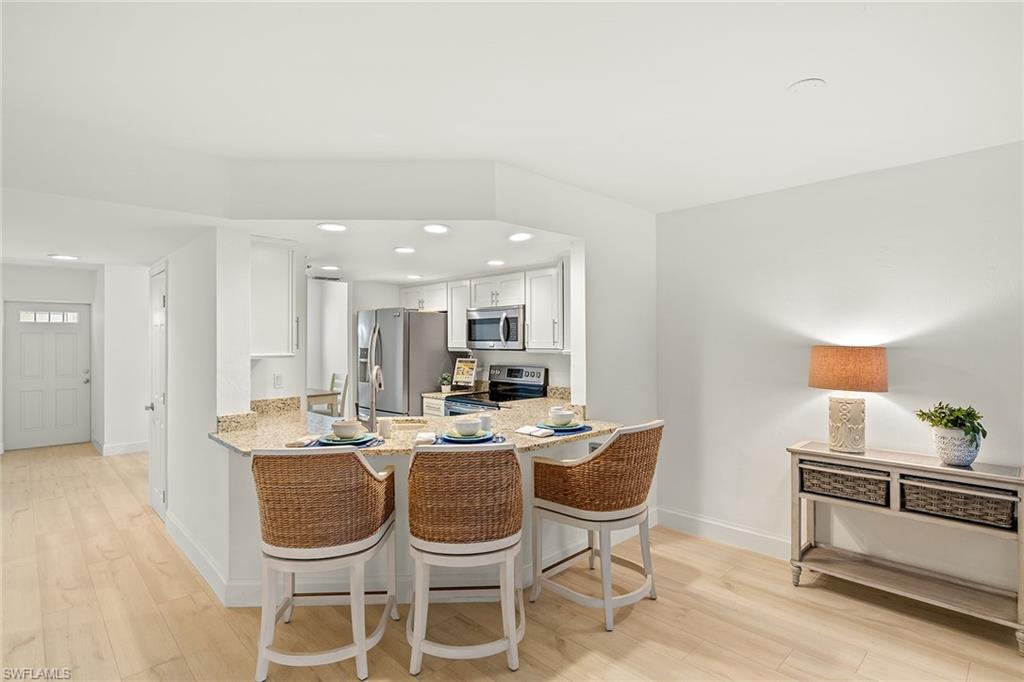 Located in one of the most desirable areas of North Naples, this beautifully updated two-bedroom condo is just one mile from Vanderbilt Beach and the Ritz-Carlton. A short five-minute walk brings you to Mercato, Pelican Bay Community Park, Paragon Movie Theater, LA Fitness, Whole Foods, Publix, and a wide selection of shops, restaurants, and amenities. The condo features a spacious master bedroom with an ensuite bathroom, while the remodeled guest bathroom adds modern elegance. The sleek, contemporary kitchen boasts white cabinetry, quartz countertops, newer stainless steel appliances, and a breakfast bar. With an open-concept layout, vaulted ceilings, and abundant natural light, the living space is both inviting and airy. Additional highlights include wood-look flooring throughout, all-new plumbing (completed in 2024), a brand-new A/C system, recessed LED lighting, built-in storage cabinets, in-unit laundry, and assigned covered parking. The Pavilion Club community has recently been refreshed with new paint, awnings, carports, a privacy perimeter wall, a secure front gate, community grills, and a newly paved parking lot with landscaped islands. With its prime location and excellent rental potential, this is a rare opportunity to own in North Naples. Your slice of paradise awaits!