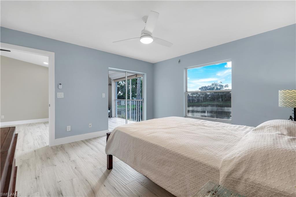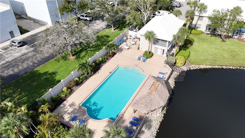 ONE MILE FROM THE BEACH! Location, Location, Location! BEAUTIFUL VIEW from Balcony! Everything you love and enjoy about the Naples lifestyle is in this home and close proximity to Vanderbilt Beach and Mercato! This beautiful 2nd story property is immaculately maintained, offers abundant light as an end unit with high ceilings and no carpet. Over 1500 sq ft of living space with a southern exposure from the lanai. The screened lanai overlooks the pond with fountain and is a perfect relaxing spot to enjoy morning coffee or evening sunsets surrounded by lush tropical landscaping. INCLUDES IMPACT GLASS windows and roll down hurricane shutter for the lanai for easy lock up! You will also enjoy the updated kitchen, plumbing, and wood flooring. Water heater is less than 1 year old. Living in Pavilion Club means enjoying a well-kept gated community with low HOA fees in an unbeatable location! One assigned covered parking spot, plenty of guest parking and pets welcome! HOA fees include building maintenance, landscaping maintenance, flood insurance, irrigation and drinking water, trash removal, gated entry and on-site manager to list a few. This home is ideal for a full-time residence, seasonal retreat, or investment opportunity. SEASONAL MONTHLY INCOME is in the $6000-$7000+ range. This home offers everything you need to embrace the Naples lifestyle, and just a short drive to Fifth Avenue, Bonita Springs, and RSW airport!