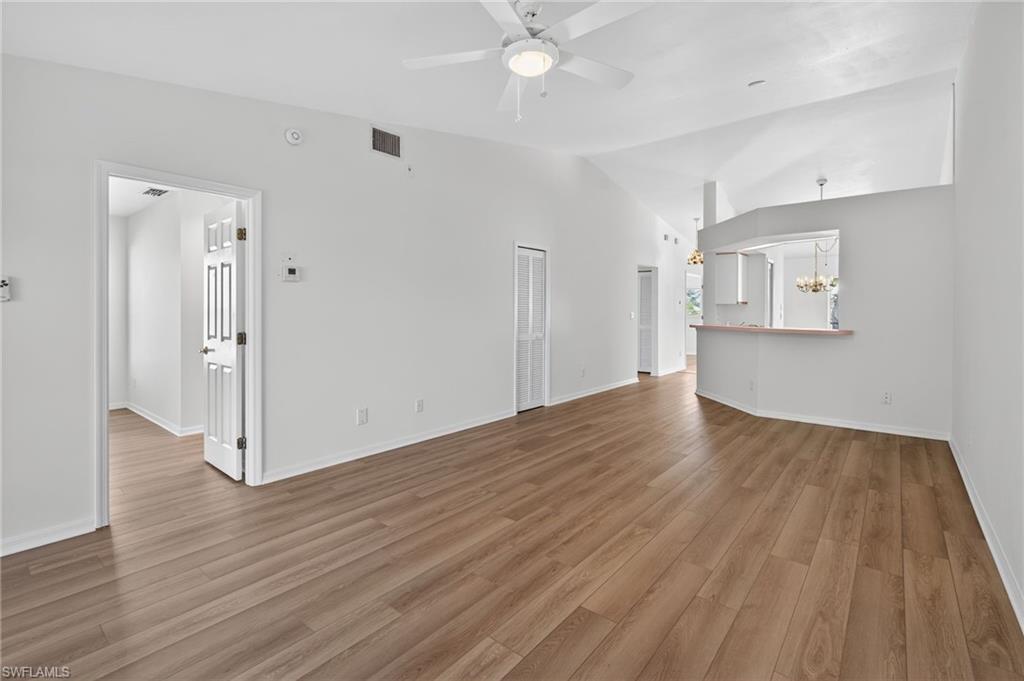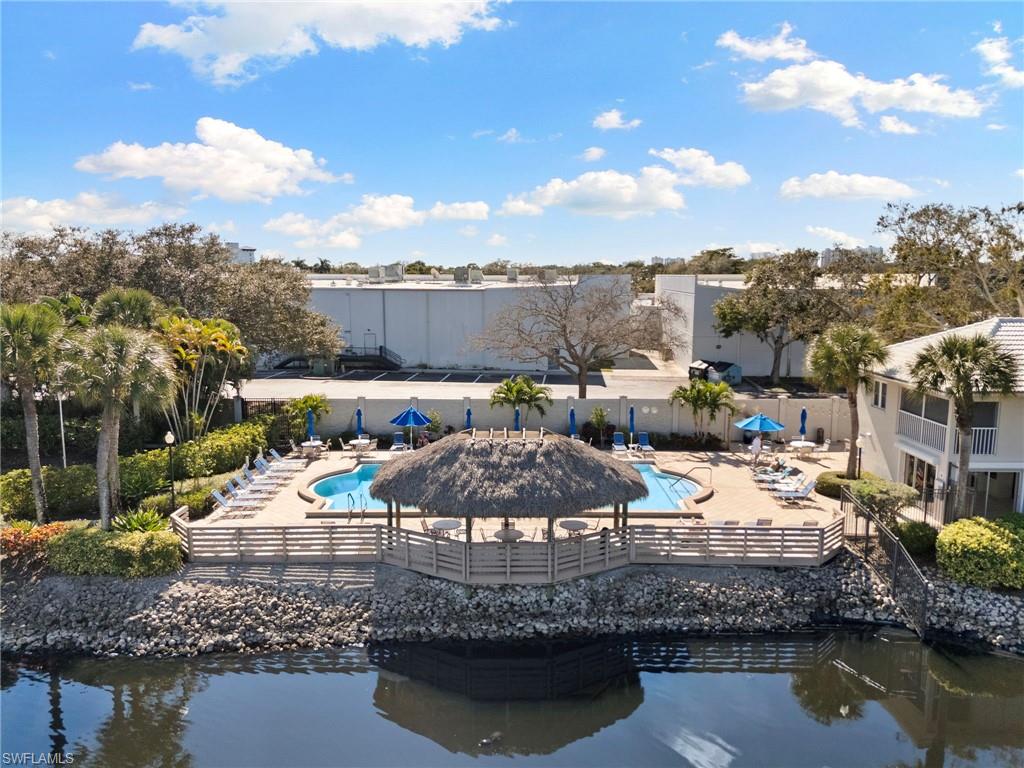 One of the best views in Pavilion Club, this home enjoys a long lake and fountain view with magnificent Naples sunsets. This spacious, two bed, two bath, 2nd floor unit features vaulted ceilings and a unique, enclosed, finished lanai with Impact Resistant sliders that allow flexibility to enjoy extended indoor living space or a breezy, outdoor lanai, both with a fabulous view! IMPACT Windows and doors were installed in 2013. Kitchen was remodeled with beautiful granite countertops, cabinets and stainless-steel appliances. The master and guest baths have been completely renovated with cool, crisp coastal finishes that will surely wow you. Enjoy wood floors throughout the living area and bedrooms, 2018 A/C with new duct work in 2021, new water-heater in 2024, an was re-piped in 2024 making this unit a solid investment! This property is being sold turnkey with just a few exceptions and ready to move right in! Less than a mile from beautiful, Vanderbilt Beach and West of 41, this Premium location has never been flooded and community does not require the newly mandated inspections & studies. Just a short walk to Pavilion Shops featuring dining, shopping, cinema, fitness - Mercato, Ritz Carlton, a wide array of restaurants and grocery options and Pelican Bay Park further enhance this highly desirable location. Five, thirty day rental policy allow for investment opportunities. The Pavilion Club's gated entry, pool, tranquil lake and fountain provide the perfect setting to relax and enjoy paradise!