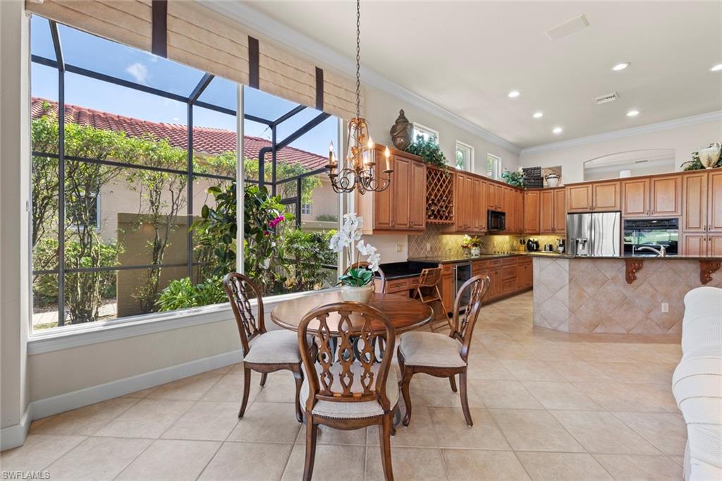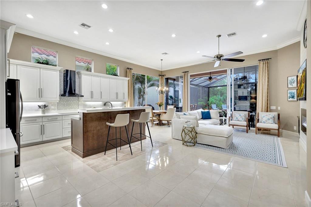 A refined sense of privacy and coastal elegance defines this beautifully reimagined residence at Nine Thousand Nine Terranova Drive, set within the intimate enclave of Terrabella in Pelican Marsh. Thoughtfully curated to enhance both seclusion and effortless entertaining, the home unfolds with an impressive new open kitchen anchored by bespoke cabinetry, a spacious island, Sub-Zero refrigeration, Wolf cooking appliances, and a well-appointed wet bar that seamlessly transitions into the inviting great room. Expansive pocketing glass doors draw the eye to the lush tropical outdoor sanctuary, where a renovated pool and spa are framed by vibrant plantings and serene preserve views, creating a tranquil backdrop for sunset gatherings. A new roof and air-conditioning systems installed in twenty twenty-four elevate the home’s modern comfort, while refined millwork, designer lighting, and curated finishes add depth and sophistication throughout. The private primary suite offers a calming retreat with dual custom closets, a spa-inspired bath, and direct access to the lanai. Two guest en-suites provide exceptional comfort for visitors, and the dedicated office or den with double door entry and tailored built-ins offers an elegant environment for work or quiet reflection. Within Pelican Marsh, residents enjoy a prestigious setting complemented by premier amenities, including Har-Tru tennis courts, pickleball, bocce, a state-of-the-art fitness center, and the popular Courtside Restaurant. Membership at the acclaimed Robert von Hagge–designed Pelican Marsh Golf Club is available but not required. The location places you moments from Naples’ celebrated Gulf beaches, Waterside Shops, Mercato, and the cultural offerings of Artis–Naples. Here, refined design, modern upgrades, and a coveted Pelican Marsh address come together to offer an elevated Naples lifestyle. Discover a residence that feels both luxurious and effortlessly livable.
