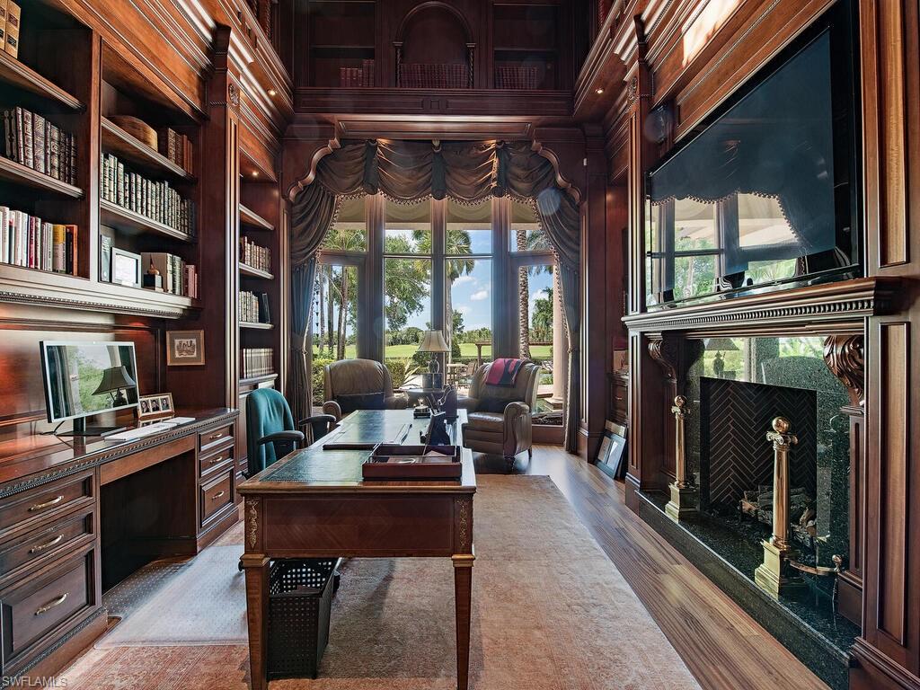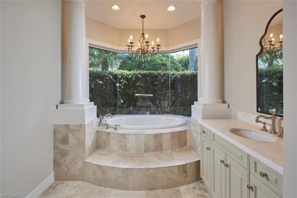 Luxurious estate in Bay Colony Golf! A life of unmatched elegance. On a premier golf course lot within the prestigious, guard-gated Bay Colony Golf Estates, this custom two-story home offers 8,976 square feet of thoughtfully designed living space. With four bedrooms, six baths and a three-car garage, the home blends spaciousness with sophistication. Designed for comfort and style, the residence features a private elevator, home theater, wine closet, multiple wet bars, a custom library, and a gourmet kitchen that opens to expansive indoor-outdoor living areas. High ceilings, quality finishes, and a seamless floor plan create an inviting environment for both everyday living and entertaining. Outdoors, the resort-style pool and spa, covered lanai, outdoor kitchen and private guest cabana provide a peaceful and private setting for relaxation or hosting. As a member of Bay Colony, you'll enjoy exclusive access to the Bay Colony Beach Club, offering beachfront dining, bar service and attended beach amenities. The community also features a private tennis center and is ideally just minutes from The Ritz-Carlton, Naples white-sand beaches, and world-class dining and shopping.