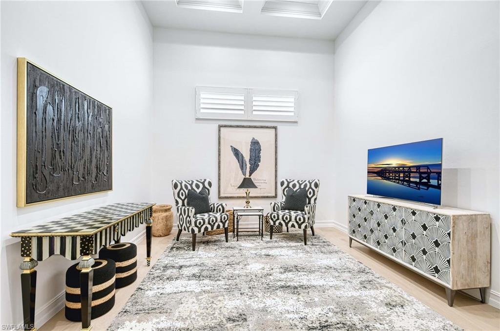 Behind the gates of Bay Laurel Estates, a highly sought-after enclave within Pelican Marsh secured by two manned entries, 8732 Purslane Drive offers a rare blend of elegance and sophistication. Poised on nearly half an acre, the residence features five bedrooms, a den and five and a half baths across 6,650 sprawling square feet of living space. Soaring ceilings and custom finishes create a sense of grandeur, while multiple fireplaces and refined details add warmth. The chef's kitchen, outfitted with Wolf appliances, a butler's pantry and an oversized island, opens to the stunning living and dining areas. Entertaining is effortless with a climate-controlled wine room, illuminated bar and private fitness studio. Outdoors, the resort-style lanai includes a summer kitchen, fireplace, fire pit and electric screens. Surrounded by lush landscaping, a pergola-shaded lounge frames the pool and spa for privacy and relaxation. With a three-car garage, screens and shutters for hurricane protection, and Pelican Marsh amenities including golf, tennis and dining, this residence captures the essence of Naples living.