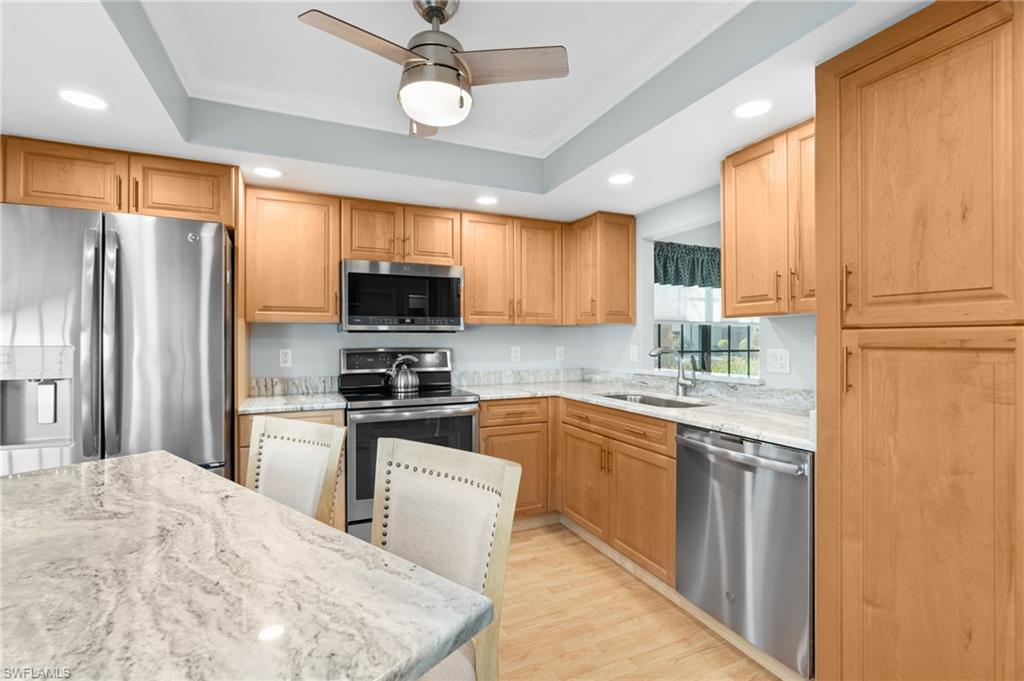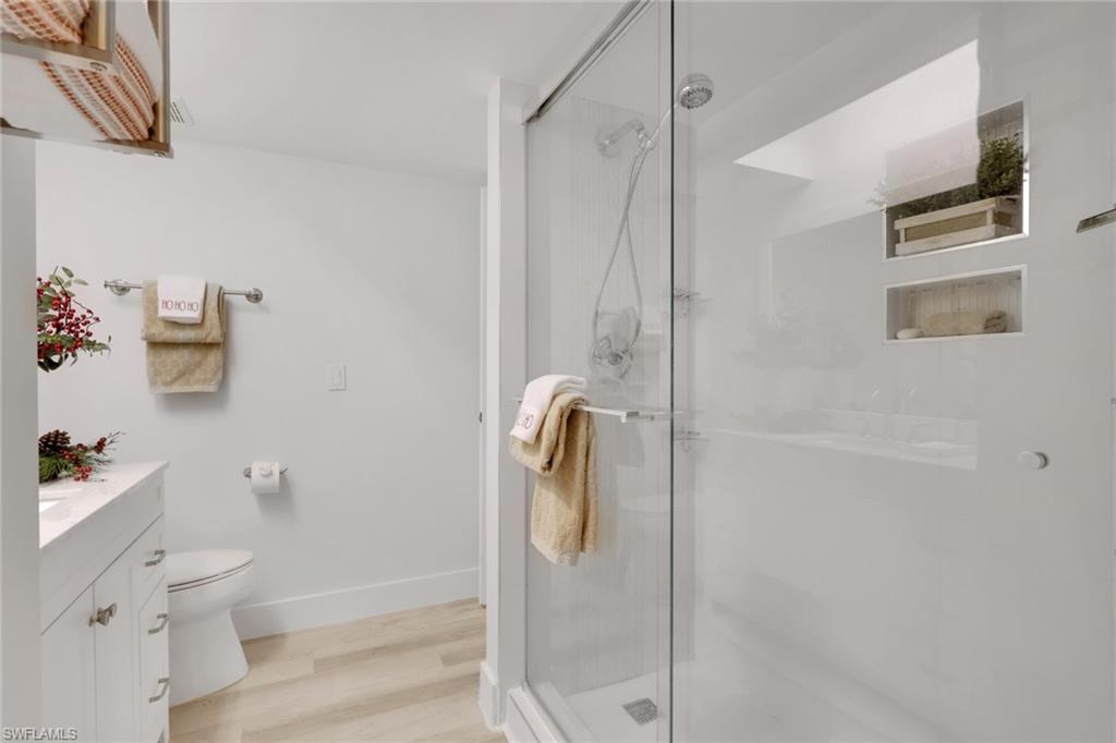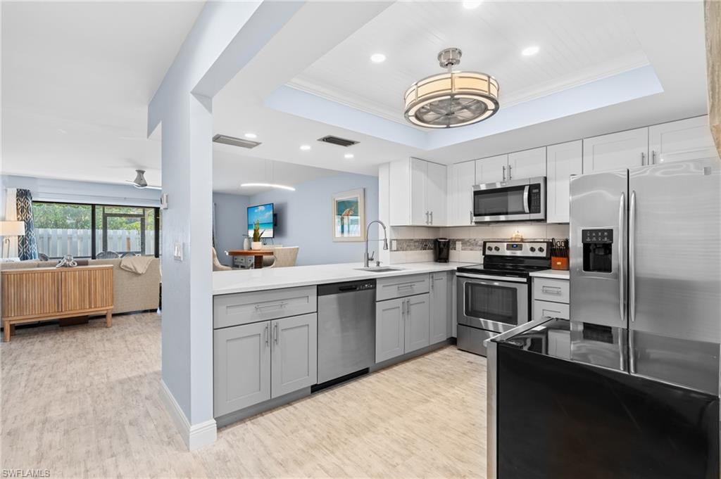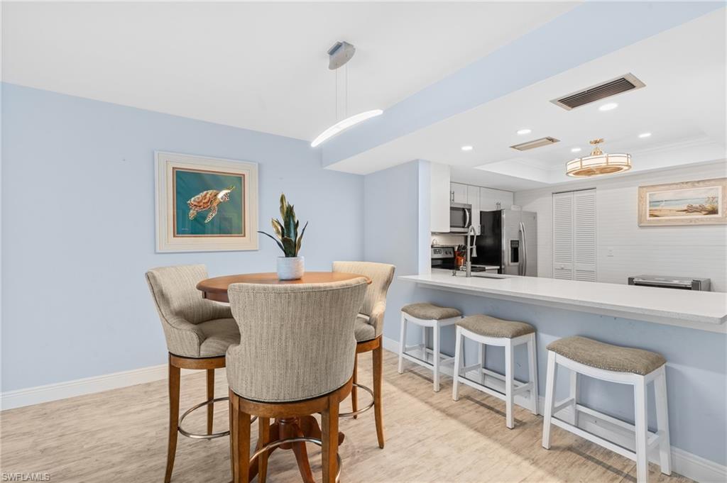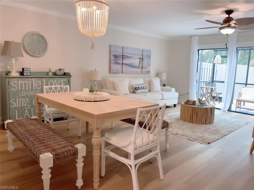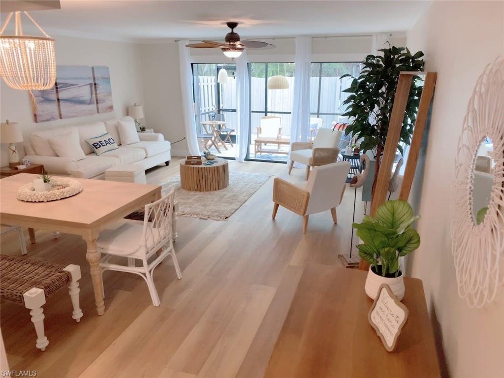 Stunning Coastal-Style Unit in a community that has stunning lake views and centrally located. Used partially as a income generating seasonal rental/owner vacation home. **financials on rental available upon request** This unit has been beautifully remodeled as beach retreat! It offers a rare blend of privacy, charm, and coastal elegance—just over a mile from Naples’ sought-after Vanderbilt Beach, 5th Avenue and Mercato. Step inside to discover- Abundant Natural Light with Expansive windows throughout fill the space with sunlight. Coastal-Inspired Finishes: Newly installed light wood-look flooring and freshly painted walls and 4inch baseboards and trim throughout evoke a serene, beachy ambiance. Updated Kitchen with a modern design, perfect for entertaining or casual dining. Large pantry area and lots of cabinet space. Nice sized dining room area with an open floor plan great for entertaining. The spacious primary suite with an updated bathroom and lots of windows for natural lighting. Master suite has ample closet space! Secondary bedroom is very spacious with ample closet space and an updated full bathroom. Additional perks include a powder room/half bath on the main floor, ideal for guests. Your own private paradise awaits in the fully transformed back lanai/deck area, complete with: Brand-new fencing, Screened in lanai, Freshly updated landscaping, Ample space to relax or entertain. Nestled in the desirable Pelican Ridge community, residents enjoy: Two heated community pools, Low HOA fees, which cover lawn care, landscaping, water, pest control, roof and exterior insurance, and reserves. This unit has a 1 car garage with built in storage and garage opener. Additional parking space in driveway and guest parking. Ample space for storage. Located across from Mercato, you’re minutes from premier shopping, dining, entertainment, and everything Naples has to offer. Vanderbilt beach is just minutes away!