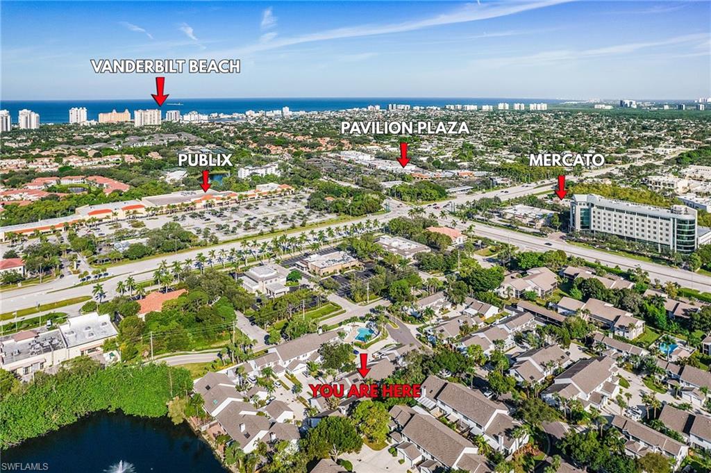 LOCATION, LOCATION, LOCATION! WALKING DISTANCE TO BEACH AND MERCATO! You'll fall in love with this exceptional Naples townhouse deeded as a single family home being sold TURNKEY nestled in one of the MOST SOUGHT after locations. Situated in the highly desirable PELICAN RIDGE community, this 2 bedroom, 3 bathroom home boasts breathtaking natural light cascading in through the newer skylights and CATHEDRAL SOARING CEILINGS. Large screened in private patio. Featuring two generously sized master suites, each with their own en-suite bathroom and ample closet space. Large EAT-IN kitchen, complete with spacious walk in pantry! Plus, with a 1 car attached garage you'll have plenty of space to store all your beach toys and bikes- perfect for the Florida lifestyle! Located within walking distance to the famed Vanderbilt Beach, Naples Ritz-Carlton, dining, shopping, movies and the entertainment district at the Mercato (20 restaurants,Whole Foods). Publix, drugstores and parks across the street! 2 Heated Community pools and LOW HOA's (which include roofs, Exterior Insurance, lawn care) make this the best community for year round, Investment property or seasonal living! Schedule your showing today! Great INVESTMENT!