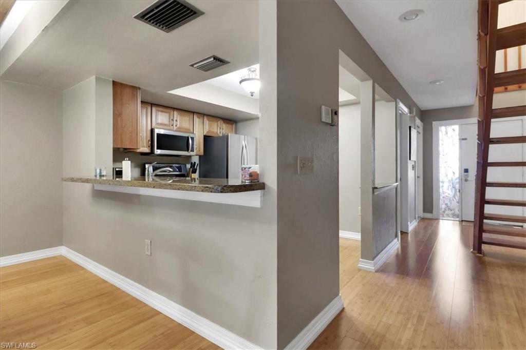 Beautiful Remodeled 2-story townhouse within walking distance to Mercato and Vanderbilt Beach! This is a very private 2 Bedrooms/2.5 Baths unit in the desirable Pelican Ridge. Fully Furnished with stainless steel appliances. Plenty of natural light. LED lights. Luxury vinyl floors in living room and kitchen. Half Bathroom downstairs is completely updated. Upstairs has two separate and spacious bedroom each with their own bathroom. A perfect home to relax and enjoy the summer in SWFL.