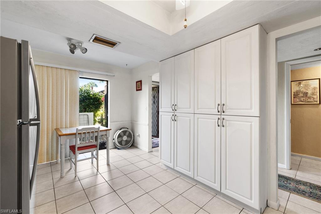 Situated in the serene Pinewoods community of North Naples, this delightful condominium offering approximately 1350 square feet of comfortable living space. Roof is aprox. three years old, brand new water heater, updated LVP flooring and more. This two-bedroom, two-bath residence welcomes you with a bright and airy design and thoughtful amenities ideal for both relaxation and entertaining. Step into a well-appointed kitchen that combines functionality with cozy charm, featuring a generous pantry and a breakfast nook, perfect for casual meals. Adjacent, the dining area offers a built-in bar, making it a great gathering spot for friends and family. The open layout flows seamlessly to the living spaces, all bathed in natural light, creating an inviting ambiance throughout. The primary bedroom is a restful retreat, complete with a walk-in closet and sliding doors that lead to the screened lanai with tranquil lake view. The guest suite ensures comfort and privacy, thoughtfully designed with a sliding door separating the bedroom and bathroom. The community boasts two pools, a relaxing spa, and both tennis and pickleball courts, ensuring endless opportunities for recreation and socializing. The low density setting means fewer crowds and more tranquility. Plus, with the beach just under two miles away, along with quick access to shopping, fine dining and downtown Naples, you're perfectly positioned to enjoy coastal living at its finest.