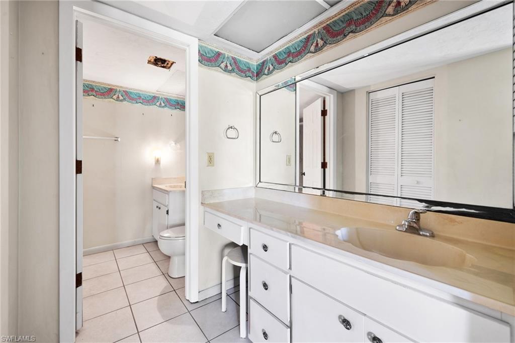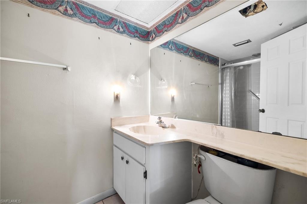 Discover unparalleled value in this spacious 2-bedroom, 2-bathroom condo, perfectly situated in a desirable North Naples location. At 1,242 sq ft with a functional split floor plan, it offers both privacy and comfortable living. Enjoy serene lake views from your lanai and living areas, creating a peaceful backdrop for daily life. The master suite is a true retreat, featuring a private en-suite bathroom, a large walk-in closet, and more stunning lake views. The second bedroom provides a private haven for guests on the opposite side of the condo, complete with its own bathroom and a convenient pocket slider. A full-size laundry room adds to the home's comfort and practicality. Step outside to a beautifully maintained community offering lush tropical landscaping, an inviting pool, and a spacious green area with benches, perfect for a quiet picnic or soaking in the tranquility. For those who love to stay active, enjoy the newly added and very popular pickleball courts. Enjoy easy access to Naples' world-renowned pristine beaches, with the closest beach only a few short miles away. With an abundance of alternative beaches, shopping, dining, and entertainment all nearby, this is one of the best values in all of Naples! Priced significantly below recent sales and current listings, this condo is a fantastic opportunity for investors, first-time homebuyers, or anyone seeking an incredible deal. While it awaits your personal updates, its solid construction and functional layout offer a perfect canvas for your dream home. Don't miss this chance to secure a valuable piece of Naples paradise and transform it into your perfect home in a truly sought-after North Naples location!