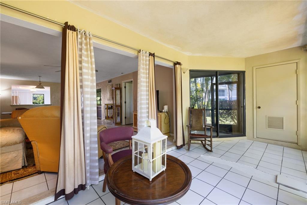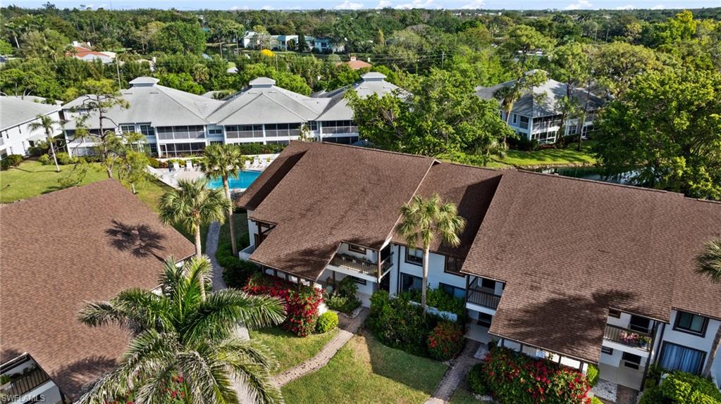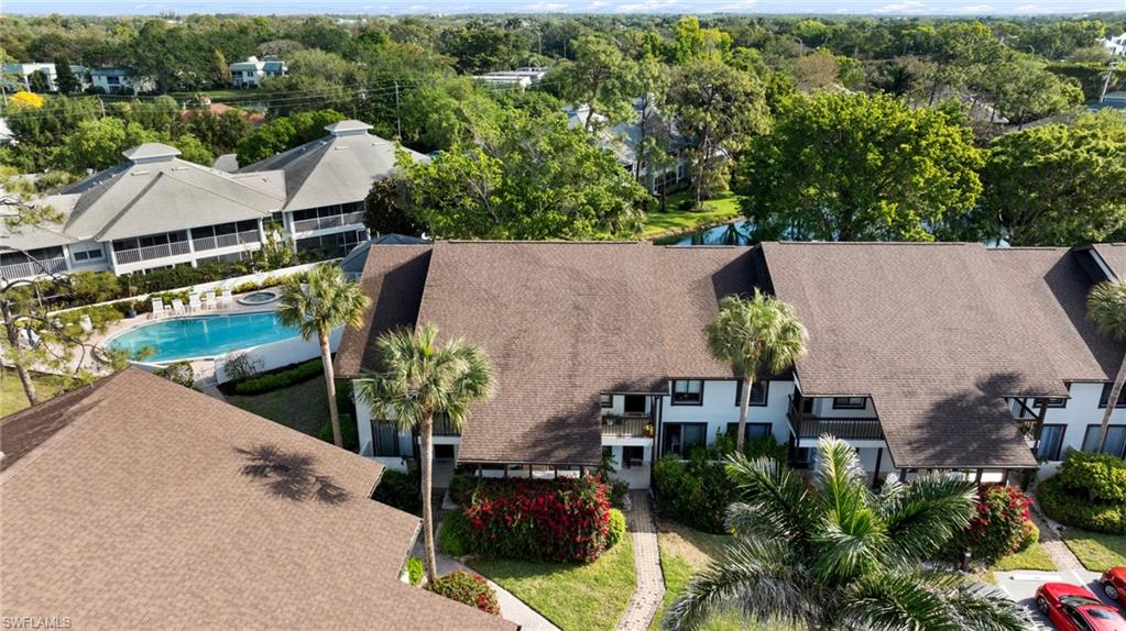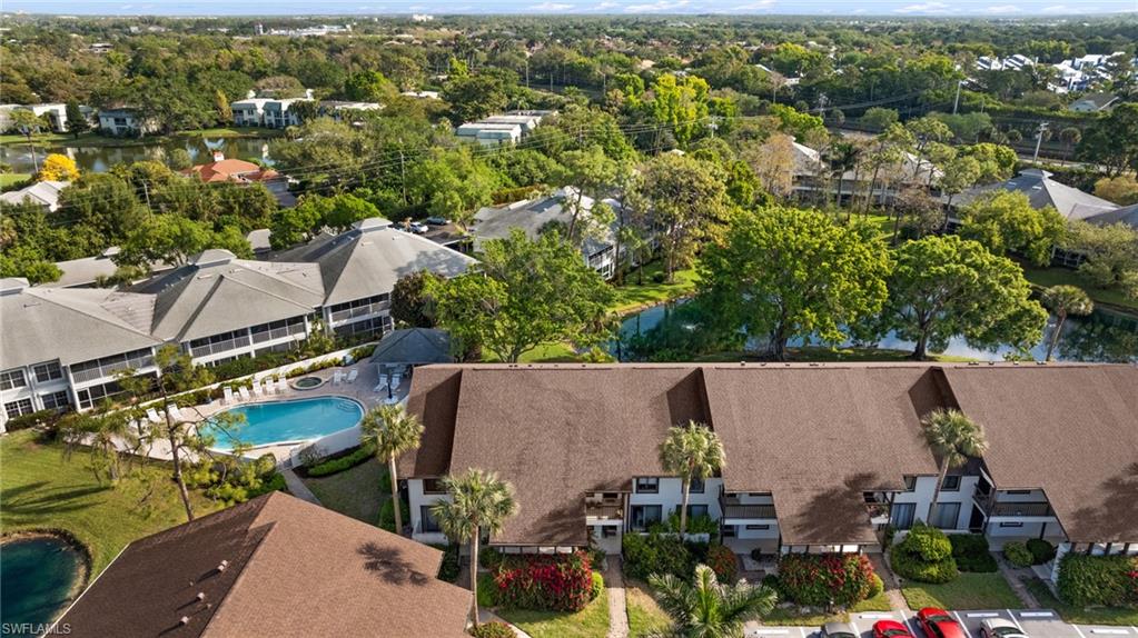 Location, location! 2BD/2BA 2nd floor end unit condo with lake view located in the heart of Central Naples! End units have three more windows than an interior units for additional light. Large, beautifully updated kitchen with granite counters, stainless appliances, eat-in area and lots of storage. Luxury vinyl flooring in entry area and kitchen. Enclosed tiled lanai has sliding glass doors for year round use. There are plantation shutters on the kitchen and living area windows. Extra storage area off of the lanai. New AC in 2024. Front patio area. Nice community with mature landscaping, two pools and tennis courts. Excellent location close to Naples beaches, downtown Naples, and just minutes to a wide variety of shopping, dining and entertainment options.