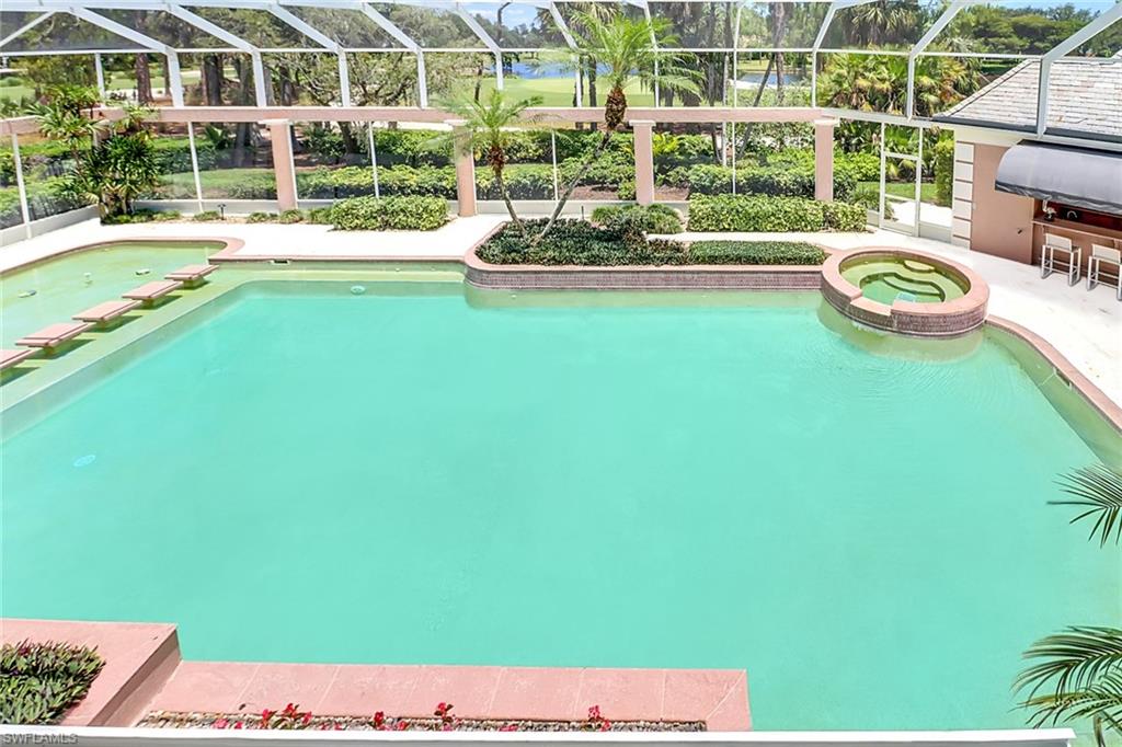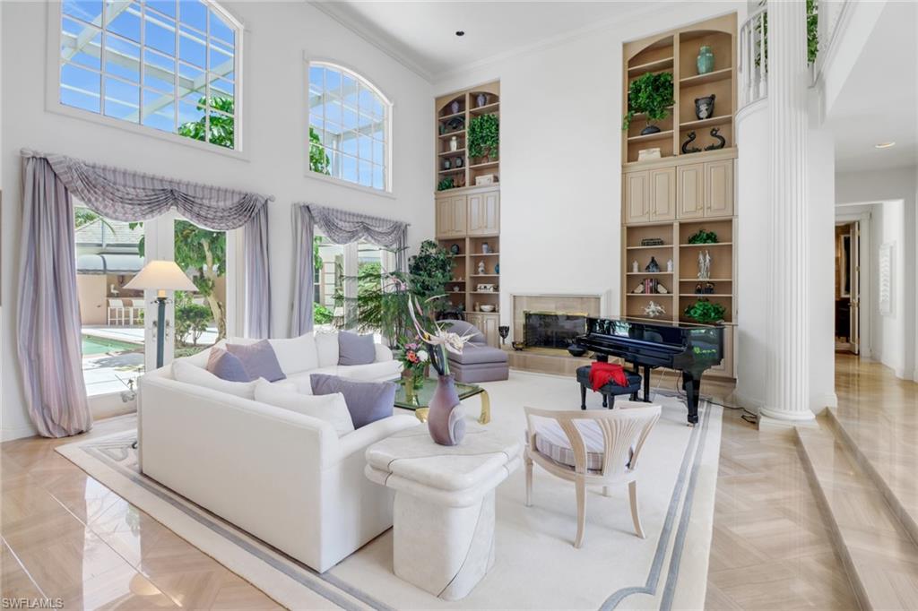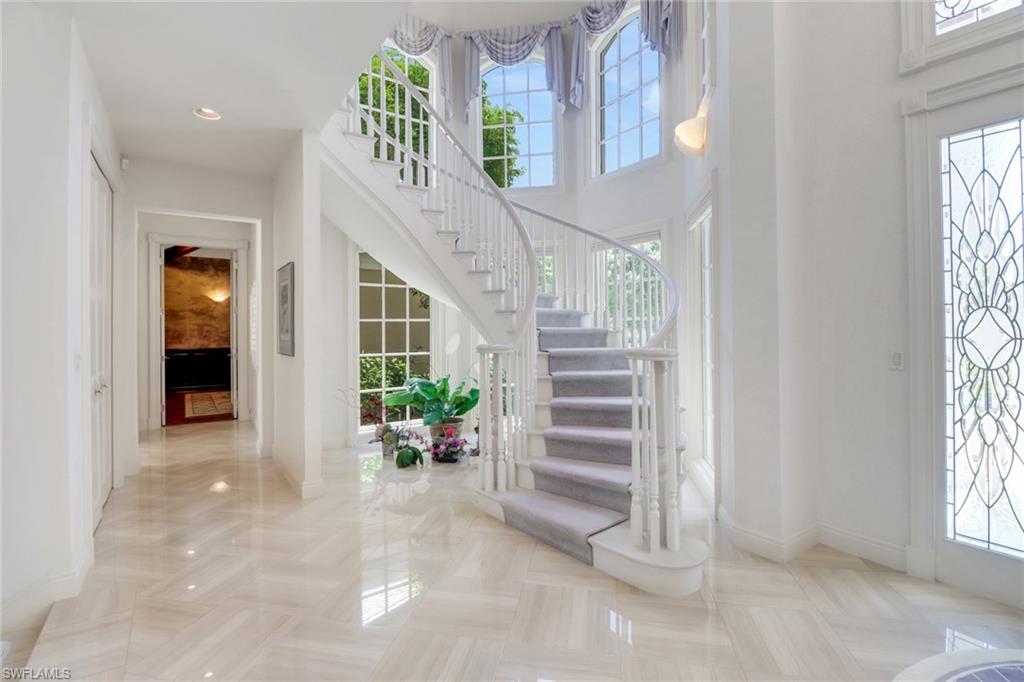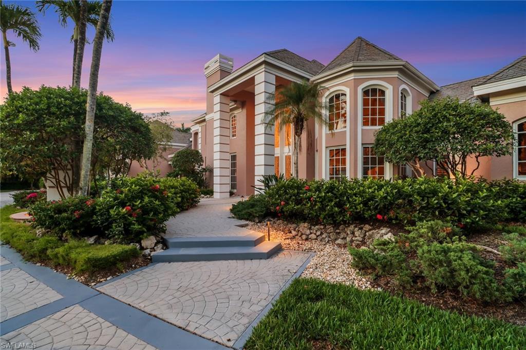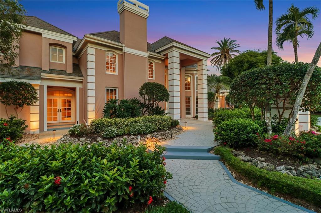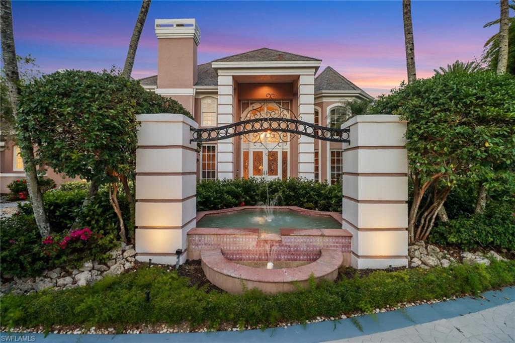 Welcome to an extraordinary residence...a masterfully renovated Classic House infused with modern elegance and Florida charm. Ideally positioned just minutes from the vibrant dining, shopping, and entertainment of North Naples, this home offers unrivaled convenience and sophistication. From its majestic facade, the expansive front porch and balcony provide seamless outdoor living space, matching the rear structures that overlook exquisite views of the pool, the lake, and a lush golf course. The interior boasts a sophisticated foyer with a dramatic staircase and mezzanine, setting the stage for effortless entertaining alongside an exquisitely decorated bar, a chic living room, and a luxurious yet welcoming dining room. Gourmet chefs will delight in the no-expense-spared kitchen flaunting high-end features such as B&B Custom Cabinetry, dual islands, a farm sink, White Carrara marble countertops, a Thermador range, Vent A Hood range hood, a Sub Zero integrated refrigerator, plus two under-counter refrigerator drawers and a beverage center, while preserving stunning original elements. Elevate to the master suite spanning 1,300 sq ft, where a reimagined master bath and a coveted closet await behind elegantly framed French doors that open to the front and rear balconies for panoramic vistas. On the third floor, guest quarters promise privacy and spacious accommodations. Experience timeless elegance and modern living in a location that offers everything at your doorstep. Indulge in this remarkable listing today!