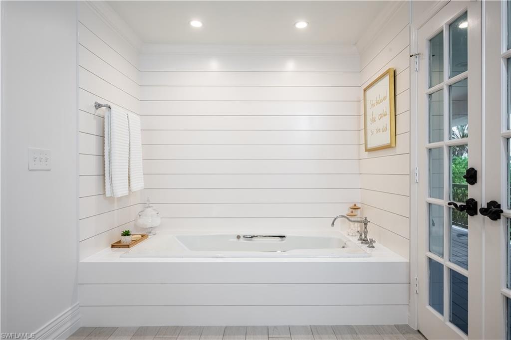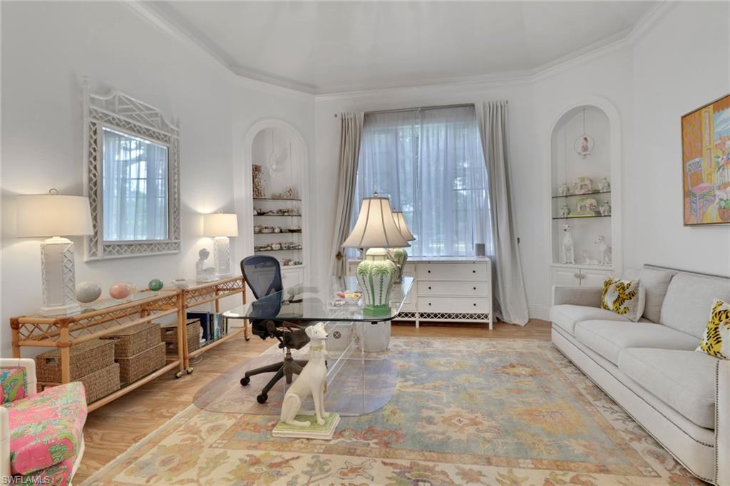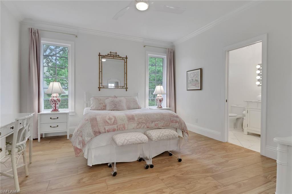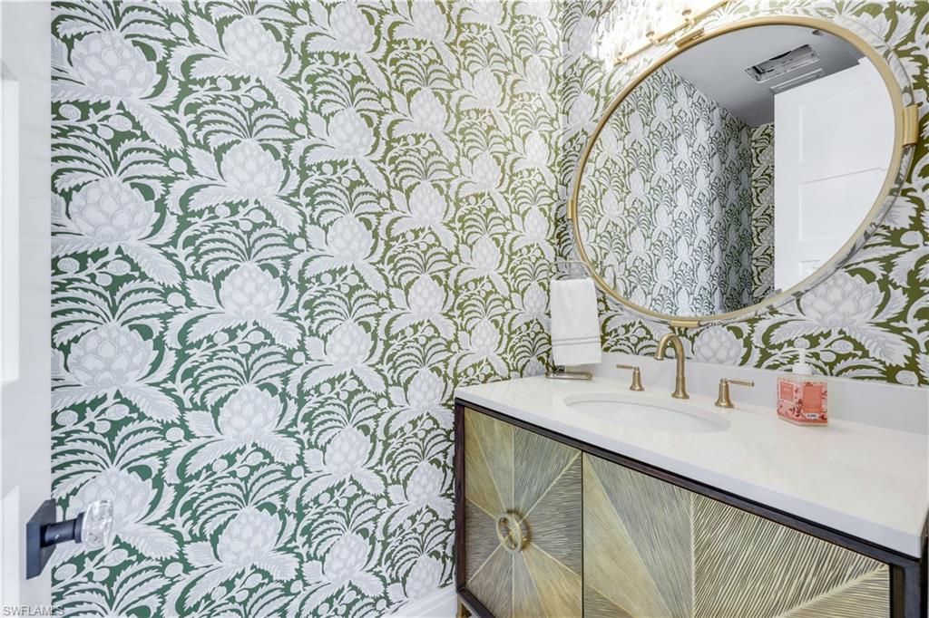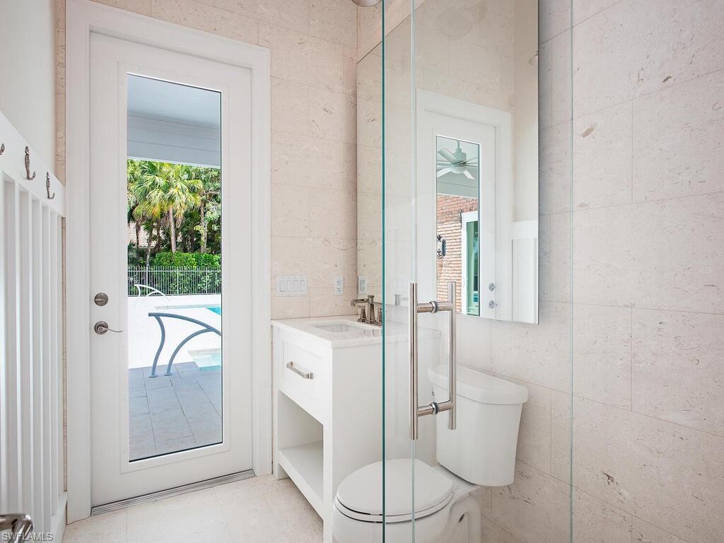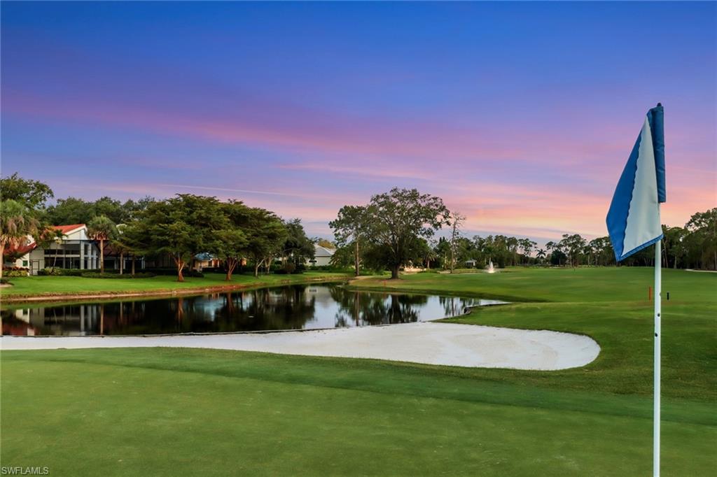 Welcome to an extraordinary residence...a masterfully renovated Classic House infused with modern elegance and Florida charm. Ideally positioned just minutes from the vibrant dining, shopping, and entertainment of North Naples, this home offers unrivaled convenience and sophistication. From its majestic facade, the expansive front porch and balcony provide seamless outdoor living space, matching the rear structures that overlook exquisite views of the pool, the lake, and a lush golf course. The interior boasts a sophisticated foyer with a dramatic staircase and mezzanine, setting the stage for effortless entertaining alongside an exquisitely decorated bar, a chic living room, and a luxurious yet welcoming dining room. Gourmet chefs will delight in the no-expense-spared kitchen flaunting high-end features such as B&B Custom Cabinetry, dual islands, a farm sink, White Carrara marble countertops, a Thermador range, Vent A Hood range hood, a Sub Zero integrated refrigerator, plus two under-counter refrigerator drawers and a beverage center, while preserving stunning original elements. Elevate to the master suite spanning 1,300 sq ft, where a reimagined master bath and a coveted closet await behind elegantly framed French doors that open to the front and rear balconies for panoramic vistas. On the third floor, guest quarters promise privacy and spacious accommodations. Experience timeless elegance and modern living in a location that offers everything at your doorstep. Indulge in this remarkable listing today!