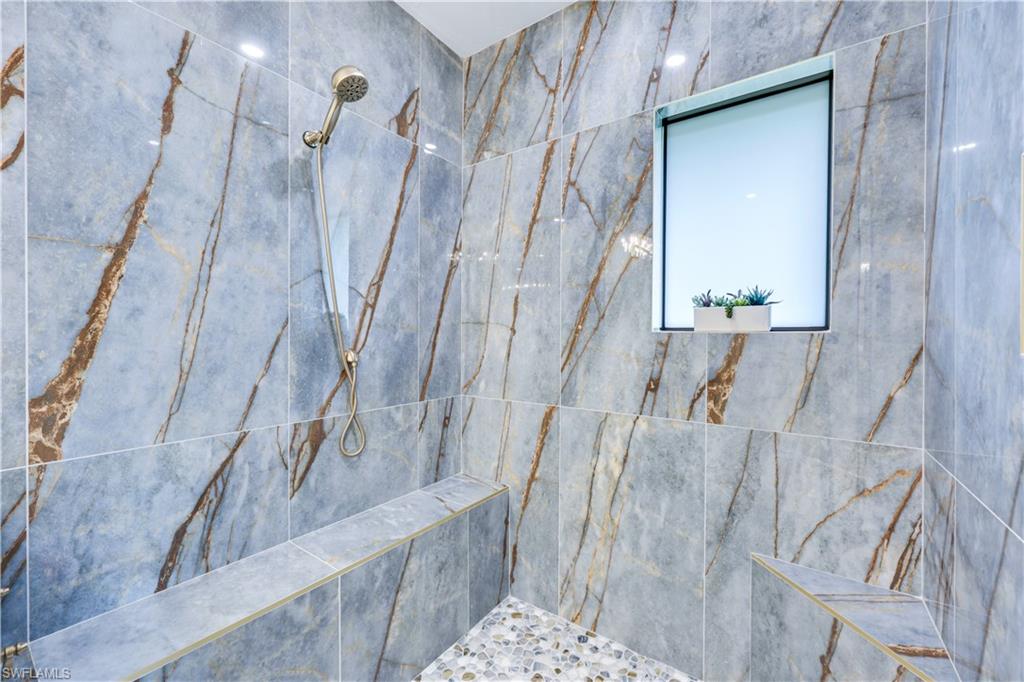 NEW ROOF AND IMPACT WINDOWS PLUS have been upgraded in this home! Welcome to 13087 Pond Apple Drive, a stunning, fully renovated estate in the prestigious Quail Creek community of Naples. Nestled on an oversized 1.06-acre lot, this contemporary residence offers the perfect blend of modern sophistication and relaxed Florida luxury, with sweeping golf course and sunset views. Step inside to find an impressive open layout highlighted by soaring ceilings, marble floors, and abundant natural light. The formal living and dining rooms set the tone for elegant entertaining, while the chef’s kitchen takes center stage with custom cabinetry, Thermador appliances, and a massive leathered quartz island. The adjoining family room flows seamlessly through pocketing glass doors to the outdoor living space, creating a true indoor-outdoor retreat. Outside, a resort-style lanai invites you to relax and unwind with a heated saltwater pool and spa, a gas fire pit, and generous deck space overlooking the fairway — the perfect backdrop for both quiet evenings and lively gatherings. The primary suite is a private sanctuary featuring white oak flooring, dual walk-in closets, and a spa-inspired bathroom with a freestanding soaking tub, quartz vanities, and dual rain shower heads. Three additional guest bedrooms, each with tranquil views, provide ample space for family or visitors, while the den offers flexibility for a home office, media room, or library. Additional highlights include a three-car garage, circular driveway, impact-resistant windows and doors, a metal roof, and sleek, modern finishes throughout. Residents of Quail Creek enjoy access to two walkable 18-hole golf courses, a full clubhouse with dining, fitness center, tennis, and more — all within a secure, gated community just minutes from Naples’ beaches, shopping, and fine dining. This exceptional property combines timeless design, privacy, and resort-style living in one of Naples’ most sought-after communities.