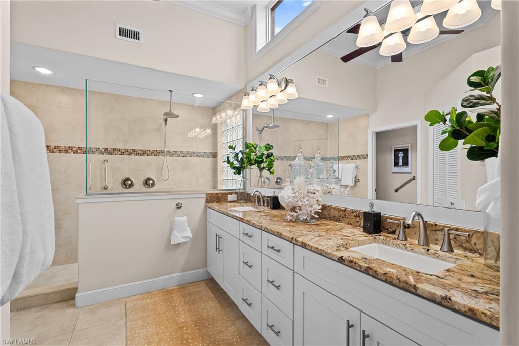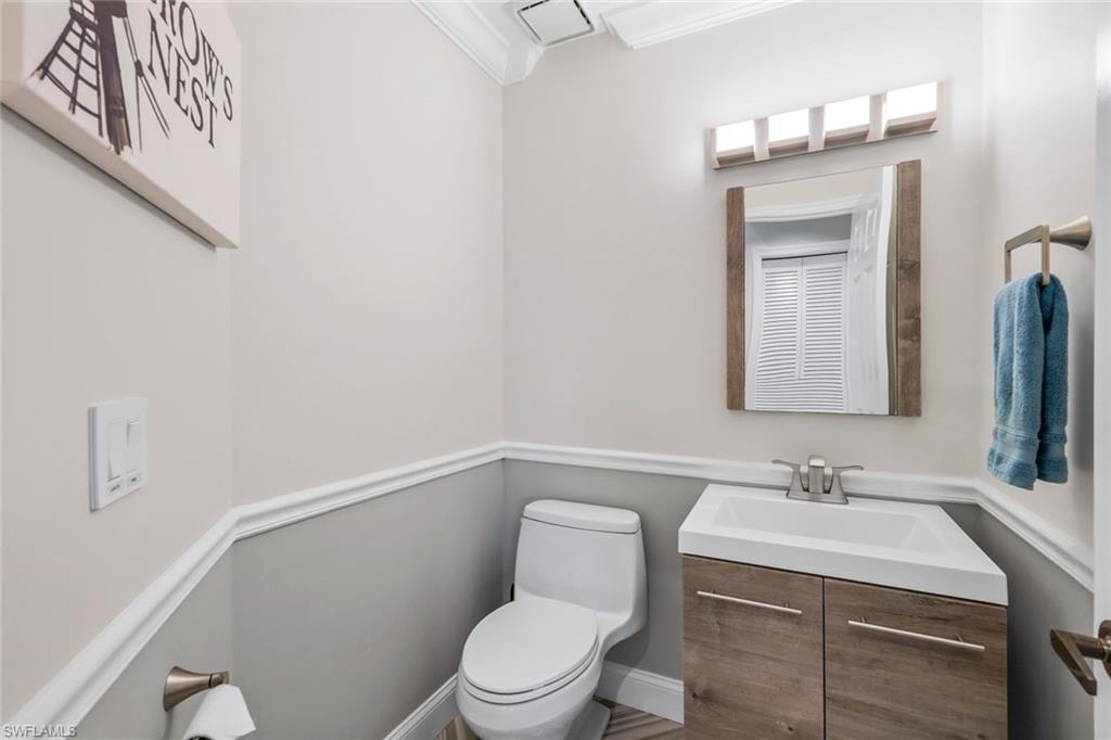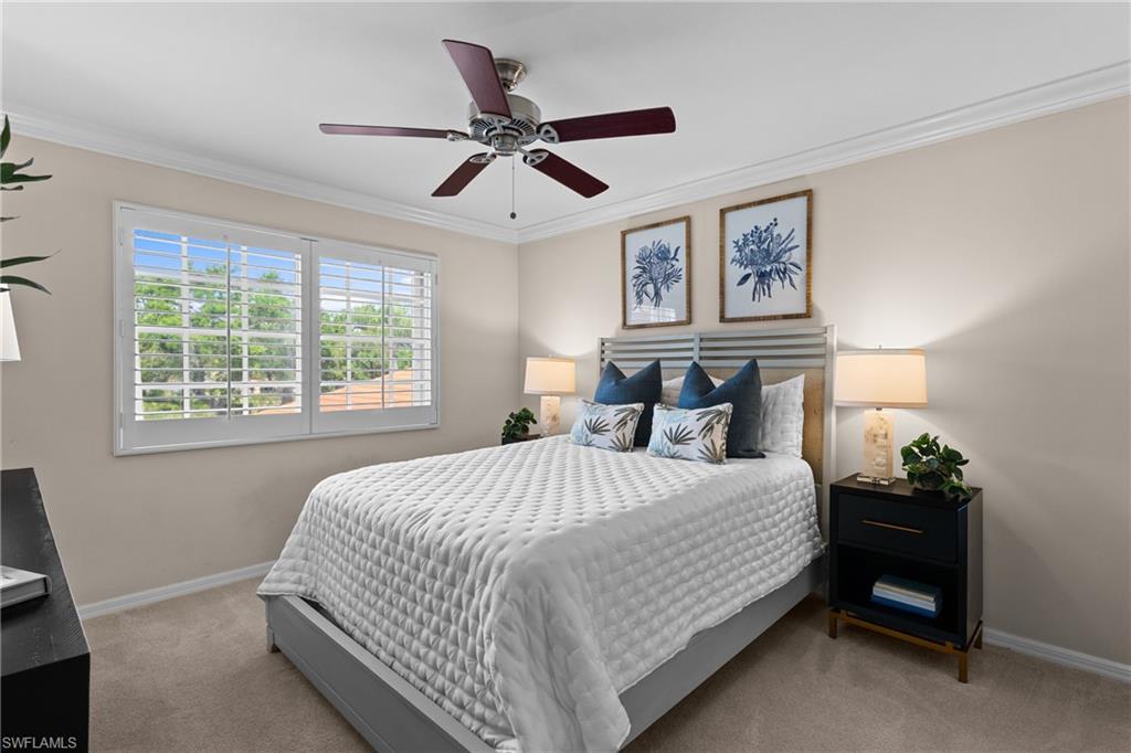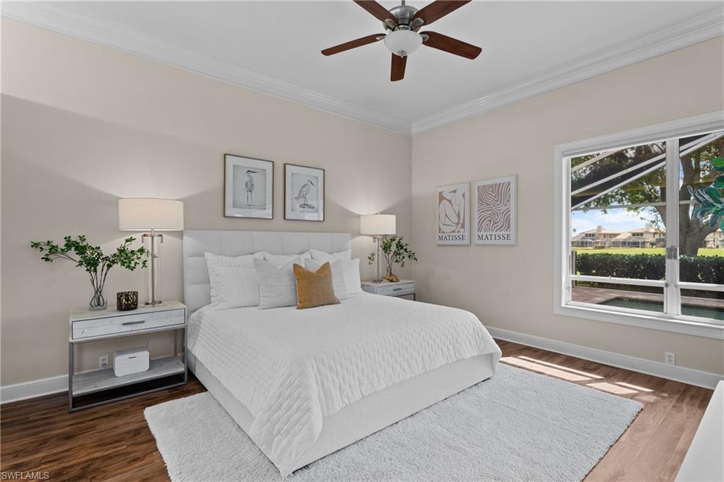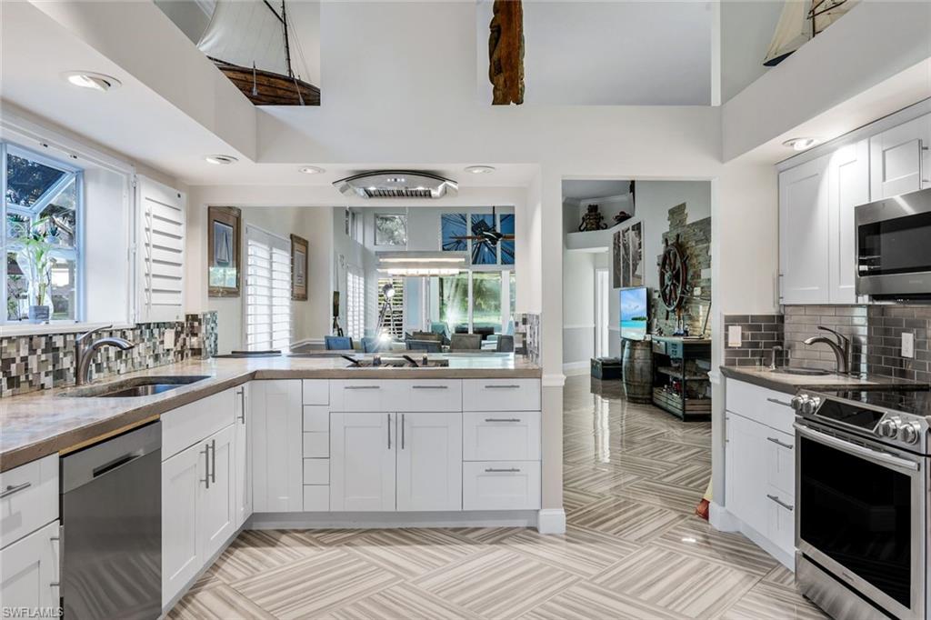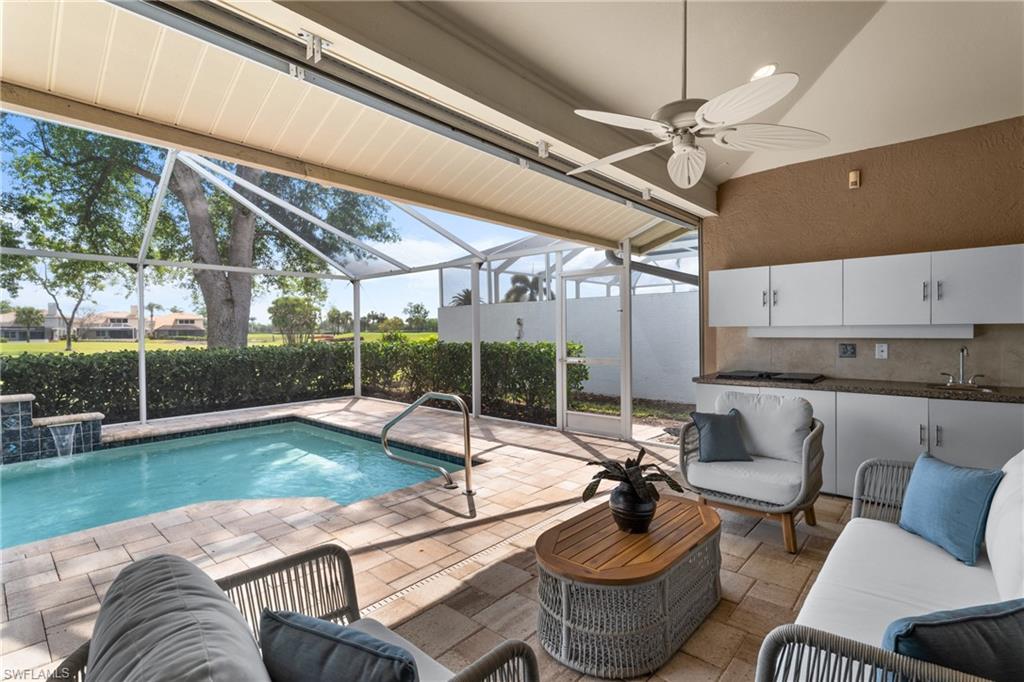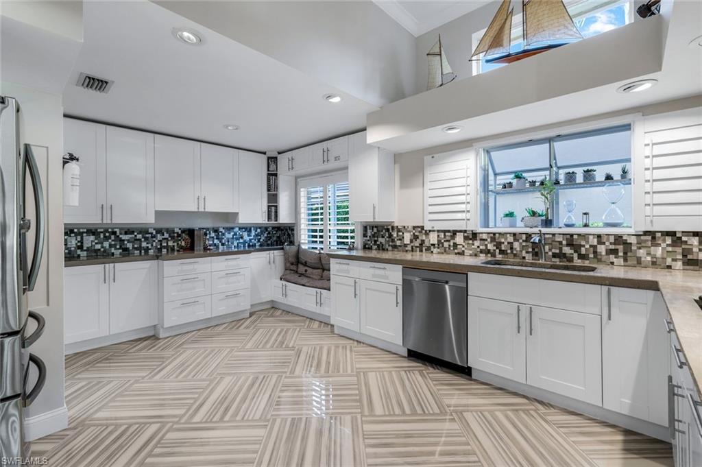 Can be purchased turnkey furnished!!!! Welcome to The Crow’s Nest, the coolest home in Quail Creek Village, and easily one of the most unforgettable homes in all of Naples. Strategically redesigned and rebuilt over nearly eight years, this 3 bedroom, 2.5 bath residence is the result of a true labor of love, combining contemporary chic design with a luxurious resort like atmosphere. One of a kind details have been carefully incorporated to create the ultimate lifestyle, starting in the modern chef's kitchen. Poured in place, thick concrete countertops, an induction hibachi cooktop with its own advanced vent hood, Samsung appliances, and extraordinary amounts of cabinetry check every box for both design and function. The open concept living space, made possible by demolishing and reconfiguring the original floor plan, is perfect for all sorts of gatherings and relaxed everyday living. Natural light floods the great room through plantation shutters, while crown molding and diagonally laid tile highlight the home’s blend of timeless and trendy elements. The newly built western facing addition is your canvas for a potential media room, stunning home office, or to be used how it is currently as a conversation sunroom where laughs are shared and views are enjoyed; this space can also be closed off from inside through French doors for true ‘al-fresco’ living. Onto the lakeside outdoor paradise, the tiled patio is fully loaded with furnishings, a gas firepit, a motorized sun awning, and electric shades and screens with sunsets even more remarkable than the gorgeous interior. The owner’s private sanctuary suite features a spa inspired bath with dual rain showerheads, a soaking jet tub, floor to ceiling tilework detail, a European style bidet, and even an electric fireplace. Guests enjoy equally inviting accommodations with two bedrooms and an eloquent bathroom setup with double showers, scalloped accent wall tile, a floating vanity, and ample closet space. The renovation’s new golf cart garage provides room for two cars and a golf cart as well as the home’s extended paver driveway. The Crow’s Nest comes complete with curated furniture, original one of one artwork, decor, kitchenware, televisions, fireplaces, and yes, even the golf cart. Exclusively located within the Quail’s Nest enclave of Quail Creek Village, you will enjoy access to a private cabana and pool steps away which only 53 properties can take advantage of. Homeowners also have the privilege of Social Membership included in the fees with unlimited summer golf, reciprocal play, bocce, tennis, pickleball, and social events at the redone clubhouse. With a proven history as a seasonal rental, this could also be an exceptional opportunity for investors seeking upside potential. Bring your clothes, toothbrush, and step into an unparalleled, resort like lifestyle. EXTENSIVE UPGRADE LIST IN SUPPLEMENTS!