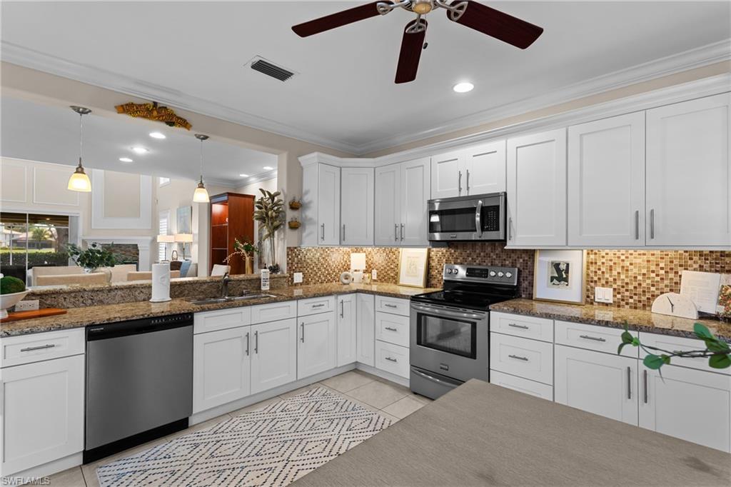 RUN, DON'T WAIT!! One of the best deals in all of Naples! This beautifully refreshed two story Aberdeen model is priced to move and packed with updates you'll love. Offering unobstructed golf course views through an oversized picture screen cage (2018), this home is a light and bright retreat ready for immediate enjoyment. The sprawling floorplan features four generously sized bedrooms, three FULL bathrooms (a rare find in the community), and a versatile loft for numerous lifestyle possibilities. Fresh interior and exterior paint add a clean and elegant look while the remodeled chef's kitchen with new custom wood cabinetry, quartz countertops, and trendy tile floors impress. The first floor owner's suite boasts complete privacy and luxury with two closets, new cabinets, countertops, and fixtures, as well as volume ceilings. Wake up with your private pool a few steps away, alongside a completely pavered lanai, covered entertainment space, and an abundance of room for lounging and sun bathing. The newer roof (2019) and A/C (2023) and new Epoxy garage floor top off a list of BIG TICKET upgrades for the new owner. Quail Creek Village homeowners enjoy a Social Membership included in the HOA fees while affordable golf dues are optional and available with no initiation fee or waitlist. Deals like this have not been seen for years, act fast!