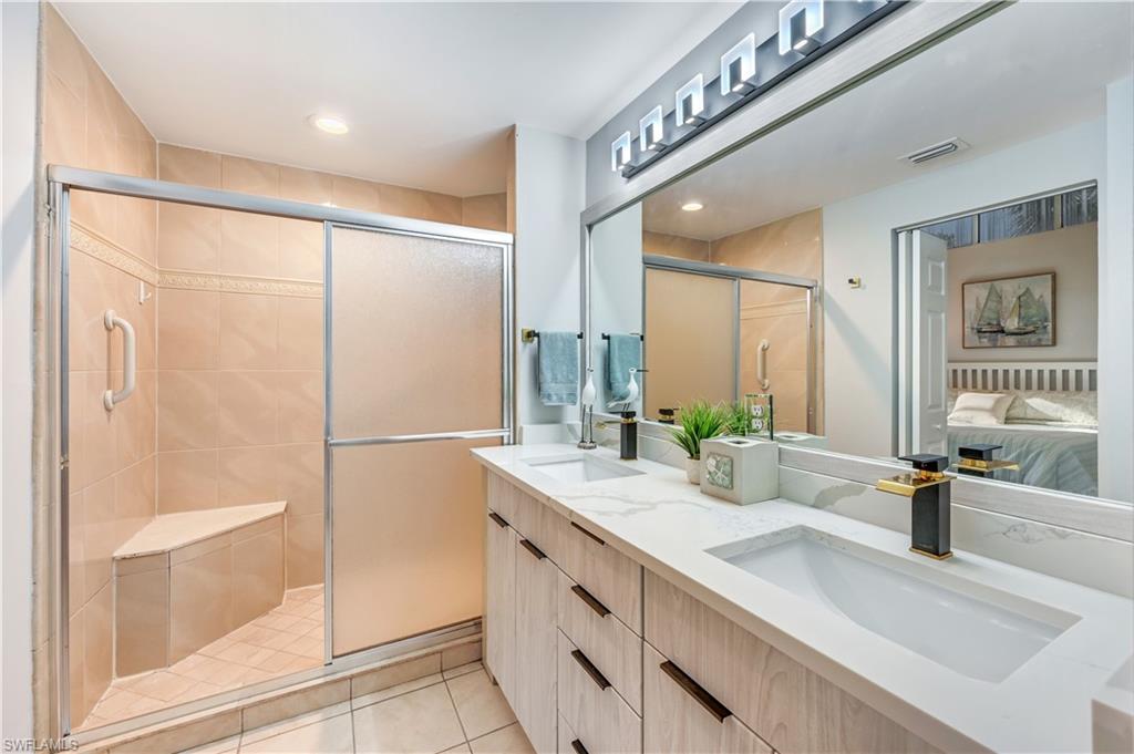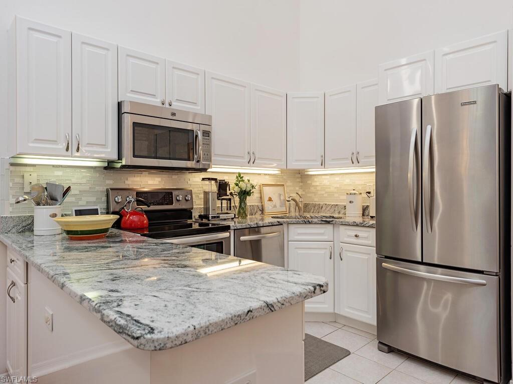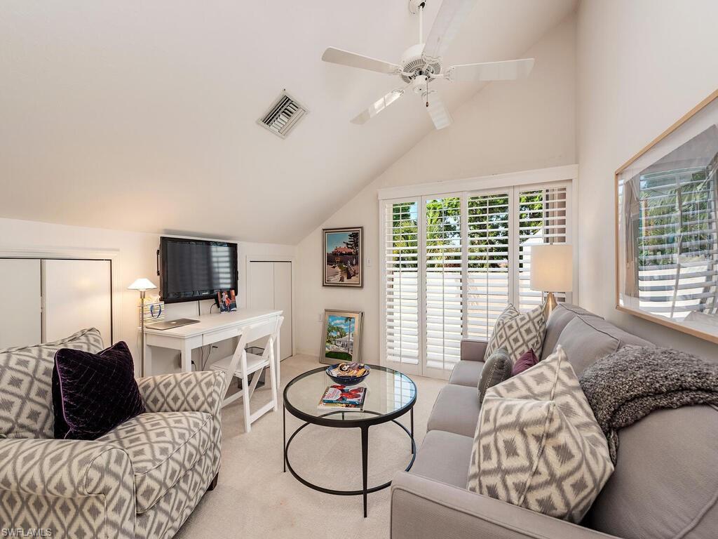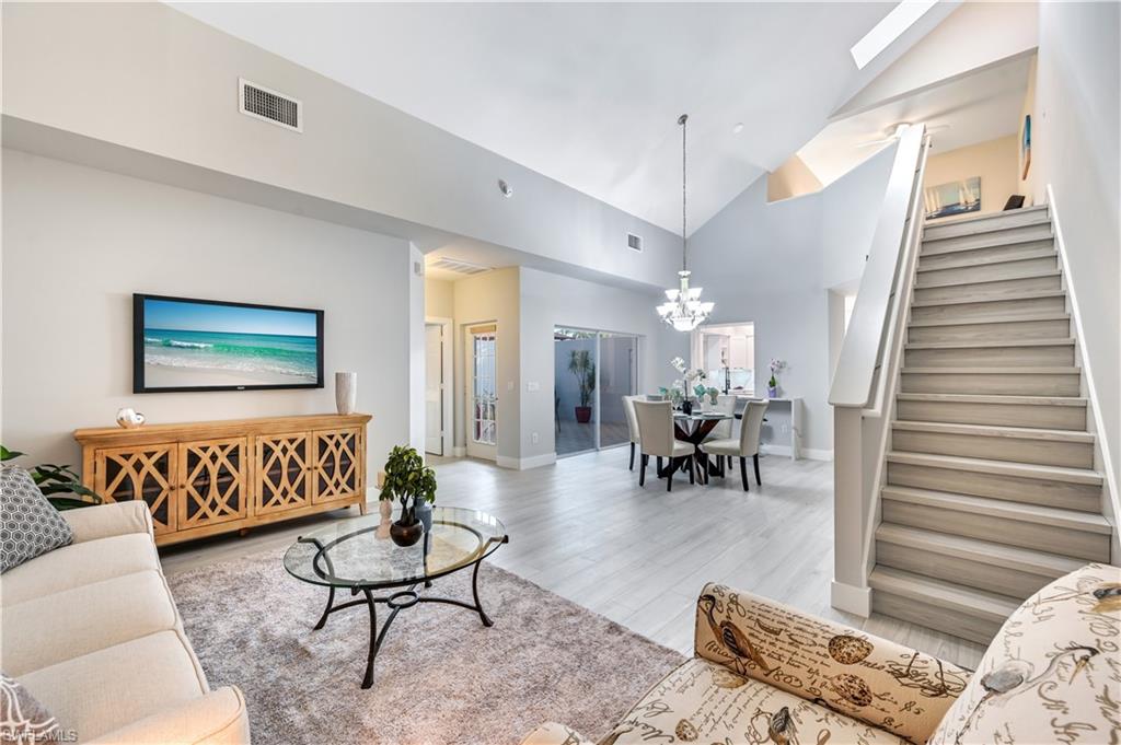 Welcome to this beautifully remodeled villa in the heart of North Naples, just 10–15 minutes from the beach, Mercato, Trader Joe’s, and with easy access to I-75 and SWFL International Airport. This 2-bedroom plus den, 2-bath home offers thoughtful upgrades and a flexible floor plan perfect for both relaxing and entertaining. The kitchen opens up to the living and dining areas, featuring an eat-up granite breakfast bar. Two skylights and cathedral ceilings fill the home with natural light all day long. The master suite includes a cozy loft—ideal for an office or extra storage. Upstairs, you’ll find a den that can serve as a home office or hobby room, complete with extended storage cupboards. Step outside to enjoy not one but two patios: a screened-in area downstairs for breezy evenings and a large private sun deck upstairs—perfect for sunbathing or sunset views. This villa has been smartly modified so guests can access the bathroom directly from the living area, adding convenience and privacy. Additional features include brand-new flooring, a recently replaced AC (2024) and a spacious 2-car attached garage. The community offers a large lap pool, tennis courts, and more—all in a serene North Naples setting.