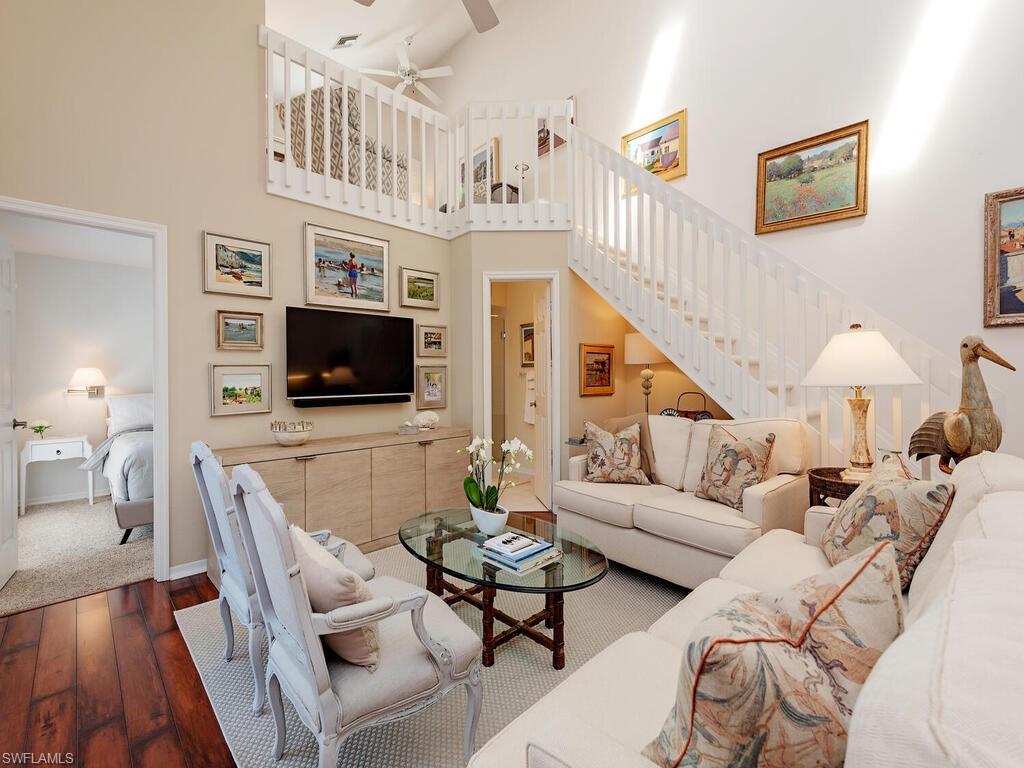 Step into this beautifully updated two-story residence in Quail Woods Courtyards, where soaring ceilings, abundant natural light, and modern finishes create an inviting sense of space from the moment you walk in. The living room feels grand and uplifting with its high ceilings and bright, open ambiance, complemented by stylish flooring that enhances the home’s contemporary appeal. The layout features a spacious loft perfect for an office, media space, or additional lounge area, while the well-appointed bedrooms offer comfort and privacy. A huge screened lanai expands your living space outdoors, providing a peaceful retreat ideal for relaxing or entertaining. Set within the charming community of Quail Woods Courtyards in North Naples, residents enjoy a low-maintenance lifestyle with a beautifully maintained environment, a serene lake with a fountain, and access to a sparkling community pool and tennis courts. Ideally located just minutes from shopping, dining, top-rated schools, and Naples’ world-famous beaches, this home blends style, convenience, and the relaxed Florida lifestyle all in one.