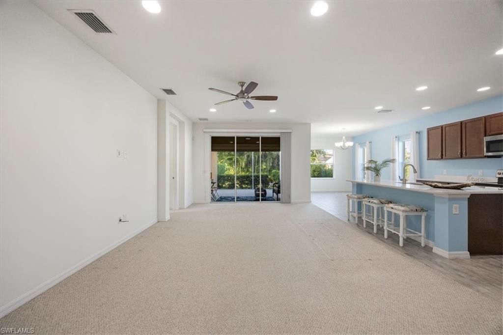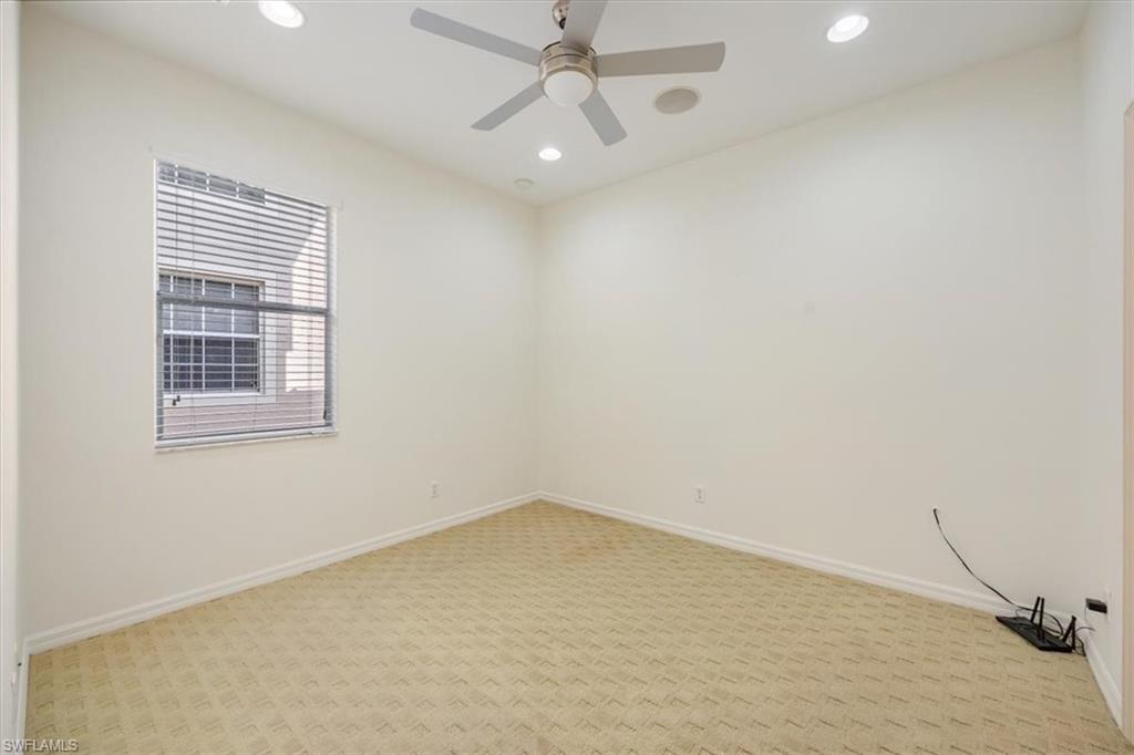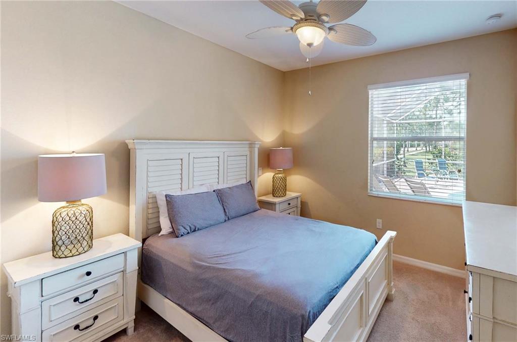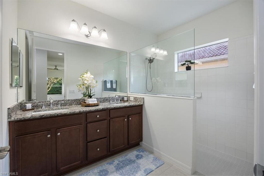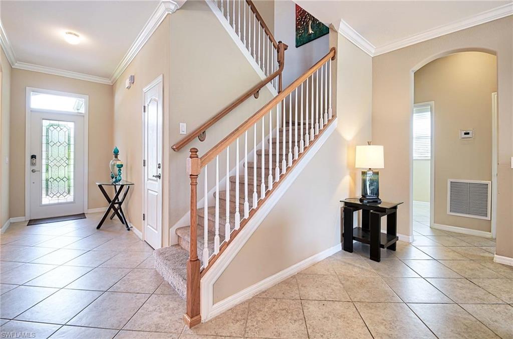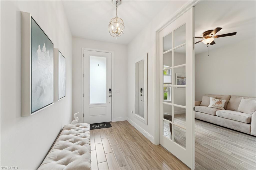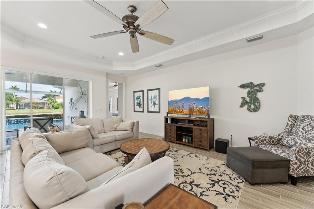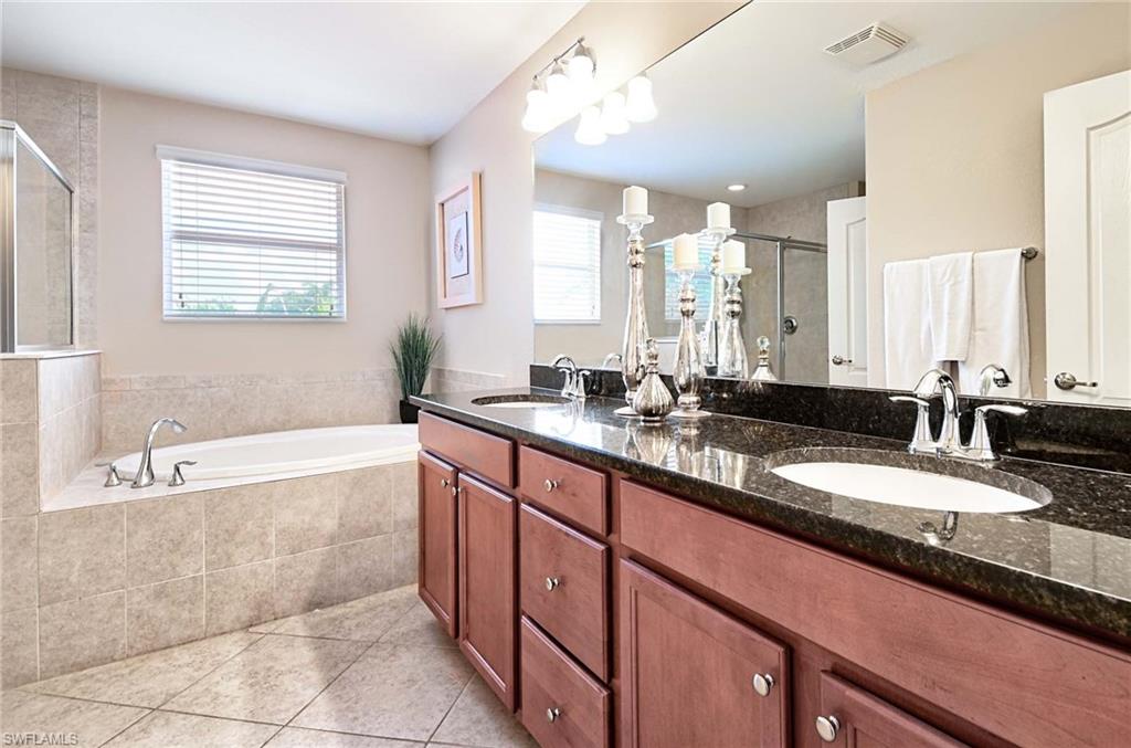 This home offers the ideal blend of comfort, convenience, and resort-style living in Naples. Built in 2014, this 3 bedroom, 3 bath with a den offers a desirable split floorplan, 2 car garage, and a pond view from the screened lanai. Located in the sought-after gated community, Reflection Lakes of Naples, which offers low HOA fees, no CDD and flood insurance is not required. The open design features tile flooring throughout and numerous updates, including a kitchen backsplash, crown molding, fresh paint, garage fan with temperature control, new HVAC (2023), new microwave (2024), new dishwasher (2025). Additional blown in insulation in all attic spaces and pest control maintenance in place. The master suite includes a luxurious bath with a soaking tub, separate shower, and double sink vanity. One guest bedroom features its own ensuite, while the den comes with a built in desk area, and double twin Murphy bed system-perfect for extra guests. Additional highlights include, storm protection including hurricane bracing on garage door, and loft storage in garage in addition to attic storage. Great rental potential with 30 day minimum 3 times a year. Community amenities include a resort style pool, kiddie pool, clubhouse, fitness center, library, bocce ball court, and a vibrant social calendar. Pet friendly too! Perfectly located near Marco Island and 5th Avenue in Naples, with dining, grocery stores and shopping close by. Move in ready.