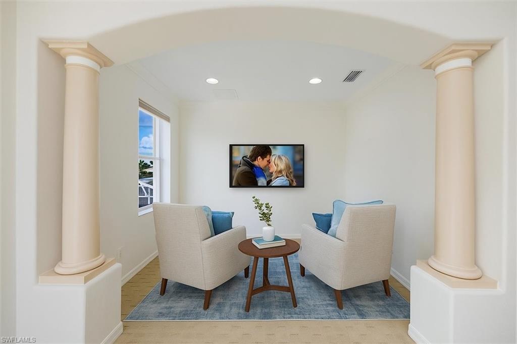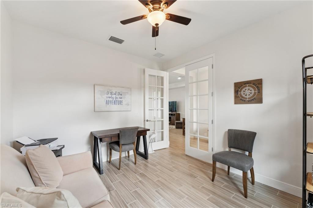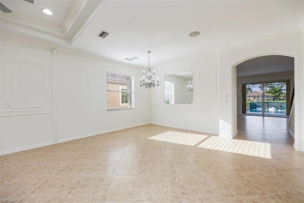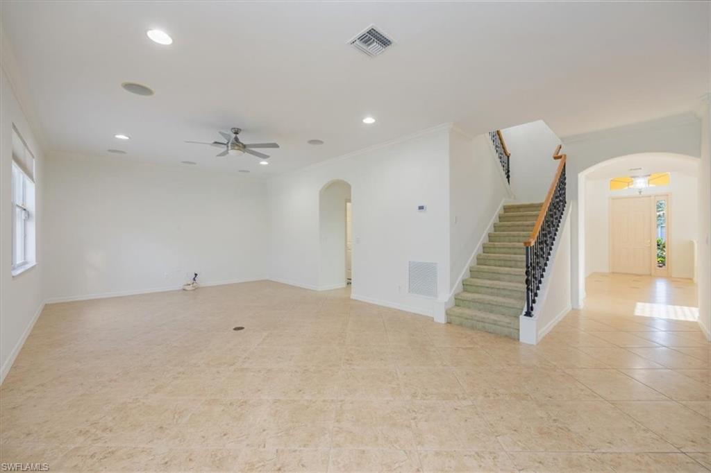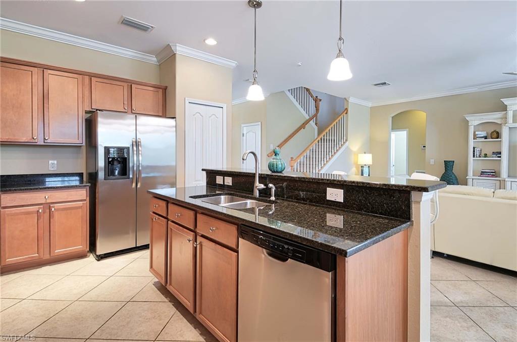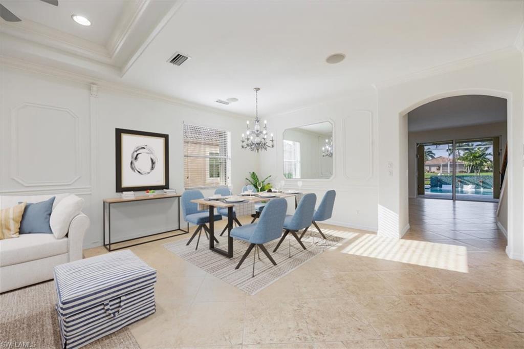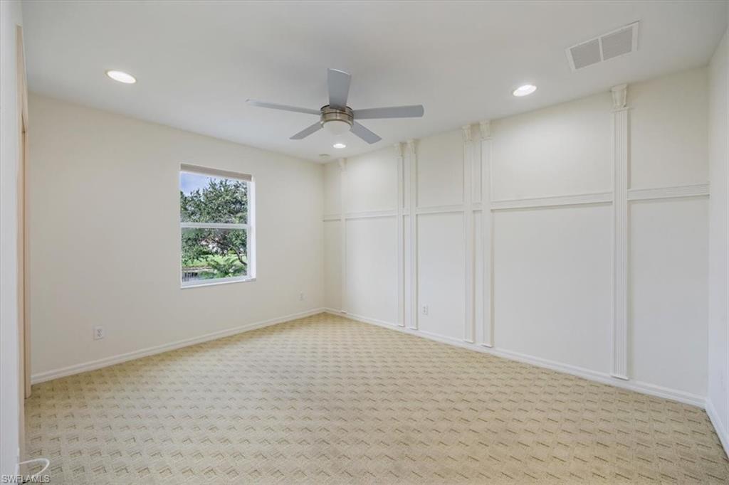 This home offers the ideal blend of comfort, convenience, and resort-style living in Naples. Built in 2014, this 3 bedroom, 3 bath with a den offers a desirable split floorplan, 2 car garage, and a pond view from the screened lanai. Located in the sought-after gated community, Reflection Lakes of Naples, which offers low HOA fees, no CDD and flood insurance is not required. The open design features tile flooring throughout and numerous updates, including a kitchen backsplash, crown molding, fresh paint, garage fan with temperature control, new HVAC (2023), new microwave (2024), new dishwasher (2025). Additional blown in insulation in all attic spaces and pest control maintenance in place. The master suite includes a luxurious bath with a soaking tub, separate shower, and double sink vanity. One guest bedroom features its own ensuite, while the den comes with a built in desk area, and double twin Murphy bed system-perfect for extra guests. Additional highlights include, storm protection including hurricane bracing on garage door, and loft storage in garage in addition to attic storage. Great rental potential with 30 day minimum 3 times a year. Community amenities include a resort style pool, kiddie pool, clubhouse, fitness center, library, bocce ball court, and a vibrant social calendar. Pet friendly too! Perfectly located near Marco Island and 5th Avenue in Naples, with dining, grocery stores and shopping close by. Move in ready.