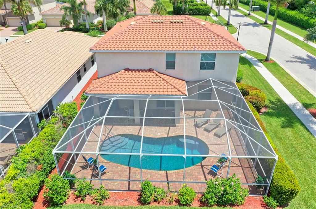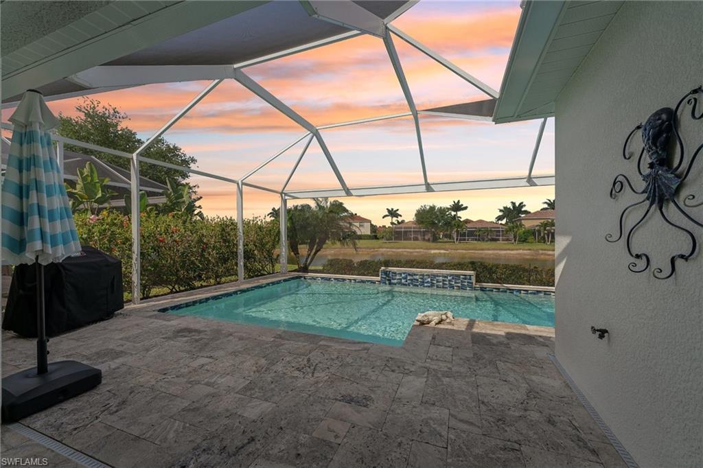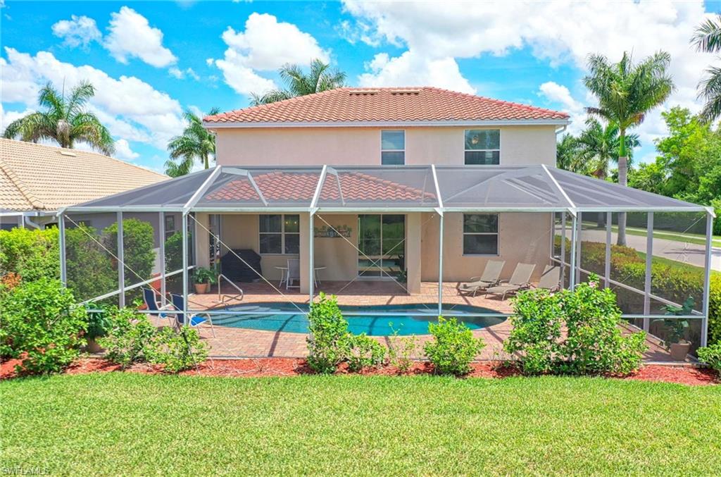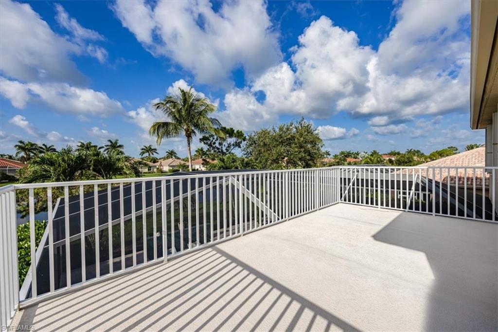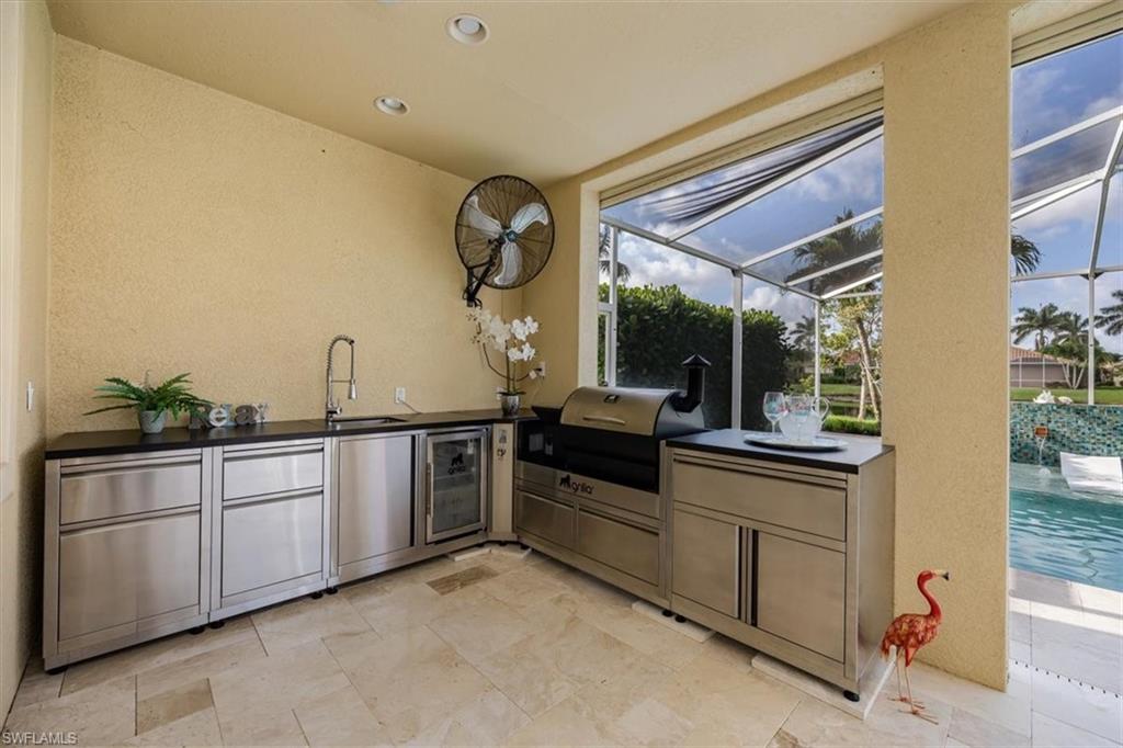 Lakefront Pool Home with Southern Exposure in Reflection Lakes of Naples | 4BR + Flex | 3BA - Experience the ultimate Florida lifestyle in this lakefront pool home with desirable southern exposure, located in the gated, resort-style community of Reflection Lakes of Naples. The extended screened lanai offers panoramic lake views and features a custom outdoor kitchen with built-in grill, sink, refrigerator, and 2 fans—perfect for entertaining. The modern pool design includes a sun shelf, water feature, and leathered marble tile decking that stays cool underfoot, surrounded by tropical landscaping for privacy and serenity. This spacious and functional two-story home features 4 bedrooms, 3 full baths, formal and casual dining areas, a large family room, and a versatile flex space ideal for a home office or den. The primary suite is a private retreat with a sitting area, lake-view balcony, and an ensuite bath that includes an updated walk-in jetted tub for spa-like relaxation. Interior features include tray ceilings, applied moldings, newer appliances, new ceiling fans, modern light fixtures, and fresh interior paint. Full hurricane protection with electric roll-down shutters or accordian shutters on every window offers year-round peace of mind. Zoned for top-rated Collier County schools, this home is perfect for families, seasonal owners, or anyone seeking a low-maintenance luxury lifestyle. Reflection Lakes offers resort-style amenities including a heated pool, kiddie pool, fitness center, clubhouse, billiards room, and more—all with low HOA fees and no CDD. Located just 9 miles from Downtown Naples, and close to Naples and Marco Island beaches, shopping, dining, golf, and boating, this home offers unbeatable location, lifestyle, and value South Naples. **some photos are virtually staged**