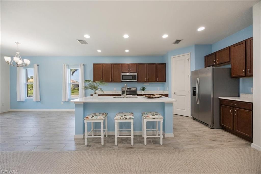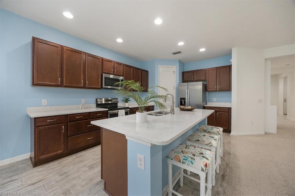 Beautifully Maintained 4BR +flex/3BA Single-Story Home in Reflection Lakes of Naples – Gated Community, Top-Rated School District Welcome to this stunning single-family home offering nearly 2,300 sq ft of spacious living in the desirable gated community of Reflection Lakes of Naples. Built in 2017 by Neal Communities, this meticulously maintained residence has been recently painted inside and showcases an open-concept floor plan designed for modern Florida living. The gourmet kitchen is a chef’s dream, featuring quartz countertops, stainless steel appliances, a large center island perfect for entertaining, and a walk-in pantry for ample storage. The bright and airy great room boasts an additional flex space with built-in shelving and a custom desk nook—ideal for a home office, remote work, or homework station. The primary suite is a relaxing retreat with 2 walk-in closets, one customized and a spacious en-suite bathroom complete with dual vanities and a walk-in shower. Three additional guest bedrooms are generously sized and supported by two full bathrooms, making this home ideal for families, multi-generational living, or guests. Located in an A-rated school district, this home is perfect for families looking for both quality education and a vibrant lifestyle. Reflection Lakes of Naples offers resort-style amenities including a heated community pool, fitness center, clubhouse, and year-round social events. Enjoy low HOA fees and no CDD fees, all just 9 miles from downtown Naples’ beaches, dining, and shopping, and 10 miles from Marco Island. Whether you’re seeking a primary residence, seasonal retreat, or investment property, this home checks all the boxes for luxury, convenience, and value in Southwest Florida.
