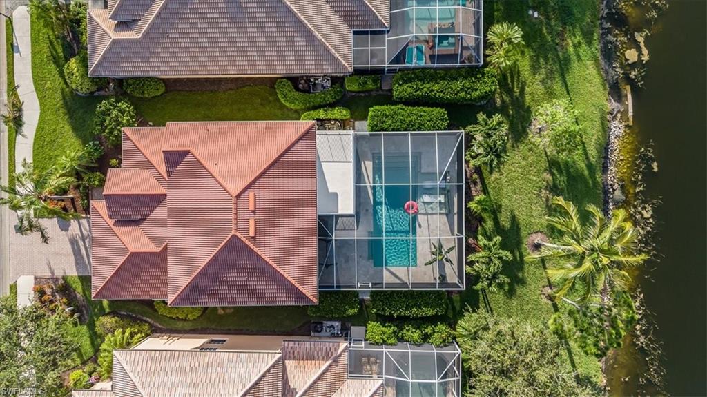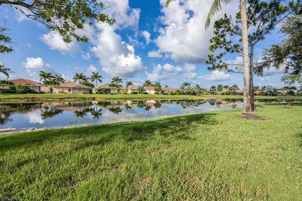 This beautifully maintained 4 Bed 3 Bath single story home with 2 car garage and pool with a water view is located in Reflection Lakes of Naples. LOW HOA FEES! Trevi floor plan with tile flooring through out and the spacious kitchen with GE appliances is open to both family and dining rooms, delivering the ideal layout for socializing and entertaining. Crown molding in the living and Primary Bed and Bath. Ceiling fans in all bedrooms and the family room. The extended lanai is perfect for enjoying the laid-back Florida lifestyle. Solar heated pool with solar pool cover included. Screened in front entry. Mounted accordion hurricane shutters on all windows and electric motorized shutters for the front and side of the lanai under-roof. Interlock kit in the electrical box with power inlet on lanai to allow access to included Duramax portable generator. Overhead storage with pull down ladder in the garage. Water Heater 2 yrs new! Remainder of Next Plumbing 10 yr Gold Protection Plan included - purchased in 2021. Google nest video doorbell security camera. Reflection Lakes of Naples offers a Clubhouse with Ball Room, Fitness Center, Card/Meeting Room, Library, Billiard Room, Resort Pool and Spa, Kid’s Splash Pool, Bocce Ball, and Pavilion.