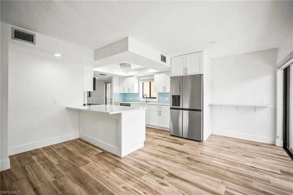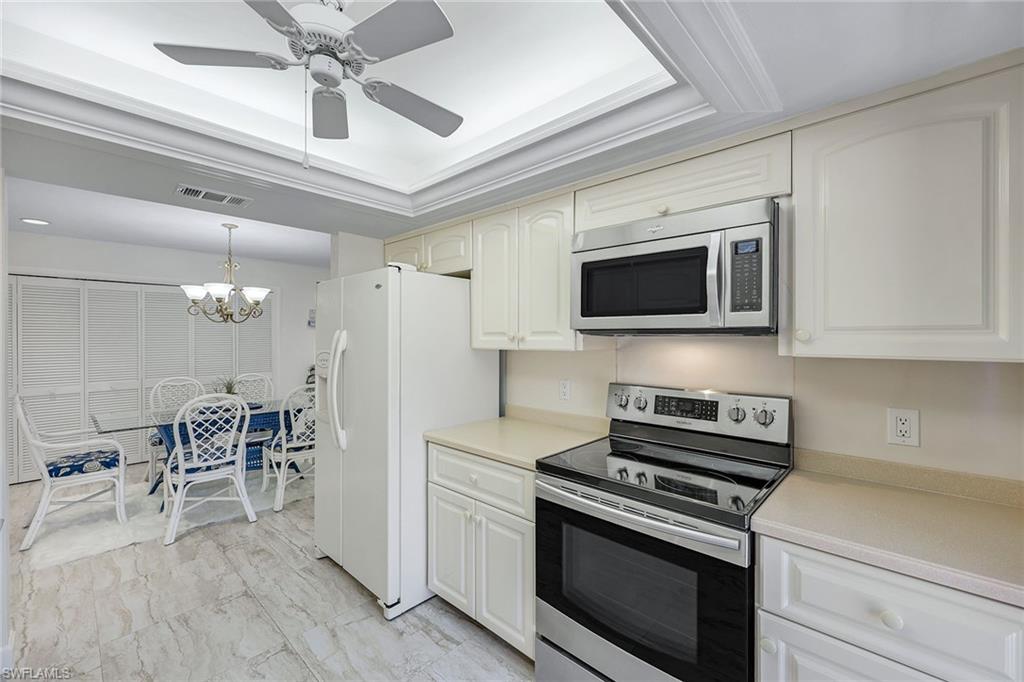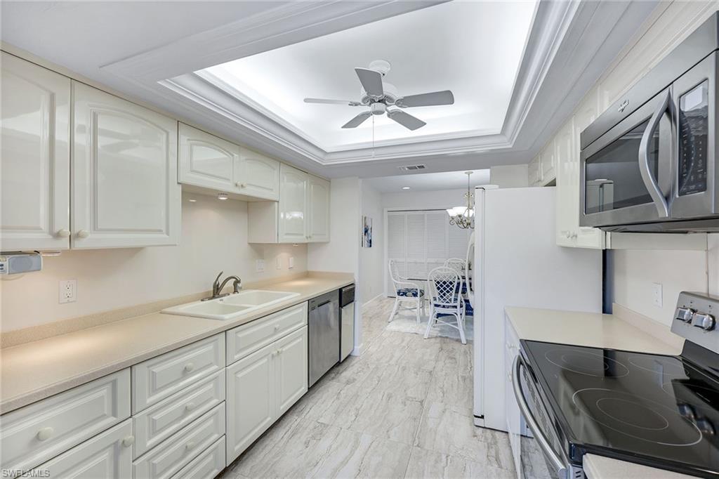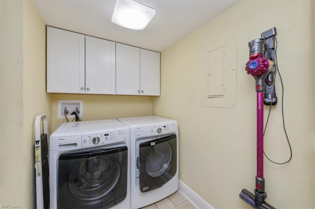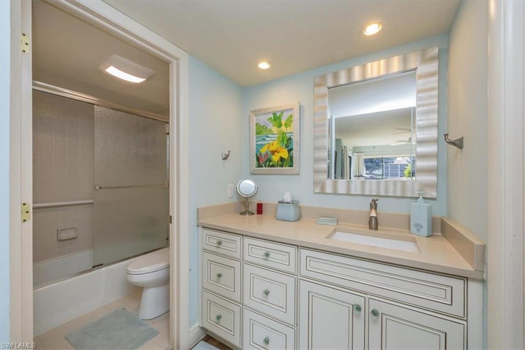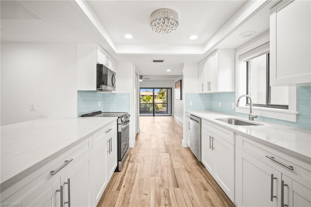Experience coastal living at its finest in this beautifully remodeled, first-floor END-UNIT condo that feels like a villa! From the moment you arrive, you’ll love the courtyard entrance that leads from your garage directly into your home. Inside, an additional spacious South-facing lanai showcases wide Lake Views, filling the entire residence with vibrant natural light. This stunning 3-bedroom, 2-bath home shines with flowing tile flooring throughout the main living areas, kitchen, and baths, complemented by stylish wood-vinyl flooring in two of the bedrooms. The chef-inspired kitchen is a true showpiece, featuring sleek quartz countertops, a custom tiled backsplash, top-of-the-line Bosch stainless-steel appliances, and rich custom wood cabinetry with soft-close features and convenient pull-out drawers with Large Farm house s/s sink. For peace of mind, the home is equipped with newer electric hurricane shutters on the southern lanai, an electric shutter on the guest bedroom slider, and a manual shutter on the small bedroom window—plus elegant Hunter Douglas blinds. Unwind on your lake side lanai with your favorite drink and nature as your backdrop—otters, graceful birds, and even majestic eagles are known to visit the surrounding trees. Located within a prestigious guard-gated community with a residents-only back entrance off Vanderbilt and 24-hour patrol, The Retreat offers tranquility and natural beauty at every turn. Enjoy scenic walking paths, charming wooden bridges, and approximately five miles of biking and jogging trails winding through a lush wildlife estuary. All this, just minutes from the white-sandy beaches off Vanderbilt, Bonita, and Wiggins State Park, plus an array of shops, restaurants. The heated saltwater community pool offers the perfect place to relax and soak in the sunshine. Retreat ONE is the only association that includes “Hotwire” Internet service included in your condo fee. This is more than a home—it’s a lifestyle. Bring the family and start creating unforgettable memories today!