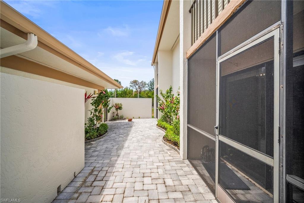 Luxury and comfort collide at this VERY WELL MAINTAINED 2+DEN, 2 BATH NAPLES CONDO. This 1,585 SQFT END UNIT condo is settled in THE RETREAT AT BENTLEY VILLAGE GATED & GUARDED community. The unit also includes a private 1 CAR DETACHED GARAGE for parking and/or storage. One of the highlights is that EVERY ROOM has its own PRIVATE LANAI/BALCONY, which also provides tons of NATURAL LIGHT. My personal favorite is the large open living room with Southern Exposure and sliders across the length of the whole room. The unit is also equipped with AUTOMATIC HURRICANE SHUTTERS. The building got a NEW ROOF IN 2018 for added peace of mind. The Retreat offers stunning waterfront views from the private lanai, a community pool + hot tub, tennis courts, lakes, and excellent walking/biking paths. Within 1 to 10 miles you can bike or drive to the best local beaches and parks, Mercato shopping and dining center, and the popular Downtown Bonita Springs! Quiet, peace, safety and luxury await!