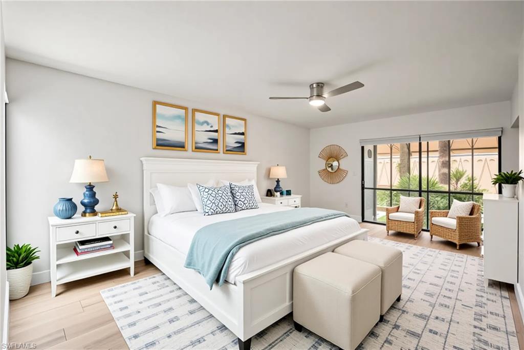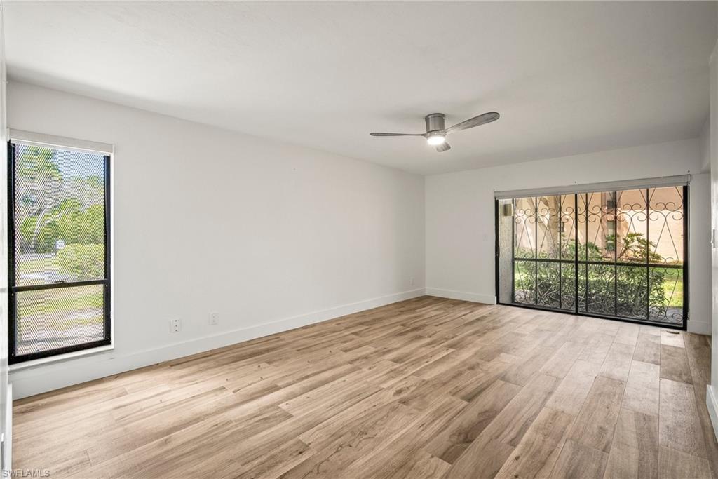 Coastal Comfort & Modern Style – Updated First Floor End Unit with Lake View in North Naples! Welcome to 517 Lake Louise Ct #101, a beautifully updated 2-bedroom, 2-bath first-floor end unit in the Retreat, a guard-gated community ideally located west of US-41 and just 3.5 miles from the pristine Gulf beaches. This spacious unit lives like a single-family home with its private courtyard entrance and attached 1-car garage—a unique and rare feature that adds privacy, security, and convenience. The private courtyard is a standout bonus, offering the perfect setting for outdoor grilling, lounging, morning coffee, or evening cocktails under the stars. It’s your own secluded outdoor oasis! Inside, the home has been tastefully updated with new tile flooring throughout, quartz countertops, new stainless steel appliances, and completely renovated bathrooms. The living and dining areas are bright and inviting, with plenty of natural light flowing in from the huge sunroom, which is half screened-in and half enclosed with glass—ideal for relaxing while taking in the peaceful lake views and Florida breezes. The oversized master bedroom includes generous closet space and a beautifully updated en-suite bath. The thoughtful split-bedroom layout ensures privacy for guests or flexibility for a home office. Residents enjoy a variety of community amenities, including a resort-style pool, tennis courts, and walking and biking paths surrounded by lush tropical landscaping and tranquil lakes. Perfectly located in North Naples, just minutes from upscale shopping, dining, and entertainment hotspots like Mercato, Waterside Shops, and Vanderbilt Beach. Whether you're looking for a full-time residence or seasonal retreat, this home offers exceptional value, style, and location. Priced to sell – don’t miss this slice of Naples paradise! Disclaimer: Some images has been virtually staged for illustrative purposes only.