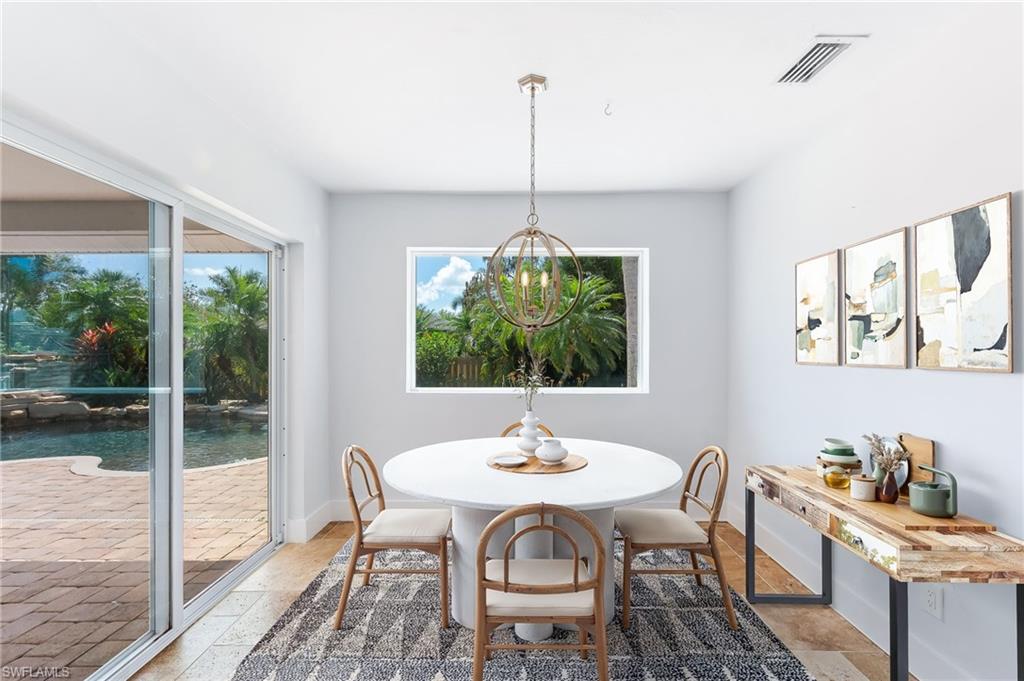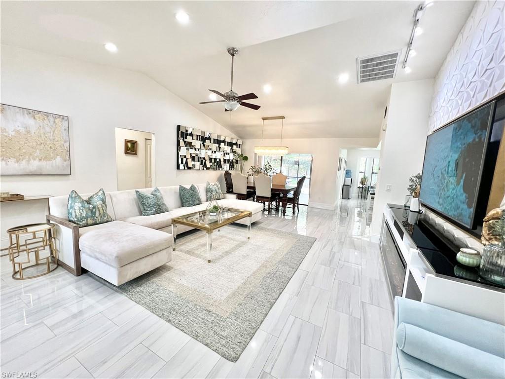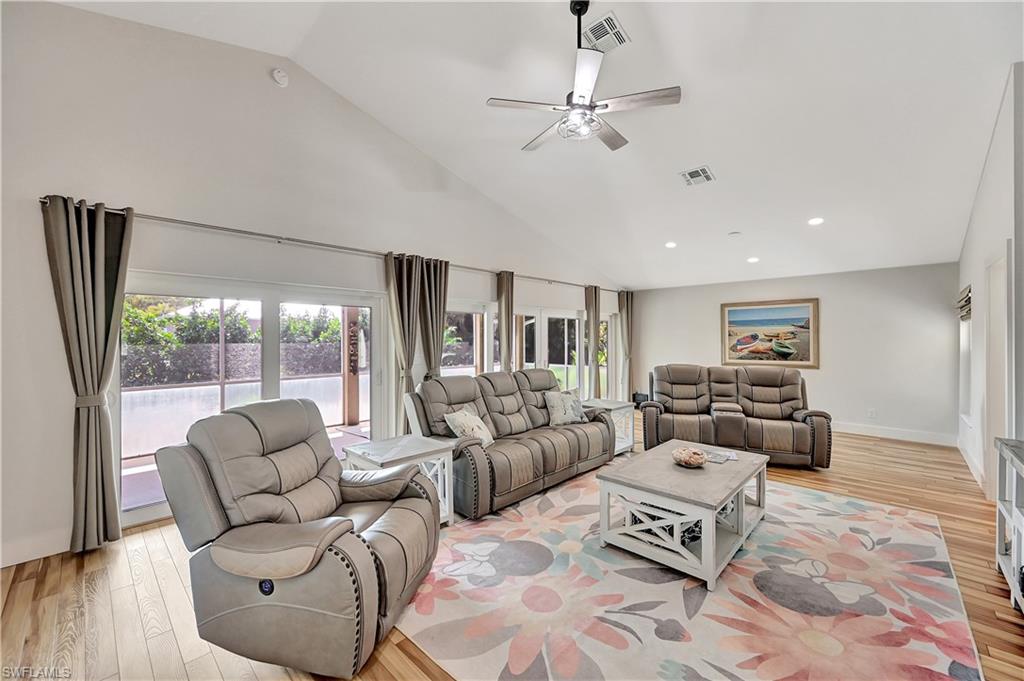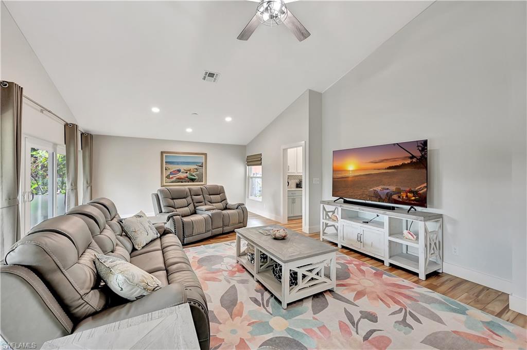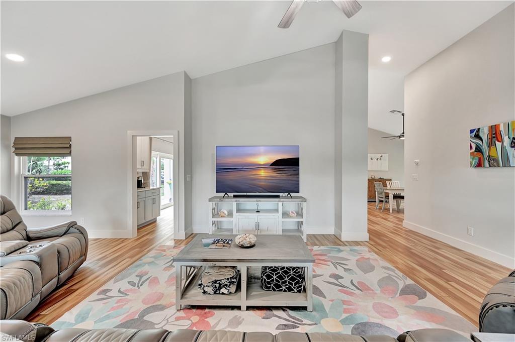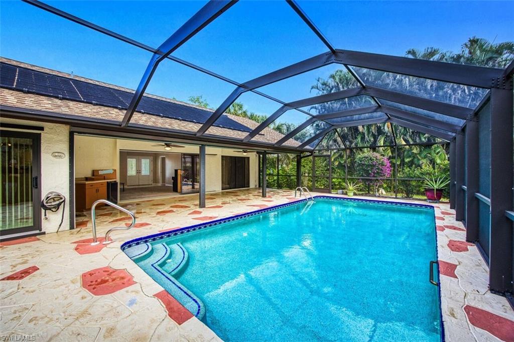 Light and bright 3 bedroom, 2 bathroom home with pool in the sought-after community of River Reach! This stunning, fully renovated 3-bedroom, 2-bathroom single-family home with a 2-car garage offers the perfect blend of modern elegance and Old Florida lifestyle. Situated on a spacious 0.22-acre lot, this concrete block-built home was masterfully redesigned in 2023 with top-quality craftsmanship and attention to detail. Step inside and be greeted by soaring vaulted ceilings that enhance the open floor plan, filling the home with natural light. The thoughtfully designed split layout offers privacy and functionality, making it perfect for families or guests. The main living area flows seamlessly to the covered lanai and screened-in pool area through sliding glass doors, creating an ideal indoor-outdoor living space. The large master suite is a retreat of its own, featuring a huge walk-in closet and a redesigned ensuite bathroom with a frameless glass shower and a marble-top custom vanity. Two additional guest bedrooms share use of an updated bathroom with a combination shower & tub, providing ample space for relaxation or home guest's use. The screened-in pool and spa, resurfaced in 2023, are complemented by a new electric heater, ensuring year-round enjoyment. The expansive deck and covered lanai provide the perfect setting for entertaining, lounging, or outdoor dining. The fully fenced backyard offers privacy and versatility, with a generous side yard for storing a trailered boat or RV—an uncommon and valuable feature in Naples. This home is not just a personal oasis but also a fantastic investment opportunity. Rarely found in Naples, short-term rentals are allowed in River Reach. The property is already optimized as a high-performing rental, boasting nearly 40 five-star reviews and a strong history of top-dollar bookings. Whether you’re a part-time resident or an investor, this home offers incredible income potential while maintaining your own slice of paradise. River Reach is a low-fee community with an annual HOA of only $520. Residents also have the optional privilege of joining nearby Coconut River Estates, granting access to a private boat ramp, community pool, and playground. The location is unbeatable—just minutes from downtown Naples’ historic dining and shopping, pristine Gulf beaches, and navigable boat access points. For those seeking a turnkey option, this home is available with negotiable designer furnishings from Robb & Stucky, Pottery Barn, Ballard Designs, and more, adding a layer of convenience and style to your move-in experience. This beautifully renovated home offers an unparalleled combination of modern luxury, investment potential, and prime Naples location. Whether you’re looking for a full-time residence, a vacation home, or a high-performing rental property, this gem in River Reach checks all the boxes. Schedule your private showing today!