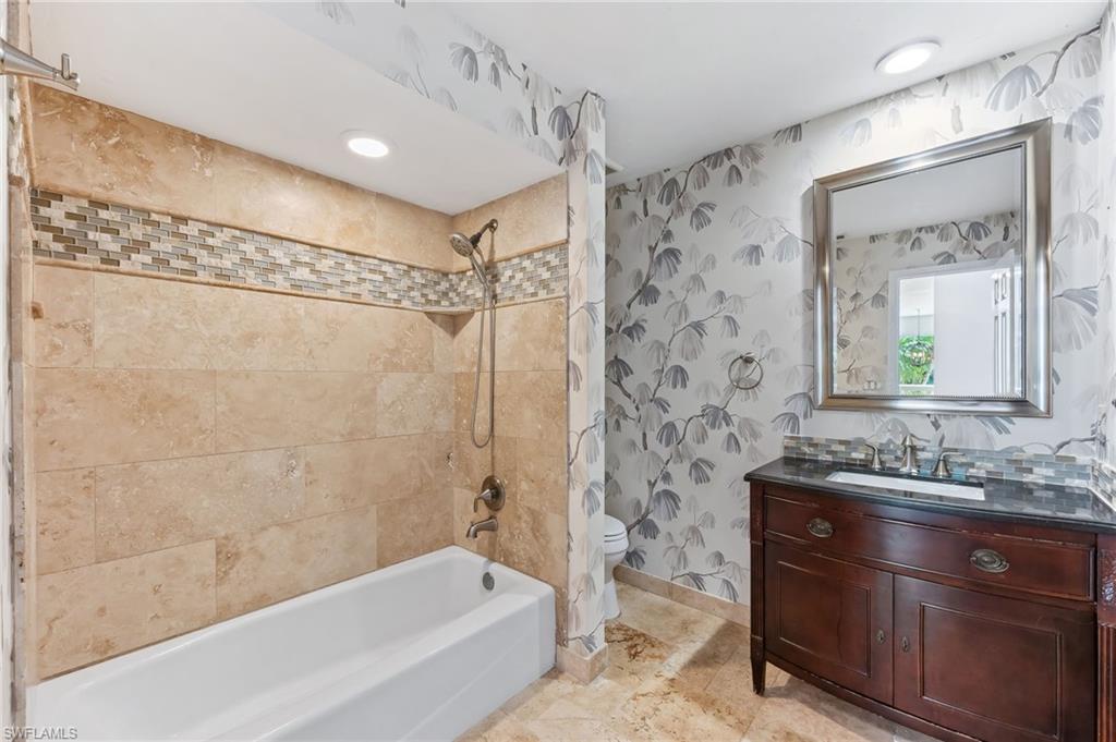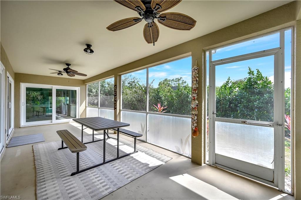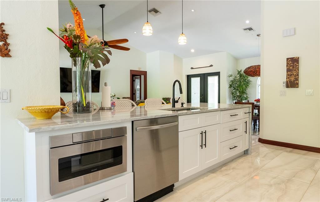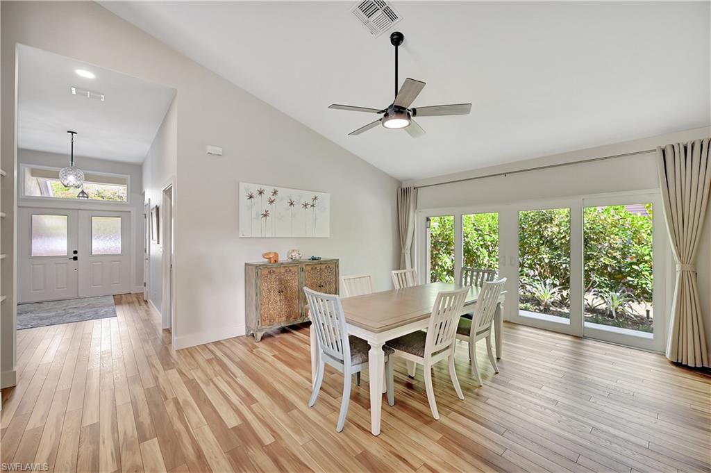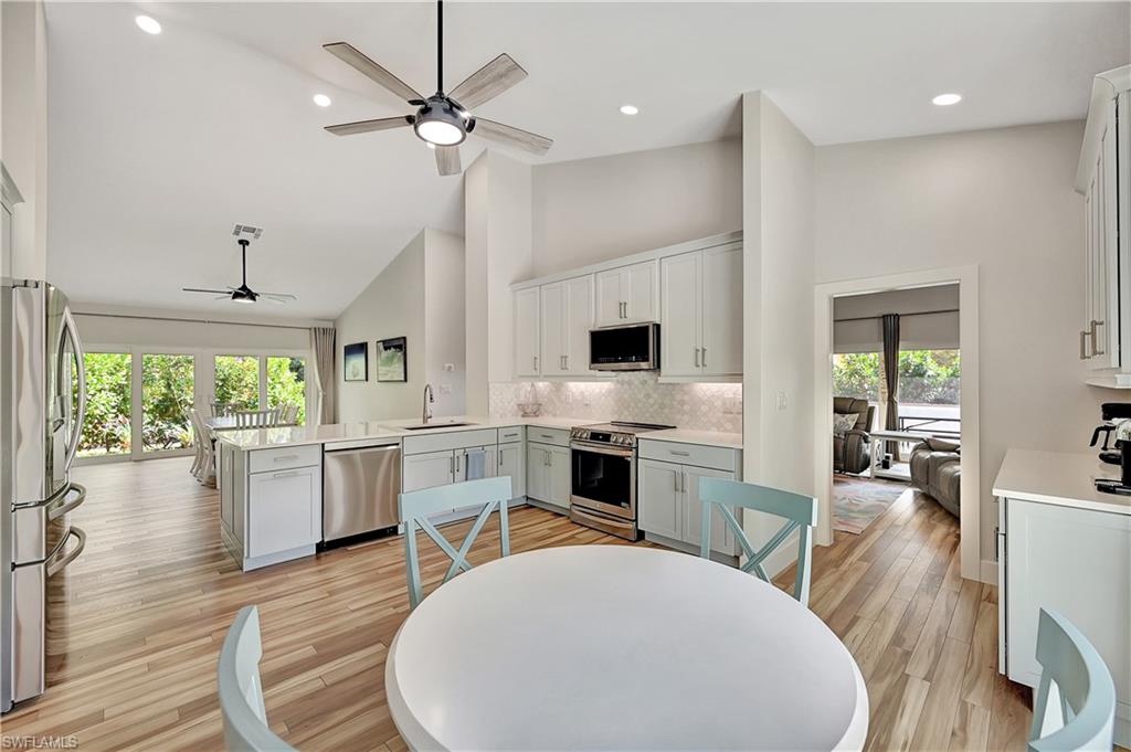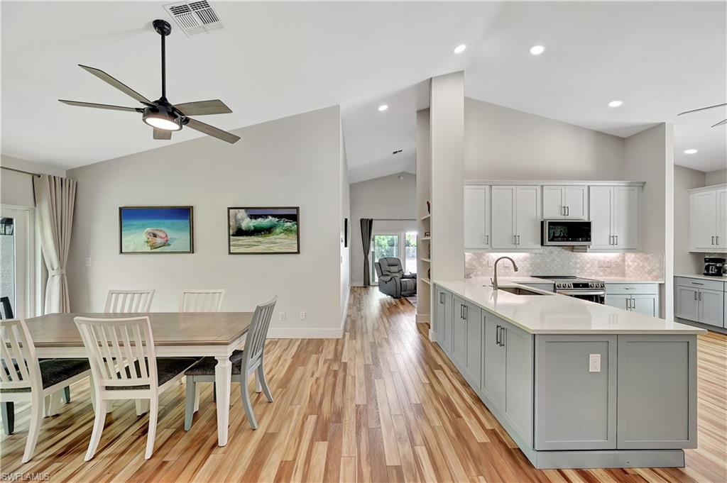 Light and bright 3 bedroom, 2 bathroom home with pool in the sought-after community of River Reach! This stunning, fully renovated 3-bedroom, 2-bathroom single-family home with a 2-car garage offers the perfect blend of modern elegance and Old Florida lifestyle. Situated on a spacious 0.22-acre lot, this concrete block-built home was masterfully redesigned in 2023 with top-quality craftsmanship and attention to detail. Step inside and be greeted by soaring vaulted ceilings that enhance the open floor plan, filling the home with natural light. The thoughtfully designed split layout offers privacy and functionality, making it perfect for families or guests. The main living area flows seamlessly to the covered lanai and screened-in pool area through sliding glass doors, creating an ideal indoor-outdoor living space. The large master suite is a retreat of its own, featuring a huge walk-in closet and a redesigned ensuite bathroom with a frameless glass shower and a marble-top custom vanity. Two additional guest bedrooms share use of an updated bathroom with a combination shower & tub, providing ample space for relaxation or home guest's use. The screened-in pool and spa, resurfaced in 2023, are complemented by a new electric heater, ensuring year-round enjoyment. The expansive deck and covered lanai provide the perfect setting for entertaining, lounging, or outdoor dining. The fully fenced backyard offers privacy and versatility, with a generous side yard for storing a trailered boat or RV—an uncommon and valuable feature in Naples. This home is not just a personal oasis but also a fantastic investment opportunity. Rarely found in Naples, short-term rentals are allowed in River Reach. The property is already optimized as a high-performing rental, boasting nearly 40 five-star reviews and a strong history of top-dollar bookings. Whether you’re a part-time resident or an investor, this home offers incredible income potential while maintaining your own slice of paradise. River Reach is a low-fee community with an annual HOA of only $520. Residents also have the optional privilege of joining nearby Coconut River Estates, granting access to a private boat ramp, community pool, and playground. The location is unbeatable—just minutes from downtown Naples’ historic dining and shopping, pristine Gulf beaches, and navigable boat access points. For those seeking a turnkey option, this home is available with negotiable designer furnishings from Robb & Stucky, Pottery Barn, Ballard Designs, and more, adding a layer of convenience and style to your move-in experience. This beautifully renovated home offers an unparalleled combination of modern luxury, investment potential, and prime Naples location. Whether you’re looking for a full-time residence, a vacation home, or a high-performing rental property, this gem in River Reach checks all the boxes. Schedule your private showing today!