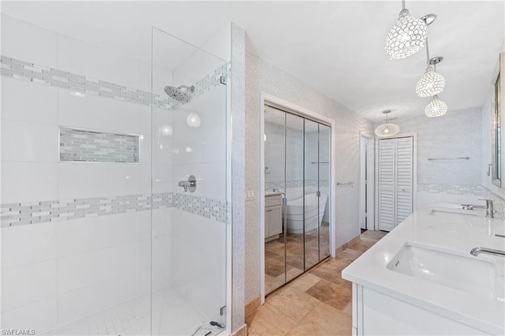 As you approach, breathe in the aroma of Chanel # 5 tree enter a simple entryway and look straight through to the custom Heated Saltwater Pool which boasts LED lighting, Robotic Cleaner and Fountain, look to the bridge and see the pond stocked with Koi Fish…Have a cocktail or just chill out at the pool enjoying the aroma of night blooming Jasmine in the evening while watching the mosaic turtles flicker in the light…Two tone kitchen with upgraded Stainless Steel KitchenAid appliances; Pizza, Convection ovens, Cafe Door Refrigerator, Dishwasher, GE profile convection microwave, GE washer and steam dryer stay with the property…Smart Genie garage door opener just in case you forget to close your door you can access it through your phone app…Master bedroom has walk-in closet, tiled shower with touches of mosaics…Guests and Family have a separate side of the home to include two bedrooms, freestanding soaking tub in second bathroom and private access to the pool area… Ample parking spaces and Paved storage area for your toys… Look no further for the perfect location, Just minutes from Downtown Naples, Gulf Beaches with plenty of Dining and Entertainment options… For the boating, enthusiast River Reach has a Ramp with storage available hop in your boat & it’s less than 10 minutes through the Gordon River to Naples Bay. Call today for private showing!